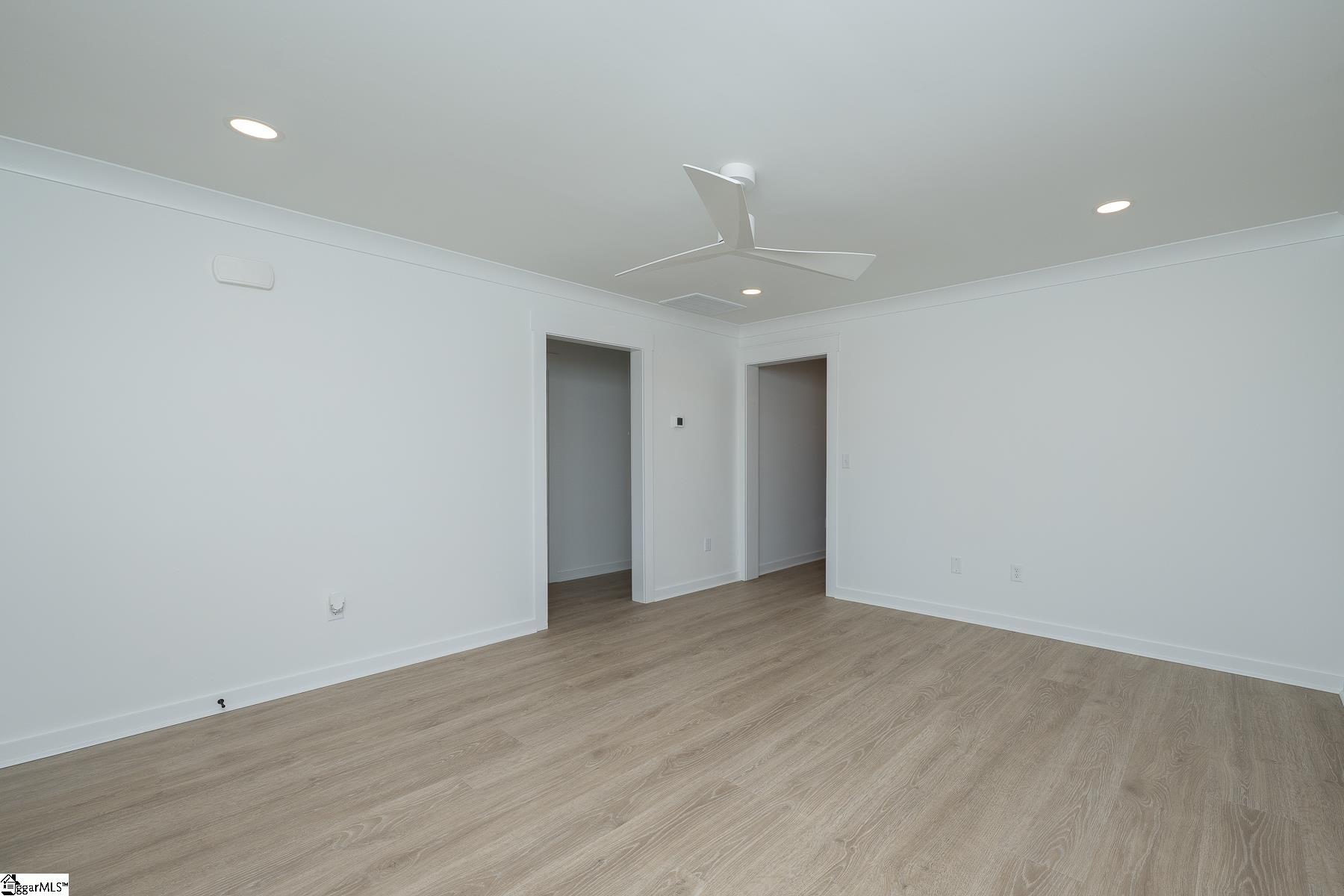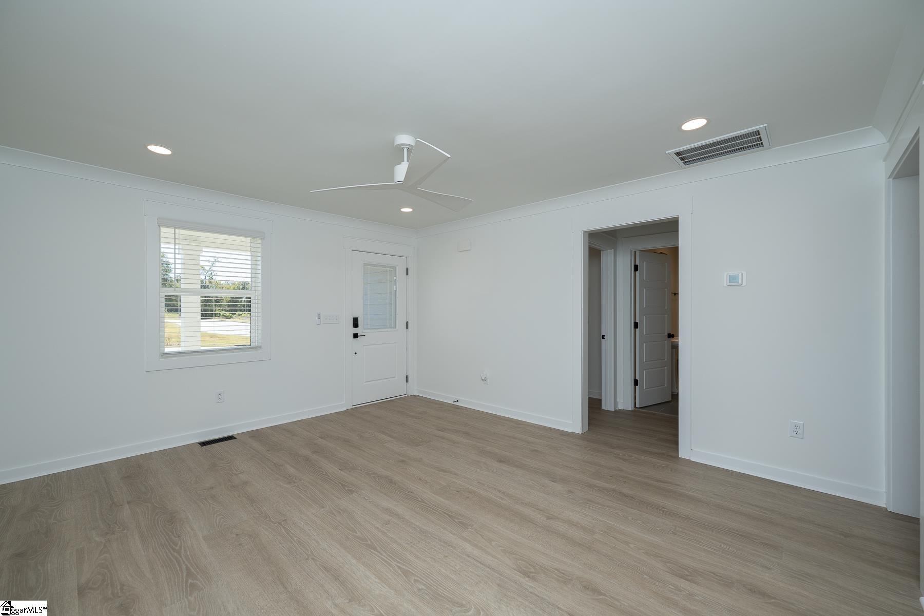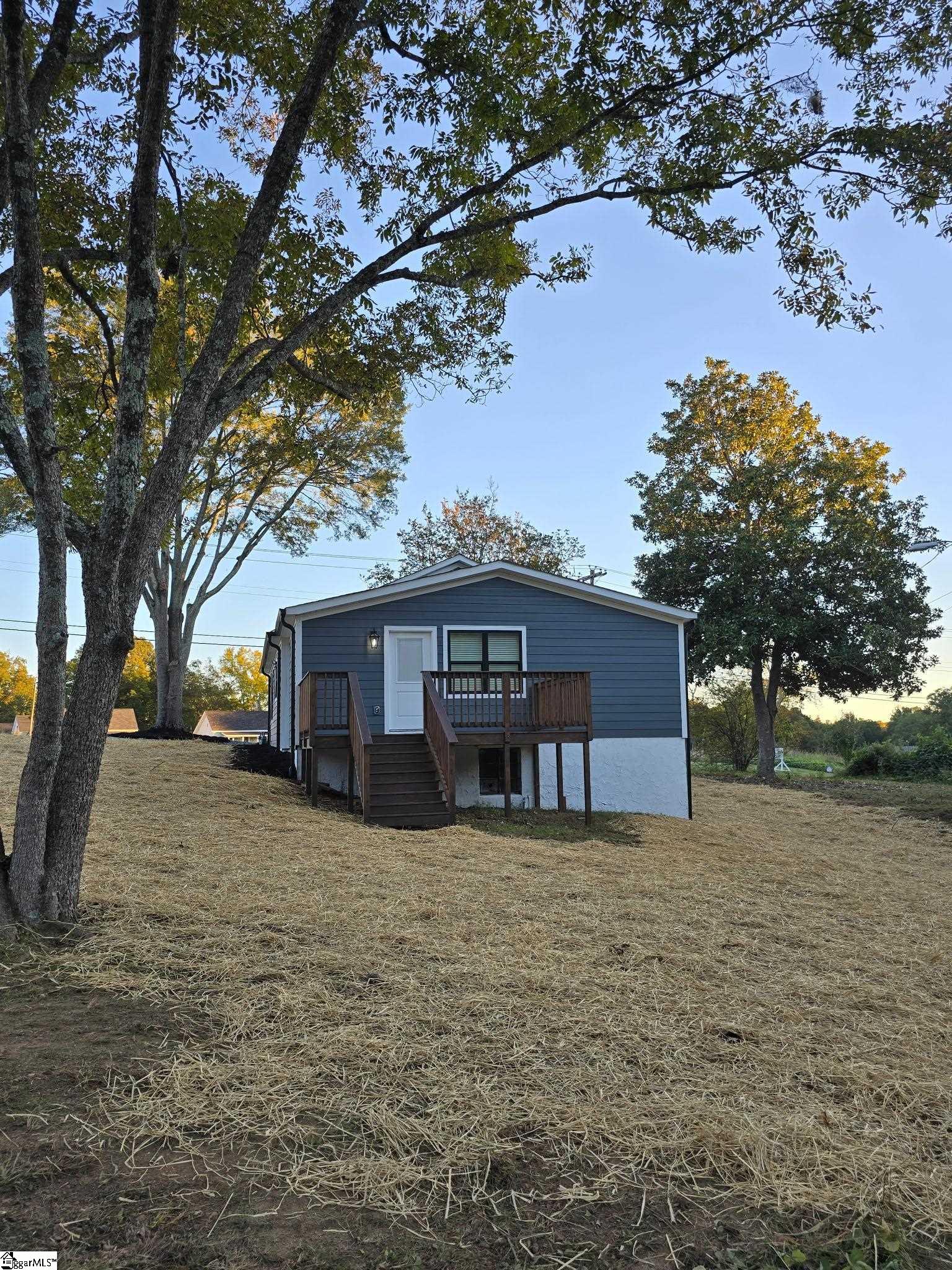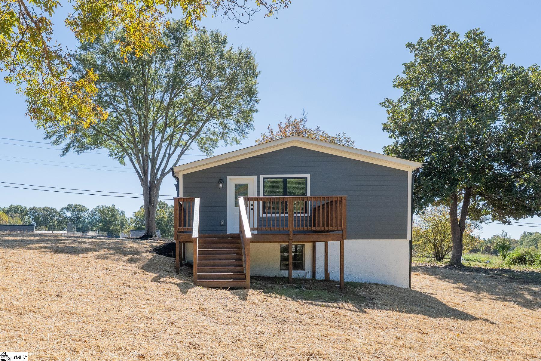 This fully updated 3-bedroom, 2-bath bungalow in Fountain Inn, SC, sits on over half an acre, just steps from downtown. Revitalized with modern upgrades, it features a new roof, HardiPlank siding, new windows, updated electrical and plumbing, a tankless water heater, and luxury vinyl plank (LVP) flooring throughout. The inviting, light-filled living room flows into a fully renovated kitchen boasting custom cabinets, a farmhouse-style sink, a center island, quartz countertops, and stainless steel appliances. The spacious primary bedroom includes a stunning ensuite with tile flooring, a walk-in tiled/glass shower, double vanities, and a dream walk-in closet with an additional vanity for storage or morning prep. The two additional bedrooms are generously sized and share a beautifully updated bathroom with tile floors, a pedestal sink, and a tile-surround bathtub/shower combo. Outside, a brand-new deck complements the expansive lot, perfect for gardening, entertaining, or relaxation. This home blends modern luxury with a prime location, offering both style and convenience.