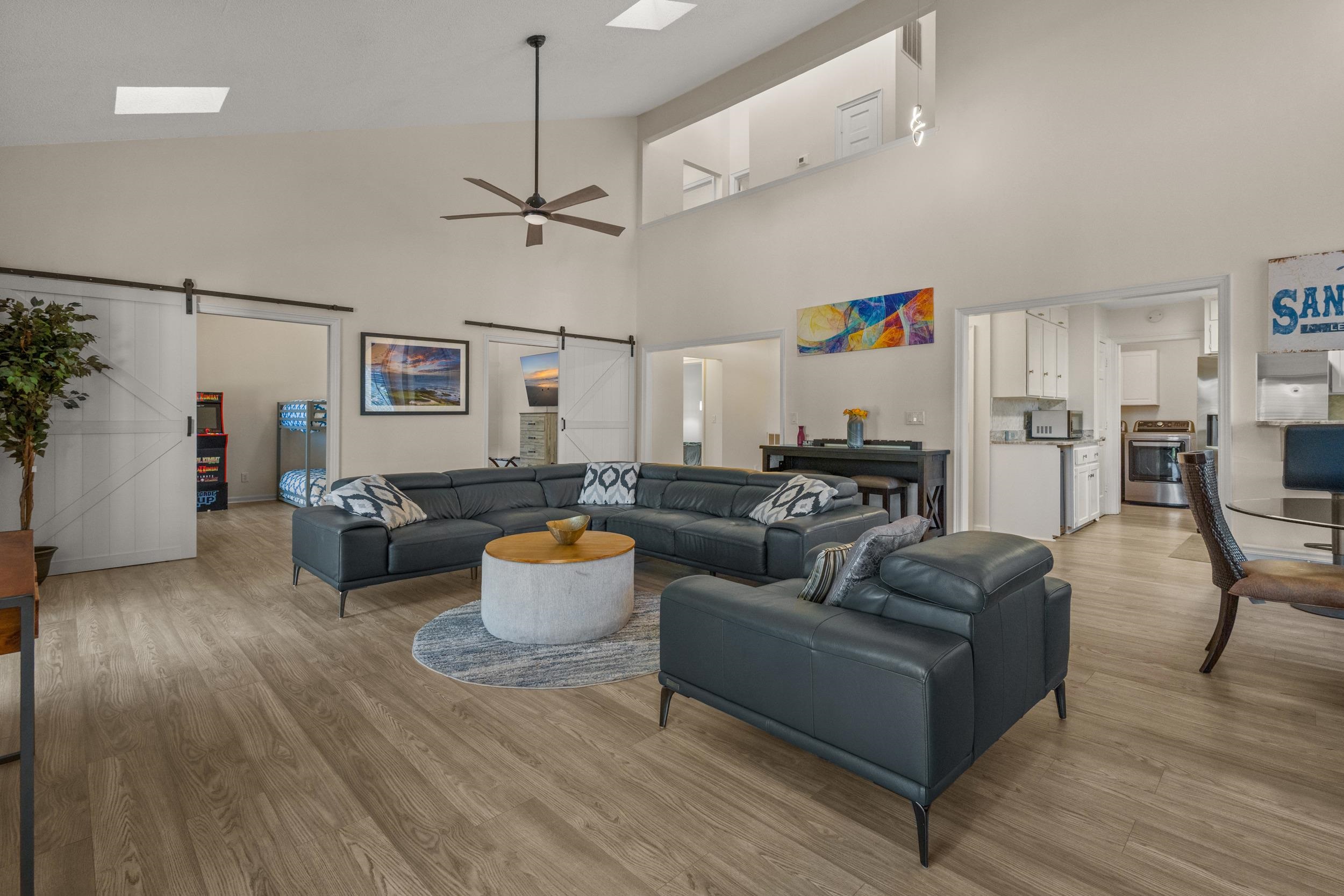 Southern charm by the coast! Welcome to Arcadian Shores, a custom community just steps to the beach where the streets are lined with trees and curb appeal. Situated on nearly a half acre lot, this well maintained home offers 4 bedrooms plus an office/flex space, 3 and a half bathrooms, vaulted ceilings, and all the natural light! The fresh modern design blends effortlessly with traditional elements like the massive stone fireplace, giving the home welcoming and cozy vibes. Love all the furnishings? This property is offered fully furnished - down to the 3 arcade games! The location within the community and large lot with completely fenced backyard provides endless options for gardening, adding a pool, or outdoor entertaining! Arcadian Shores is a unique community without rental restrictions - making this one of the few opportunities for a highly lucrative vacation home or short term rental. Lafayette Drive is located just minutes from shopping, dining, medical facilities, schools, and a short walk to the community pier and of course the sparkling Atlantic Ocean.