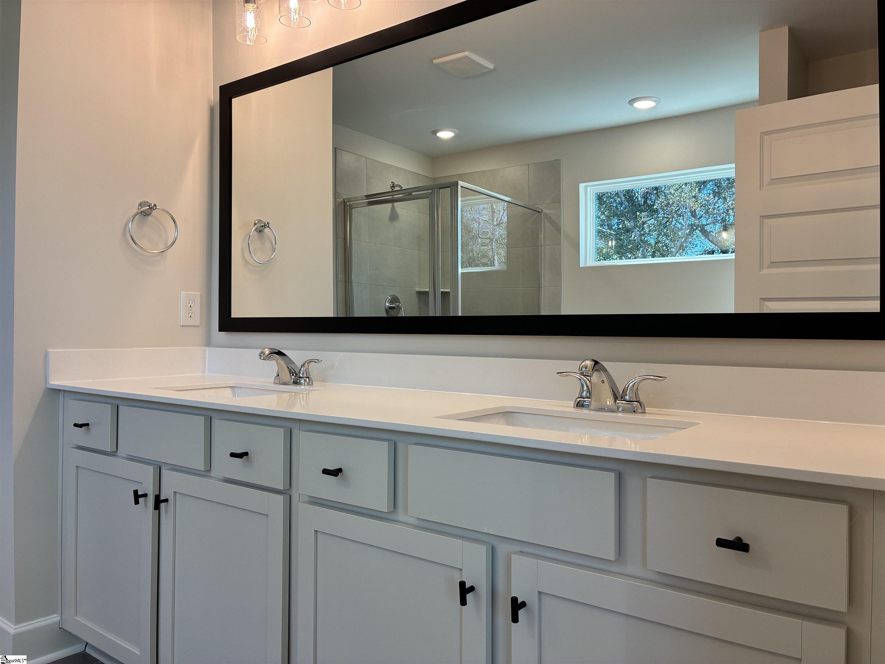 Welcome to the McKee by Cothran Homes. Our Chicago inspired custom curated design incorporates all the right elements of Urban Chic in this lovely home. You will enjoy many mornings cooking breakfast in this bright kitchen with shaker style Fulton Shell off-white cabinets, Carrara Marmi Quartz countertops, matt black hardware, large working Atlanta Carbon-stained kitchen island with single bowl undermount stainless steel sink. GE Stainless Steel gas range, over the range vented microwave and dishwasher included for all your culinary needs. Open floor plan dining room flows right into the living room complete with gas fireplace, LED disc lights and Minka ceiling fan. This 5 bedroom, 2 ½ bath with first floor Study/Bedroom has stunning 5” wide Starting Point Weathered Brown luxury vinyl plank floors throughout main living areas and Midway Plaza Pebble Creek Shaw carpet in remaining rooms with 8lb pad. Retreat into your owner’s suite with tray ceiling, LED disk lights, and Minka ceiling fan. Enjoy the lovely en- suite with fully tiled Ardor Radiance walk- in shower, separate soaking tub and Fulton Shell off-white double sink vanity and large walk-in closet. Spacious second floor Loft can be set up as a Listening Music Room / Homework station to keep the family comfortably entertained and organized. Laundry room includes hook up for washer /dryer and shelving for all your laundry accessories. Deep 3 car garage with lots of storage space and wide driveway for family parking. Finally, a rear covered porch right off your living room. Perfect to set up that outdoor entertaining space you have always wanted.