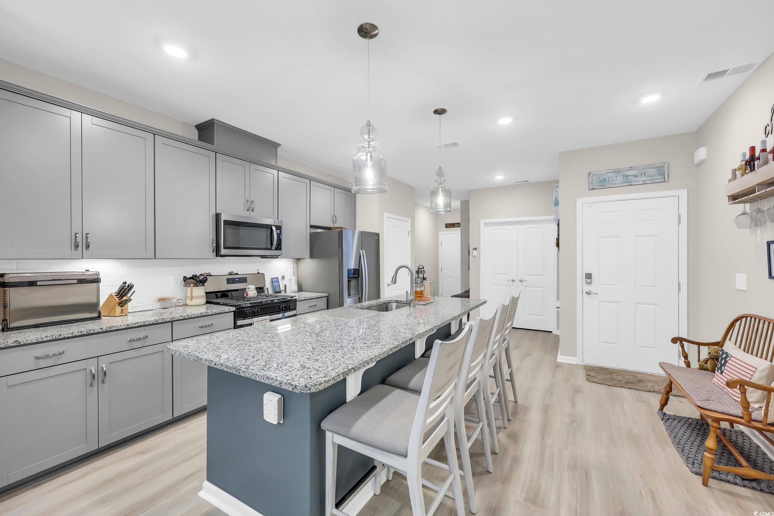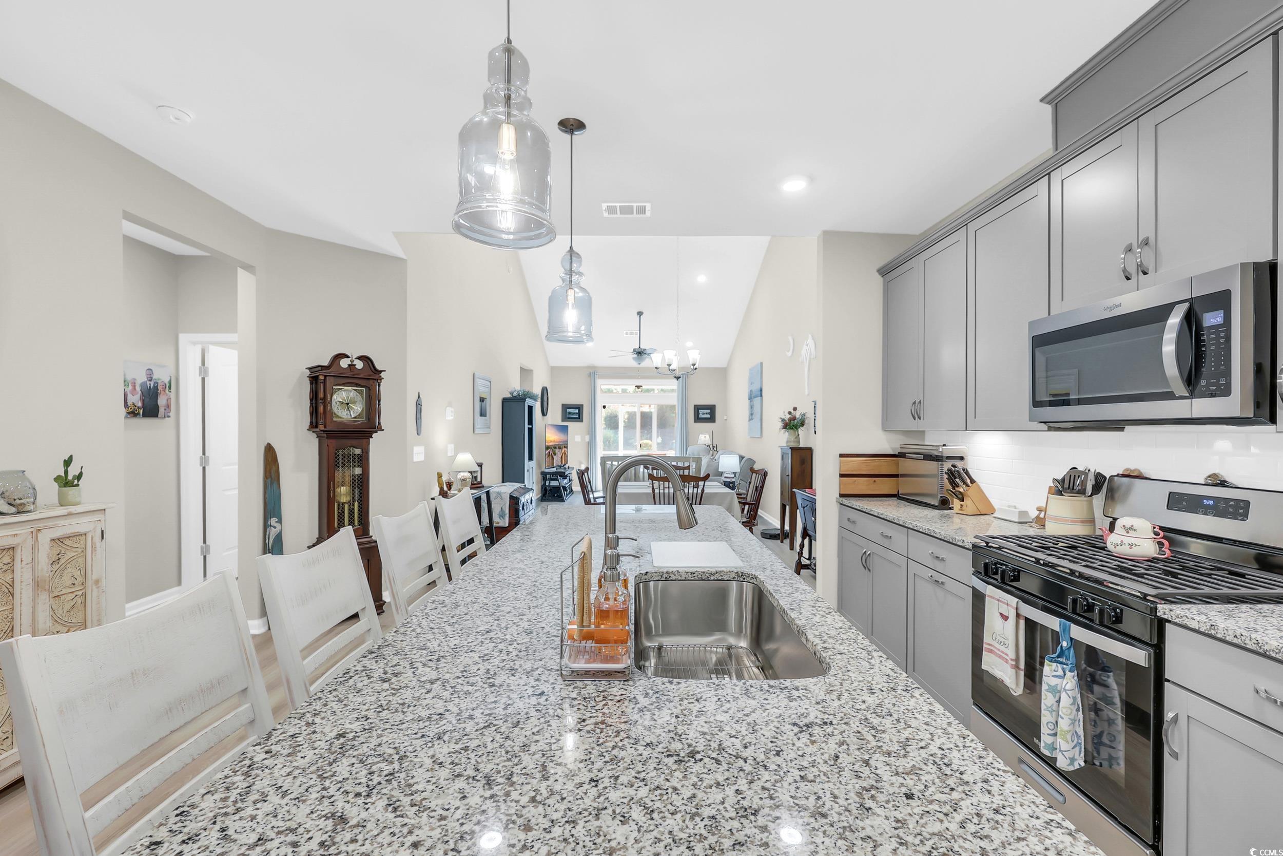 Act Now—This Wisteria Gem is a Rare Find! Step into unparalleled elegance at Bella Vita’s Garden Homes, where this 3-bedroom, 2-bath single-level Wisteria model redefines low-maintenance luxury in Myrtle Beach’s vibrant coastal heart. This move-in-ready masterpiece boasts cutting-edge upgrades that make it a standout—don’t miss your chance to own this modern marvel before it’s gone! The charming exterior, with its timeless coastal curb appeal, beckons you into sunlit spaces where gleaming Low-E windows frame lush green vistas, bathing the home in warm, golden light. The open-concept layout flows effortlessly, perfect for intimate evenings with loved ones or hosting lively gatherings with friends.The state-of-the-art kitchen dazzles with clean, efficient natural gas powering the high-performance stove, delivering precision cooking and cost savings. Sleek stainless steel appliances gleam under energy-efficient LED lighting, while abundant cabinetry and an oversized island make meal prep a joy. Picture yourself savoring morning coffee in this modern haven of culinary elegance. The serene master suite is your private retreat, boasting a spacious layout and a spa-inspired bath for ultimate relaxation. Two versatile bedrooms offer endless possibilities—guest suites, a home office, or a creative space. The oversized 15’x20’ one-car garage provides ample storage for all your needs.This home shines with Energy Star Certification and premium upgrades: a natural gas-powered Rinnai tankless water heater delivers endless hot water on demand, while an encapsulated attic space maximizes energy efficiency, ensuring year-round comfort and slashed utility bills. Low-E windows, LED lighting, and a whole-house surge protector safeguard your electronics and appliances, offering peace of mind and savings. Low HOA dues cover exterior insurance, basic cable, water/sewer, trash, exterior maintenance, lawn care, irrigation, and access to Bella Vita’s resort-style amenities: a sparkling community pool shimmering under the Carolina sun, a cutting-edge fitness center, and a lively clubhouse buzzing with social events.Nestled in the coveted Bella Vita community, this Wisteria model blends low-maintenance luxury with coastal charm, perfect for retirees, professionals, or anyone craving a carefree, modern lifestyle. With its natural gas upgrades, superior energy efficiency, and whole-house surge protection, this home is a standout in Myrtle Beach’s fast-growing market and is priced to sell quickly. As a seasoned realtor with deep Myrtle Beach roots, I know this is a rare find—schedule your private tour today and claim your coastal masterpiece before it’s gone!