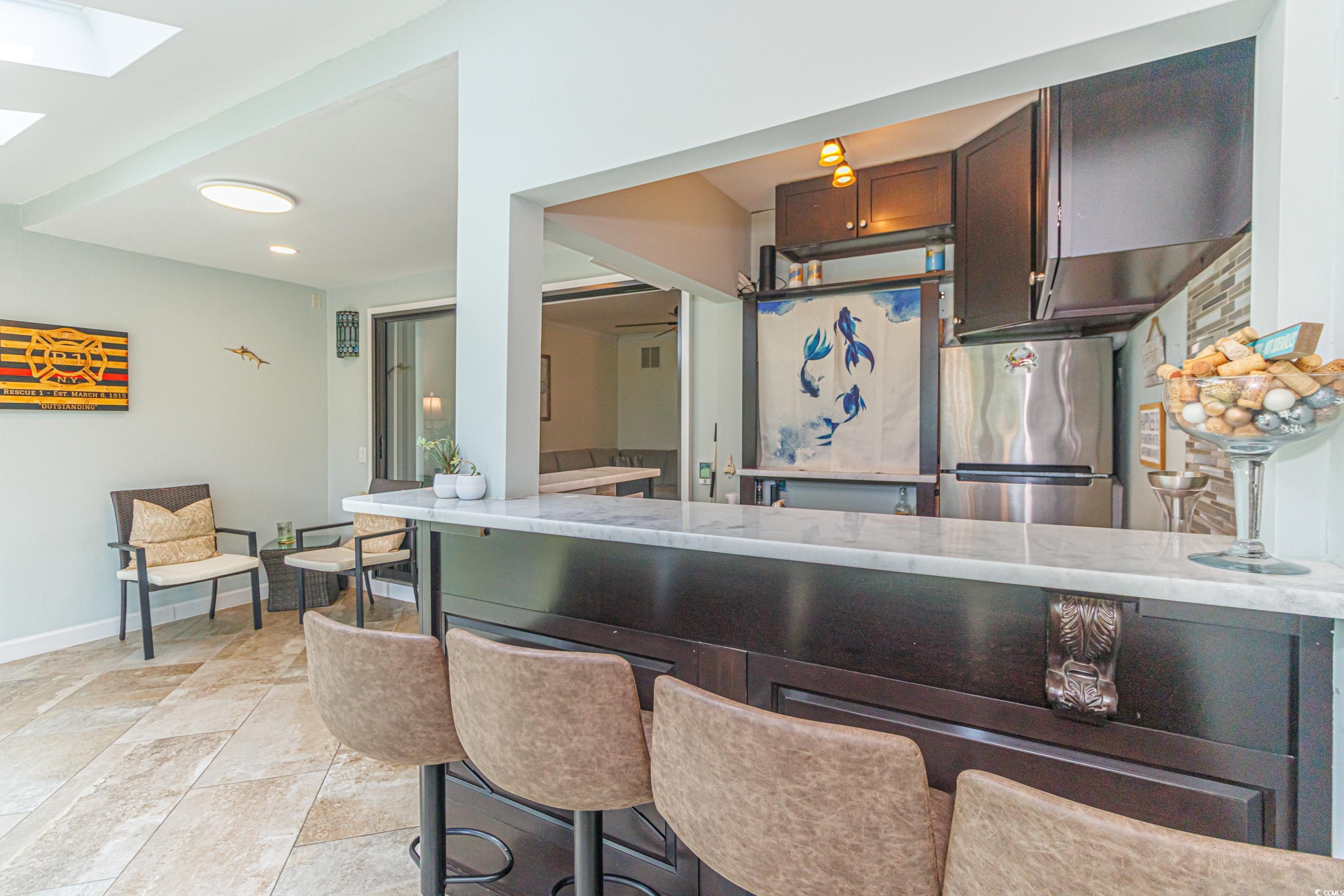 Absolutely stunning 3BR/3BA townhome with premium upgrades, incredible views, and a prime location! This beautifully renovated residence offers high-end finishes from top to bottom—including a thoughtfully designed addition that showcases breathtaking views of the Myrtlewood Golf Course, the Intracoastal Waterway, and unforgettable sunsets. Inside, you'll find custom touches throughout, including a heated tile floor, a sleek quartz countertop bar, and elegant finishes that elevate every space. Step through the enclosed front courtyard and through a striking mahogany front door—both part of the custom entryway addition—into a warm, stylish, and truly unique home. Unlike many condos, this is a true condo where you own the land. Located in the desirable Fairway Lakes community, just off 38th Ave N, this home offers a quiet residential feel while being minutes from the beach, Broadway at the Beach, top medical centers, shopping, dining, and everything Myrtle Beach has to offer. Situated in the most desirable location of the neighborhood backing directly onto the golf course and panoramic views stretching across the course to the waterway. Whether you're seeking a luxurious primary residence or a serene second home, this townhome is a rare find. Schedule your showing today—this one will impress!