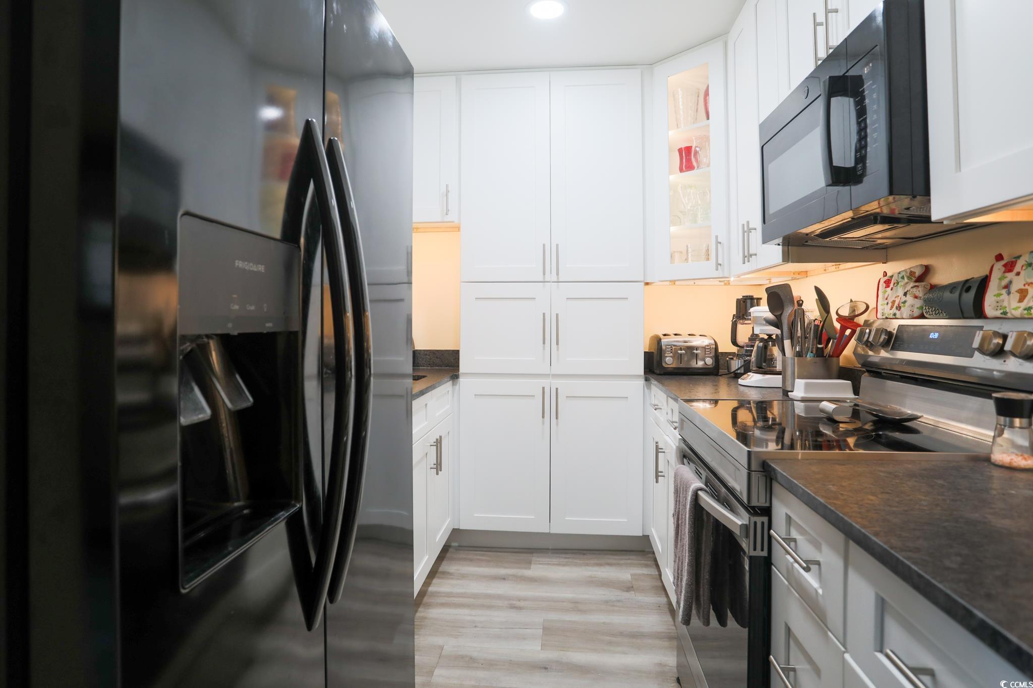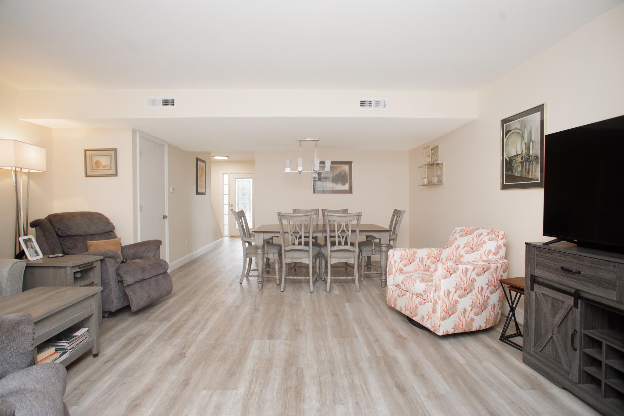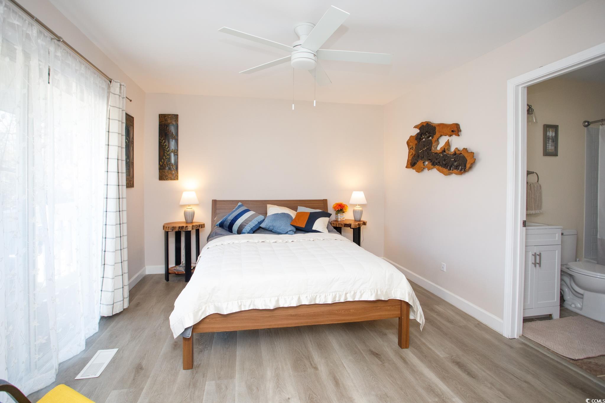Are you looking for a vacation home, permanent residence or investment property close to the beach? 407 Old South Circle is 1.4 miles to the pier in Garden City Beach. This true townhouse, meaning you own the land, has been completely remodeled by the current owners. The updated kitchen includes white shaker-style cabinets, granite counter tops and new stainless steel appliances. The ceiling in the kitchen was also raised during the renovation. Throughout the townhouse, flooring was updated with luxury vinyl, baseboards were replaced, the popcorn ceiling was removed, new light fixtures and ceiling fans were added and the townhouse was painted. To increase the living area, the screened porch was enclosed and the back patio was extended and new pavers added. The sliding glass door downstairs has been replaced. Both bathrooms were completely remodeled to include a walk-in shower in the primary bathroom and shower/tub combination in the guest bathroom. The downstairs of the townhouse includes a living room, dining area, kitchen, 1/2 bathroom, laundry room, enclosed porch and access to the fully fenced, private backyard. Both bedrooms are upstairs and each have their own en suite bathroom. The low HOA fee at Jamestown Village includes a clubhouse (weight room, pool table, kitchen and community event room) and outdoor pool. At 407 Old South Circle, you are near restaurants, golf, shopping and entertainment in addition to the beach. This townhouse would be a perfect primary residence, investment property (long-term rental) or personal vacation home. Short-term rentals are not allowed. Furnishings can be purchased separately. Call or text to schedule your showing today.