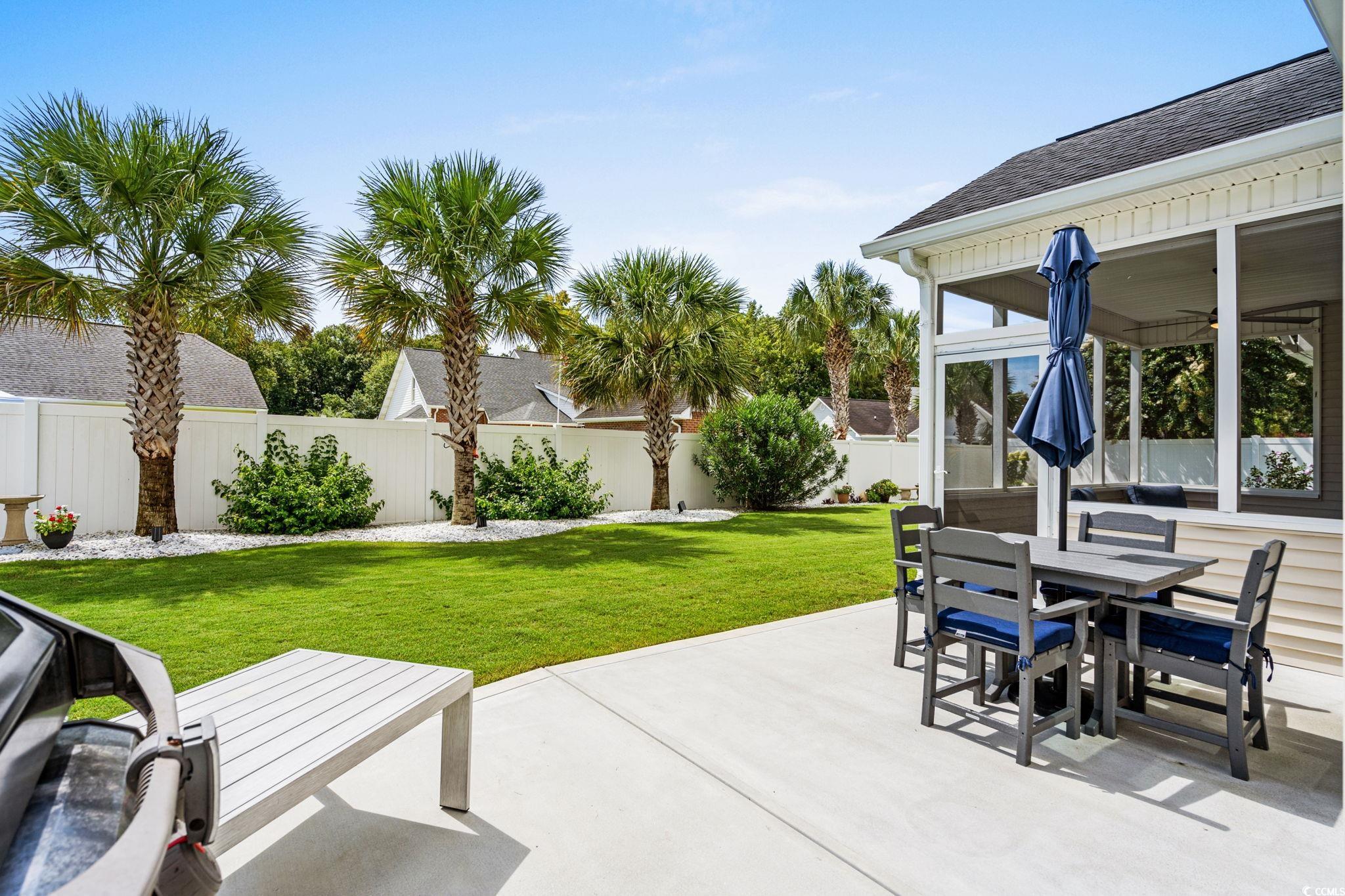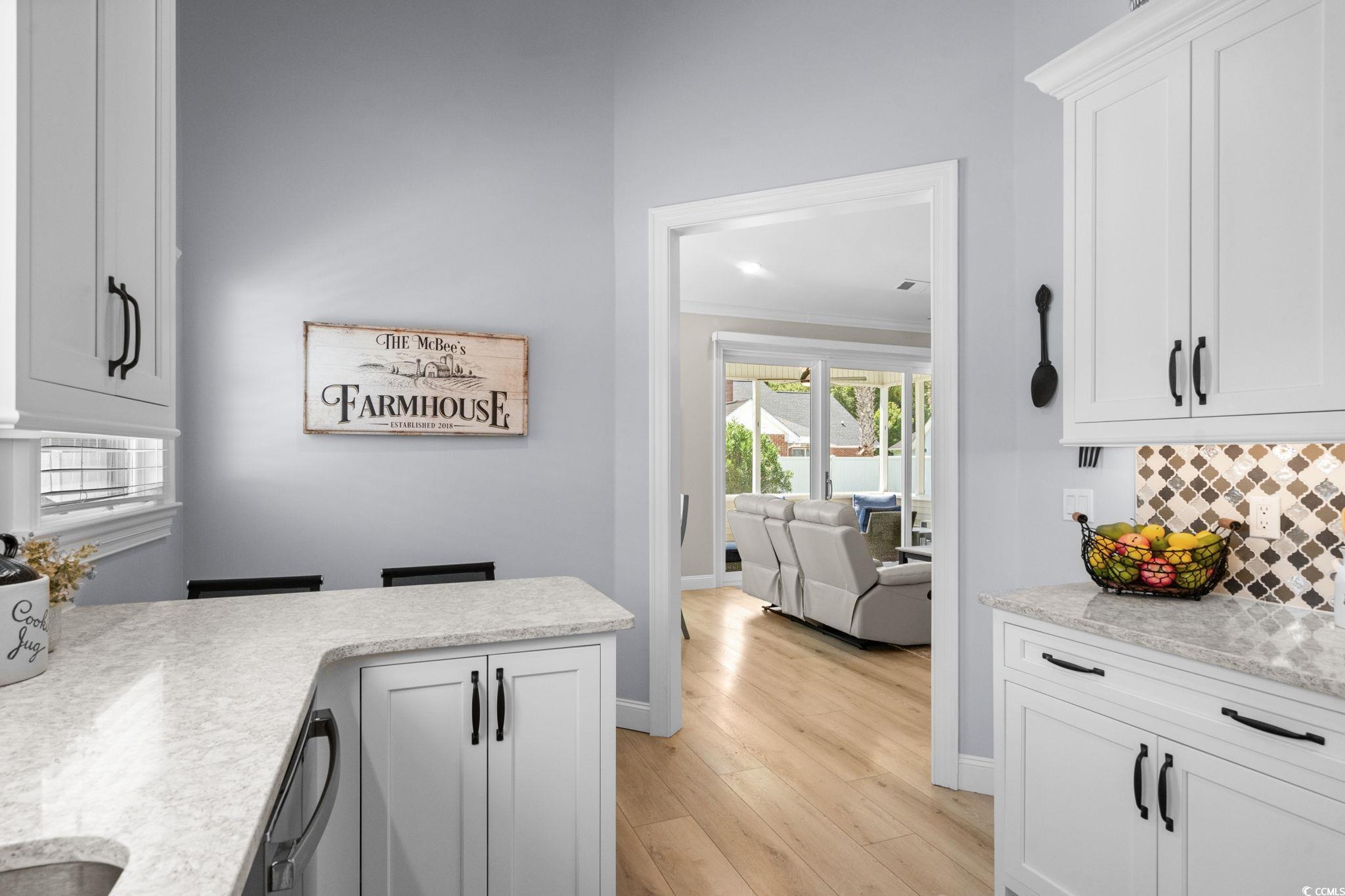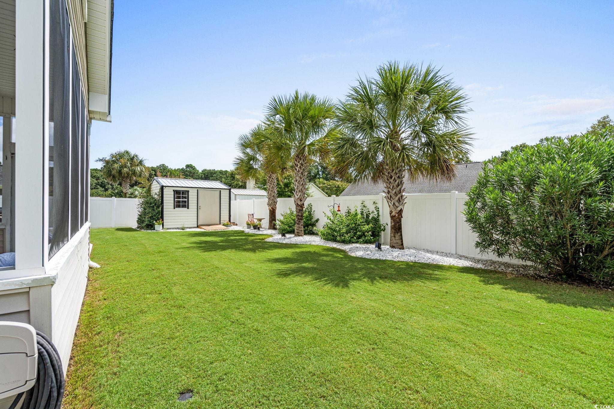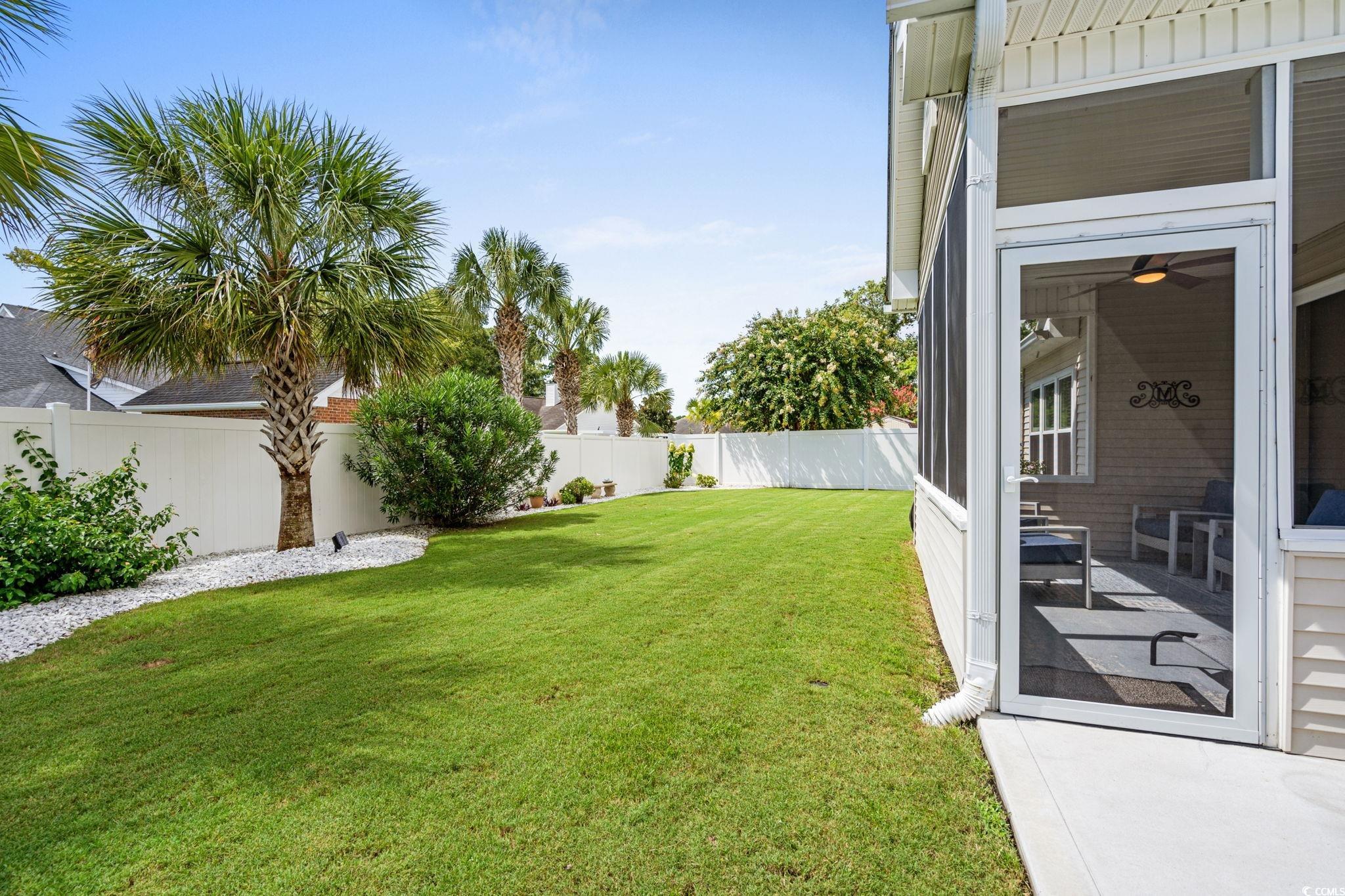 Exquisite totally remodeled and updated single family home in the convenient to everything neighborhood of Brandymill in Myrtle Beach. Owner has spared no expense remodeling / updating this home. The exceptional kitchen has McKenzie custom designed and fabricated, remote controled LED lighted cabinets with quartz counter tops and tile back splashes. Built-in stainless, GE profile appliances include a convection microwave oven, a regular oven, dishwasher and cooktop. The built-in GE stainless refrigerator is double door on the top with freezer on the bottom. The LVP floored, open dinning / living room area features a Samsung 75 inch framed, picture TV and a large Pella 8 foot sliding glass door with sliding solar shade pannels covering the entire glass area to protect from ultraviolet light when wanted. The sliding glass door opens to a 10 x 12 screened porch that looks out at the Brumuda grass back yard that is fully landscaped with uplighted palm trees, lush bushes and a stone fire pit. The grass is watered by a 4 zone sprinkler system that has a Rain Bird controler that can be monitered with an app on your smart phone. The master bedroom has extensive natural light from the combined 3 windows on one wall. A custom designed shelf and hanging rack walk-in closet and seperate linen closet is capable to store all your personal clothing items and linens. The onsuite tiled floor master bathroom has a handicap accessable tiled to the ceiling and glass shower with 2 hand held shower fixtures and a seperate stationary rain fixture. Four seperate neiches are set into the tile for storage of and easy access to your grooming items. The custom designed and farbricated vanity by Deluxe Art provides all the space necessary for storage of personal items. The large, full width backlit mirror over the vanity can be dialed up or down for the amount of light desired. The home has two other bedrooms with several windows flooding the rooms with natural light and a closet in each. The second bathroom has a tiled bathtub, tiled floor and vanity also created by Deluxe Art. The entry to the home has an Anderson storm door with slide down screen for fresh air on those nice Spring and Fall days and also a double side lighted entry door. The attached double car garage has an Epoxy floor with an accessable pulldown stair attic that is plywood floored for all your storage needs. The insulated garage door has tinted glass and comes with an app to open and close from your smart phone from wherever your travels take you. There is a ring camera over the garage door for the UPS or FedEx delivery person to let you know he has a package to deliver. You are able to open the door from your phone, let him put the package inside the garage and then close the door. The new driveway and walkway are concrete patern stamped and driveway large enough for parking of several vehicles. Next to the home is another concrete paved area for storage of a boat or travel trailer behind the six foot fence that surrounds the side and back yard. The home owners association bylaws allow a boat or travel trailer to be stored behind a six foot fence. On the side of the home, extended from the kitchen, is hot and cold water and drain piping that will allow you to add an outdoor sink if wanted. An electric outlet has been added to charge the battery of a boat or travel trailer. Behind the concrete boat or trailer storage area is a 10 foot by 12 foot storage shed for your tools and landscaping items. The three year old Trane high effeciency HVAC has been serviced and maintained every six months with documentation. Every window in the home has been replaced with new tinted glass windows. This lovely LVP and tile floored home is extemenly well kept, exceptionally clean and ready for immediately occupancy. Have your personal real estate professional show you this exceptional home today.