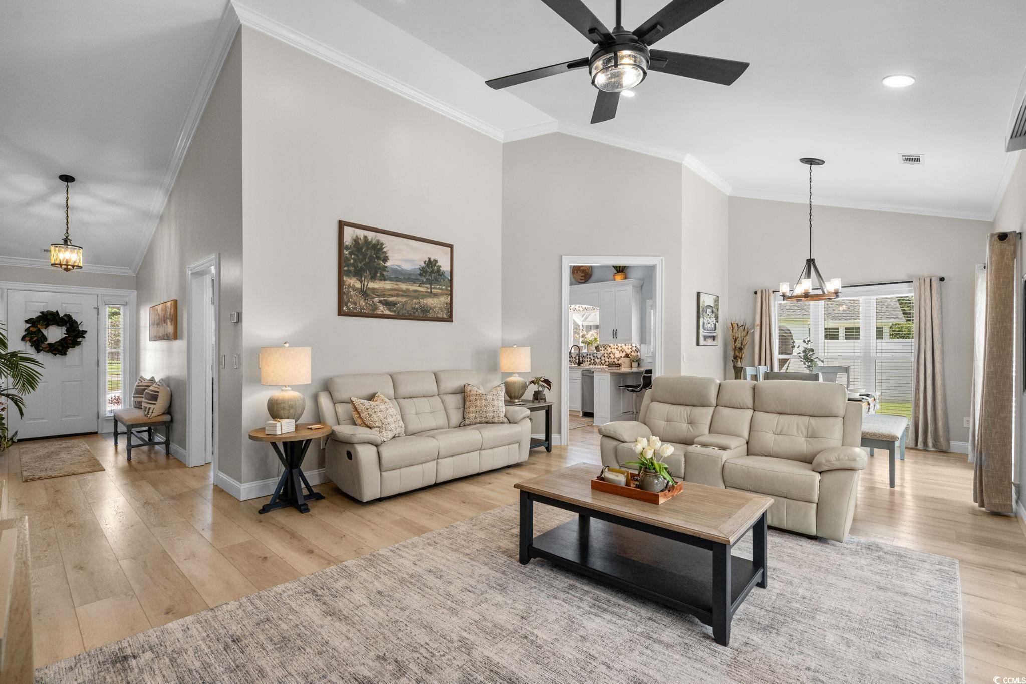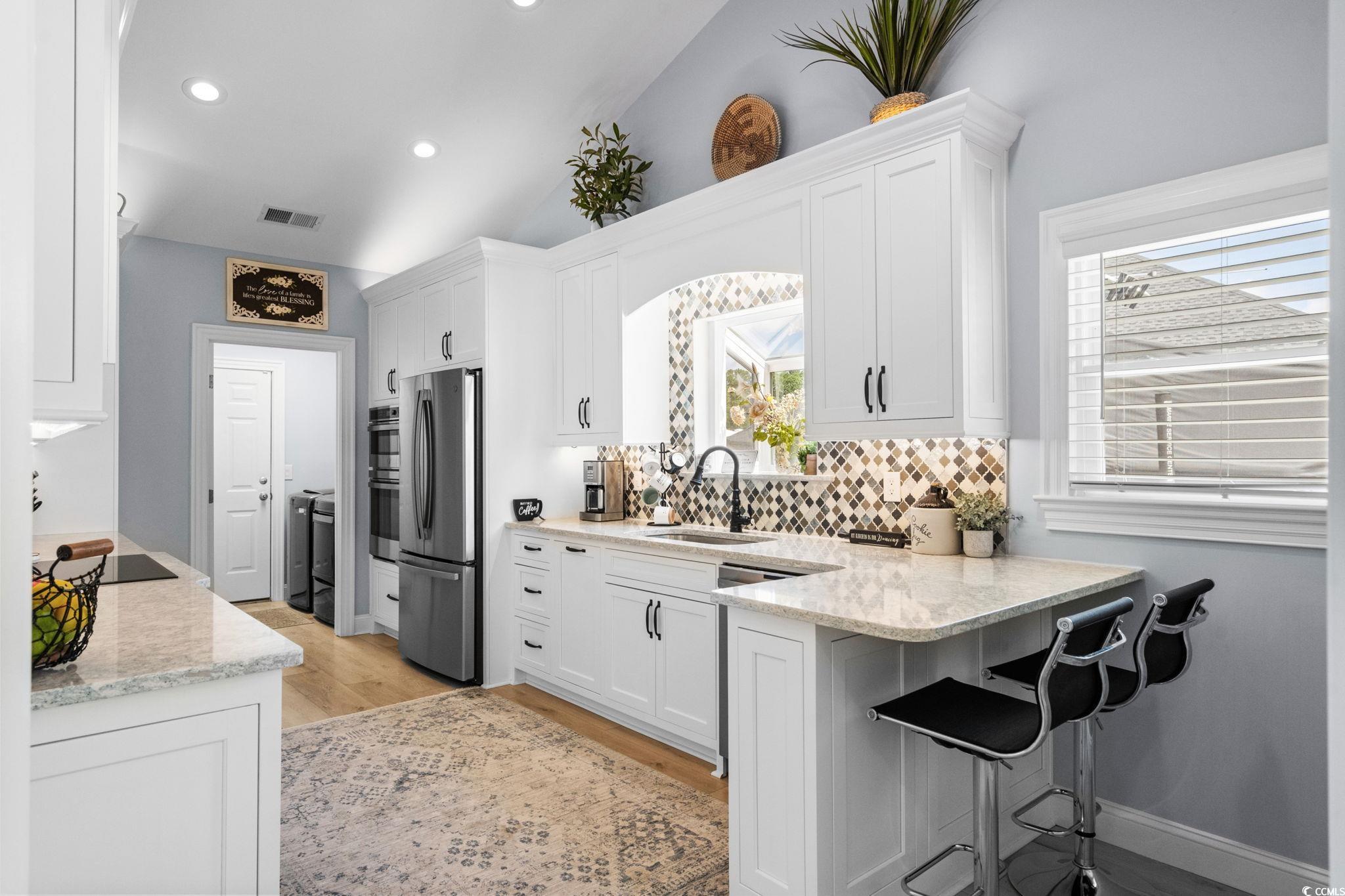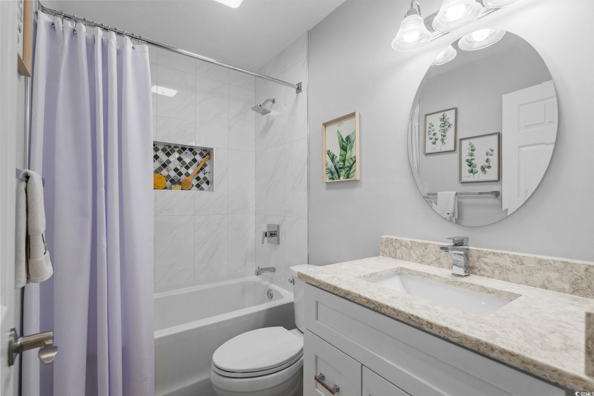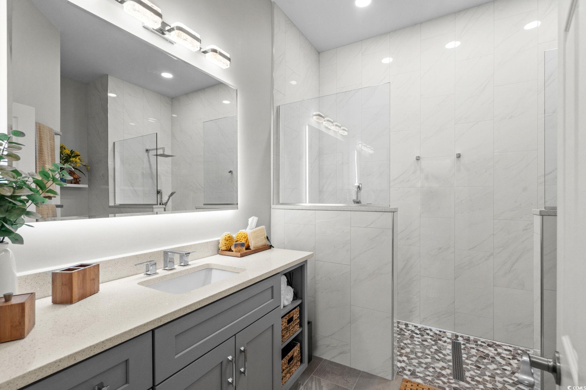 Exquisite totally remodeled and updated single family home in the convenient to everything neighborhood of Brandymill in Myrtle Beach. Owner has spared no expense remodeling / updating this home. The exceptional kitchen has McKenzie custom designed and fabricated, remote controled LED lighted cabinets with quartz counter tops and tile back splashes. Built-in stainless, GE profile appliances include a convection microwave oven, a regular oven, dishwasher and cooktop. The built-in GE stainless refrigerator is double door on the top with freezer on the bottom. The LVP floored, open dinning / living room area features a Samsung 75 inch framed, picture TV and a large Pella 8 foot sliding glass door with sliding solar shade pannels covering the entire glass area to protect from ultraviolet light when wanted. The sliding glass door opens to a 10 x 12 screened porch that looks out at the Brumuda grass back yard that is fully landscaped with uplighted palm trees, lush bushes and a stone fire pit. The grass is watered by a 4 zone sprinkler system that has a Rain Bird controler that can be monitered with an app on your smart phone. The master bedroom has extensive natural light from the combined 3 windows on one wall. A custom designed shelf and hanging rack walk-in closet and seperate linen closet is capable to store all your personal clothing items and linens. The onsuite tiled floor master bathroom has a handicap accessable tiled to the ceiling and glass shower with 2 hand held shower fixtures and a seperate stationary rain fixture. Four seperate neiches are set into the tile for storage of and easy access to your grooming items. The custom designed and farbricated vanity by Deluxe Art provides all the space necessary for storage of personal items. The large, full width backlit mirror over the vanity can be dialed up or down for the amount of light desired. The home has two other bedrooms with several windows flooding the rooms with natural light and a closet in each. The second bathroom has a tiled bathtub, tiled floor and vanity also created by Deluxe Art. The entry to the home has an Anderson storm door with slide down screen for fresh air on those nice Spring and Fall days and also a double side lighted entry door. The attached double car garage has an Epoxy floor with an accessable pulldown stair attic that is plywood floored for all your storage needs. The insulated garage door has tinted glass and comes with an app to open and close from your smart phone from wherever your travels take you. There is a ring camera over the garage door for the UPS or FedEx delivery person to let you know he has a package to deliver. You are able to open the door from your phone, let him put the package inside the garage and then close the door. The new driveway and walkway are concrete patern stamped and driveway large enough for parking of several vehicles. Next to the home is another concrete paved area for storage of a boat or travel trailer behind the six foot fence that surrounds the side and back yard. The home owners association bylaws allow a boat or travel trailer to be stored behind a six foot fence. On the side of the home, extended from the kitchen, is hot and cold water and drain piping that will allow you to add an outdoor sink if wanted. An electric outlet has been added to charge the battery of a boat or travel trailer. Behind the concrete boat or trailer storage area is a 10 foot by 12 foot storage shed for your tools and landscaping items. The three year old Trane high effeciency HVAC has been serviced and maintained every six months with documentation. Every window in the home has been replaced with new tinted glass windows. This lovely LVP and tile floored home is extemenly well kept, exceptionally clean and ready for immediately occupancy. Have your personal real estate professional show you this exceptional home today.