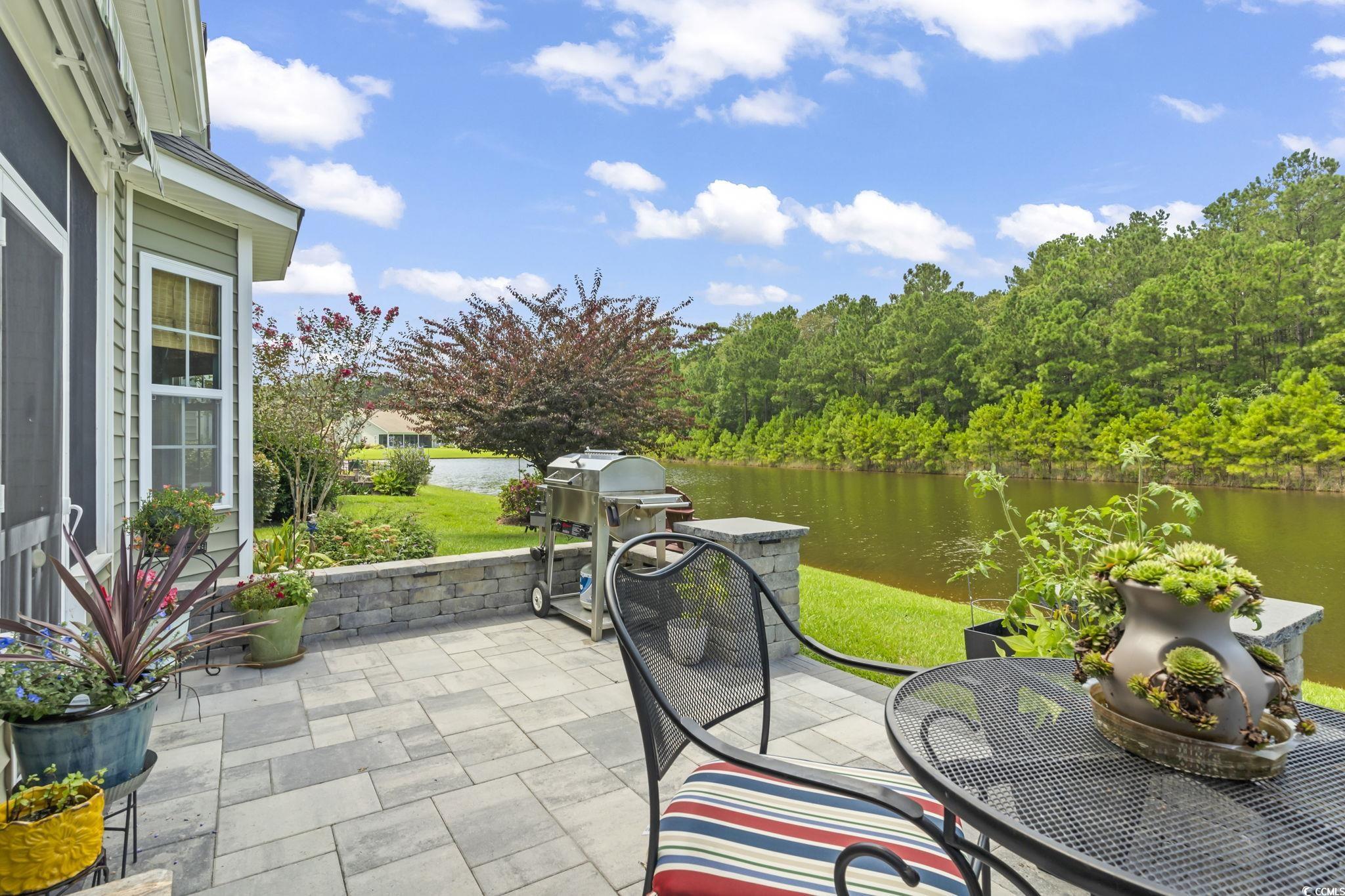 Gorgeous 3-Bedroom, 2-Bath lakefront Home in Palm Lakes Plantation is Priced to Sell and Sellers will pay the buyer’s first year of HOA fees at closing with an accepted and successfully closed offer.This stunning home offers the perfect blend of comfort, upgrades, and location. Featuring three spacious bedrooms, the owner’s suite boasts a tray ceiling, walkin closet with custom organizers, and a luxurious bath with a double-sink vanity, walk-in shower, and linen closet. The two additional bedrooms are generously sized with large closets and share a second full bath. The open concept layout is ideal for entertaining. The large family room with vaulted ceilings and a 72-inch paddle ceiling fan flows seamlessly into a private study with French doors and a formal dining room with a tray ceiling. The gourmet kitchen overlooks the living room, pond, and sunroom, and is a chef’s dream with granite countertops, custom stone backsplash a spacious island, pantry, abundant cabinet space, and high-end stainless-steel appliances. Just off the kitchen, the incredible sunroom with porcelain wood like floors is the perfect spot for morning coffee or unwinding with a good book. From the moment you walk in, you will notice the many thoughtful upgrades. The home features luxury wood-look floors throughout the main living areas, an oversized garage with suspended shelving, a workbench, cabinets, metal shelves and an EV plug, along with smart home technology that allows you to control the HVAC, irrigation system with rain sensor, and garage door from anywhere. Additional highlights include a tankless water heater, upgraded electrical panel with surge protectors, a whole-house Generac generator, an alarm system, a biometric door lock, and custom closet organizers in the pantry, laundry room, and owner’s suite bath and carbon monoxide and smoke detectors, storm doors and screen door in laundry leading to garage. Step outside and you will love the slate patio with knee walls and lighting and an electric awning with remote control, all overlooking the peaceful pond and abundant wildlife. The home’s exterior also showcases river rock landscaping with concrete curbing, providing both beauty and low maintenance. Located in the desirable Palm Lakes Plantation, residents enjoy access to a community pool, clubhouse, and playground, all while being just minutes from major highways, shopping, dining, and everything the Grand Strand has to offer. Whether you are relaxing on the patio, hosting a barbecue, or simply enjoying the views, this home truly has it all and should be at the top of your list.