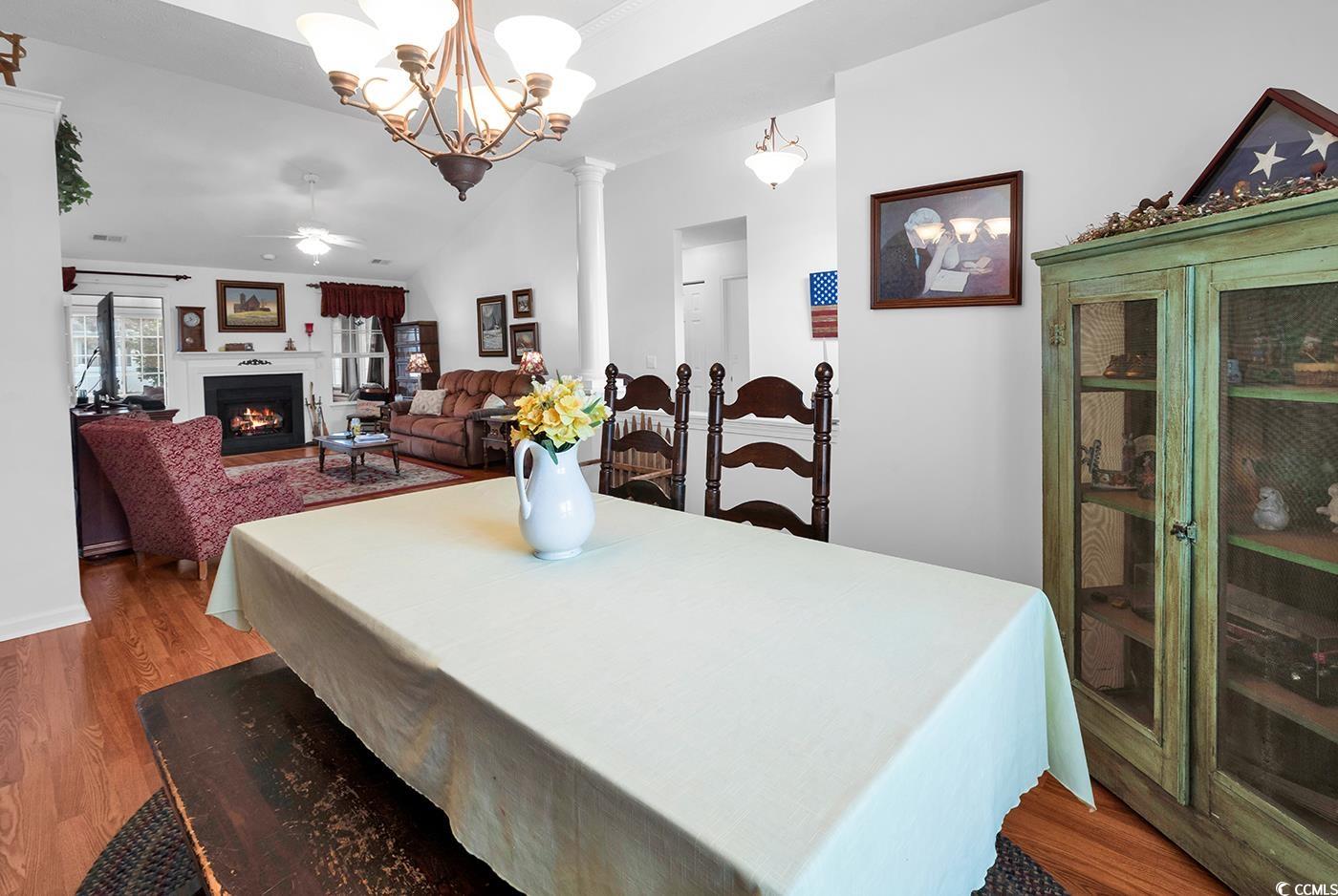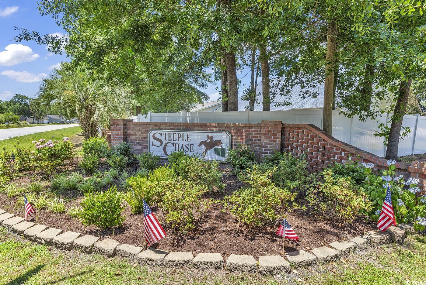 Welcome to this inviting 3 bedroom, 2 bathroom home in the desirable Steeplechase community. The exterior features charming brick accents, mature landscaping, and palm trees that add to the curb appeal. Inside, you’ll find thoughtful details like vaulted and tray ceilings, a cozy fireplace, and a kitchen with custom cabinetry. The breakfast nook and separate dining room provide plenty of space for everyday meals or gatherings. The primary suite offers an ensuite bathroom with a garden tub and separate shower. Additional highlights include an enclosed porch, a recently updated HVAC system, new roof, and an irrigation system for easy lawn care. Steeplechase is a welcoming neighborhood with less than 160 homes, a community pool, and a clubhouse. The location is ideal—just 15 minutes to the beach, airport, and Tanger Outlets, with easy access to Murrells Inlet, Conway, and all the dining and shopping you could want. Enjoy the perfect blend of convenience and a tucked-away setting.