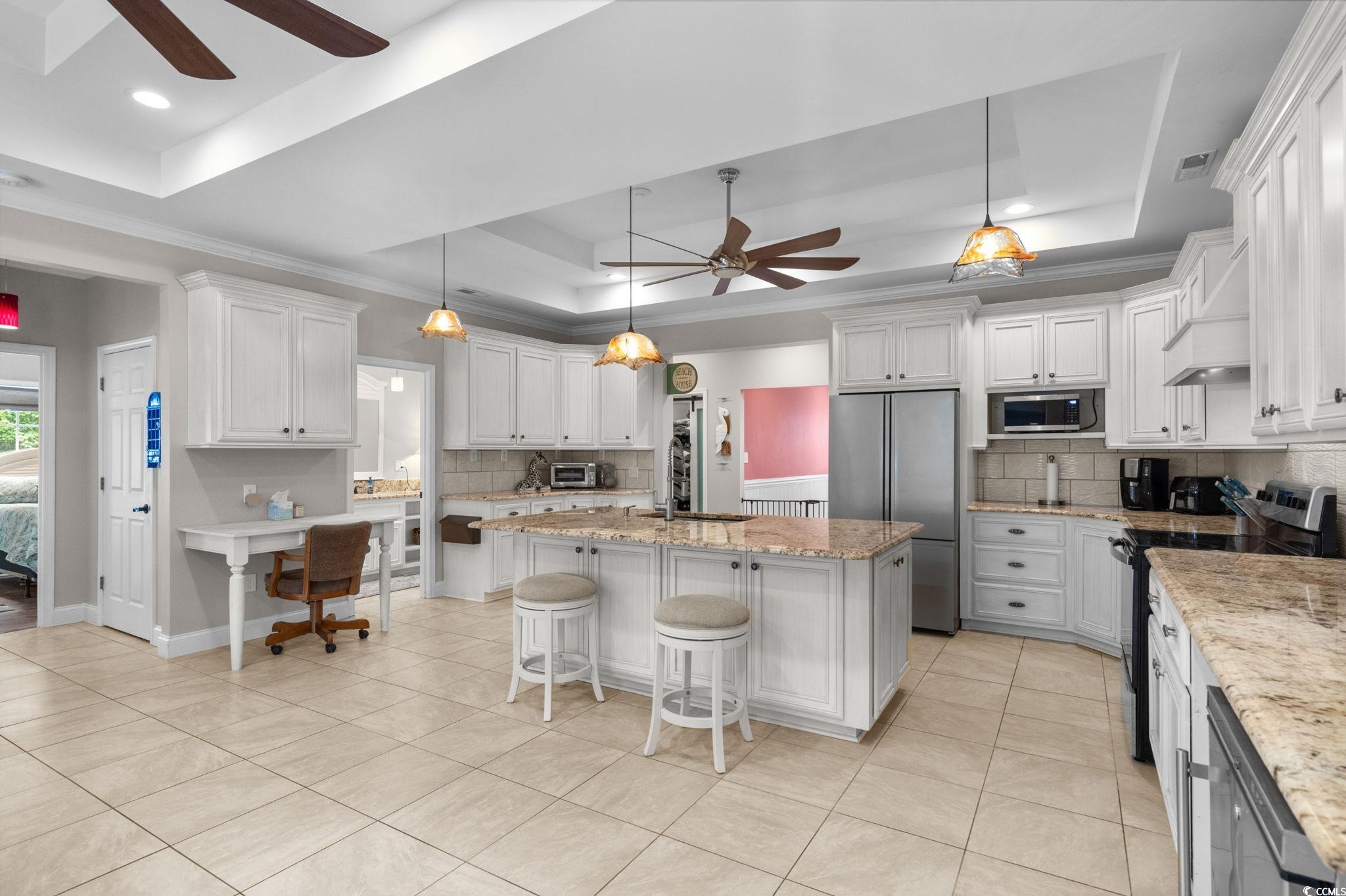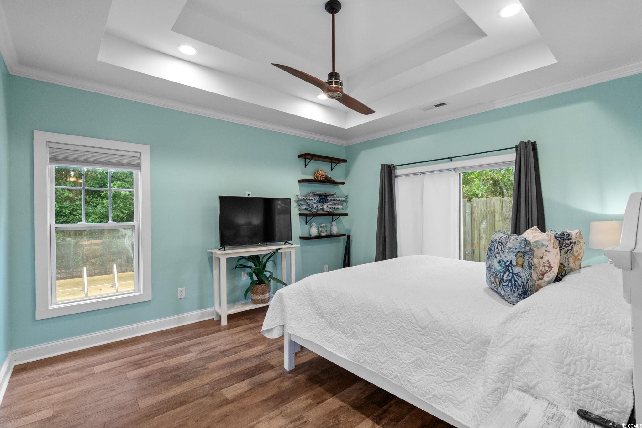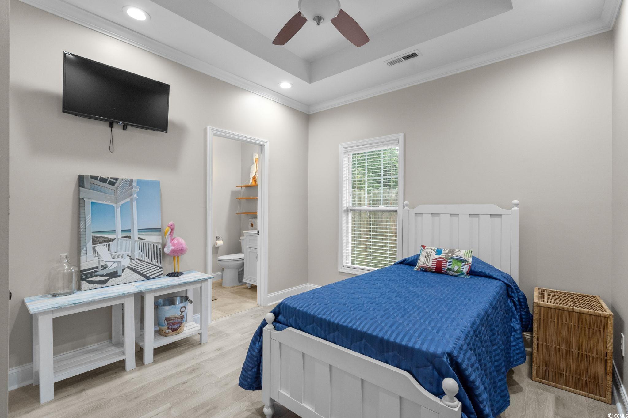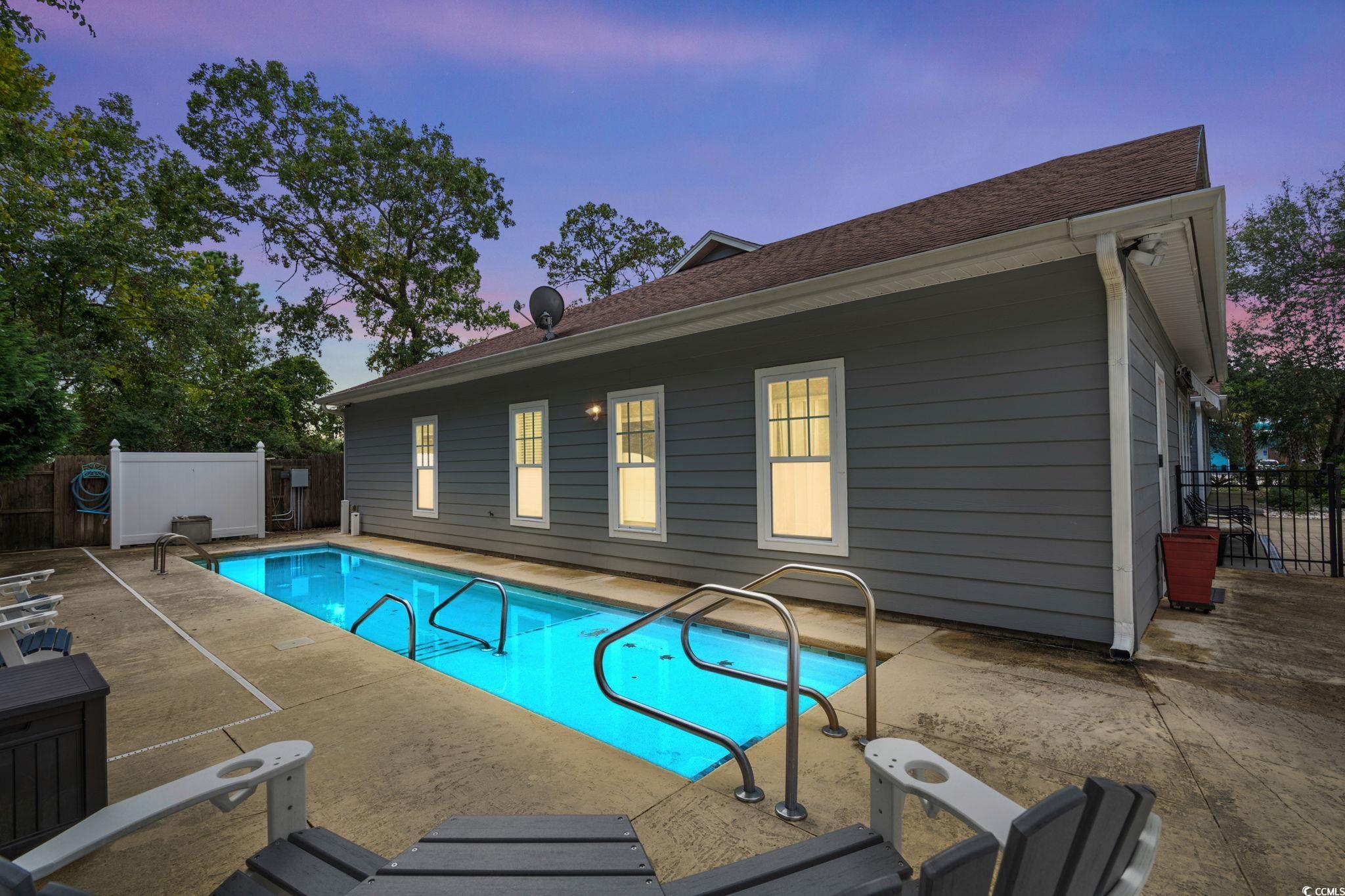 Step into a world of refined coastal living at 409 64th Ave N, a breathtaking single-level beach house nestled within the prestigious Forest Dunes community. This exceptional residence, just a short stroll from the glistening Atlantic Ocean, presents a rare opportunity to embrace a lifestyle of comfort, elegance, and endless possibility. Boasting an impressive 5 bedrooms and 5.5 bathrooms, this home is designed for seamless multi-generational living or luxurious guest accommodations. The thoughtfully planned layout offers two distinct entrances, each welcoming you into a beautifully curated space. One entrance leads you into a bright and airy den, which flows effortlessly into a gourmet kitchen. Here, culinary dreams come to life with a stunning granite island, high-end stainless steel appliances, and sleek, modern cabinetry. The adjacent formal dining room is the perfect setting for intimate gatherings and celebratory feasts. This home's design prioritizes both privacy and connection, featuring two lavish master suites, each with direct access to the secluded pool deck, generous walk-in closets, and spa-like en-suite bathrooms. An elegant tiled hallway guides you to three additional bedrooms, each offering its own unique charm and private bath. Two versatile bonus rooms provide the ideal space for a home office, creative studio, or a serene library. The heart of the home is a spectacular great room, where a cozy fireplace invites you to unwind after a day at the beach. A discreet pull-down screen transforms this space into a private cinema for unforgettable movie nights. Outside, your personal resort awaits. A fully fenced, grass-free pool deck frames a sparkling in-ground pool with a Forever Swim feature---perfect for a morning workout or a refreshing evening dip. A spacious sundeck offers the ideal spot to relax and soak up the sun. At 409 64th Ave N, every detail has been thoughtfully considered to create an atmosphere of tranquility and luxury. This isn't just a home; it's a sanctuary where new memories are waiting to be made!