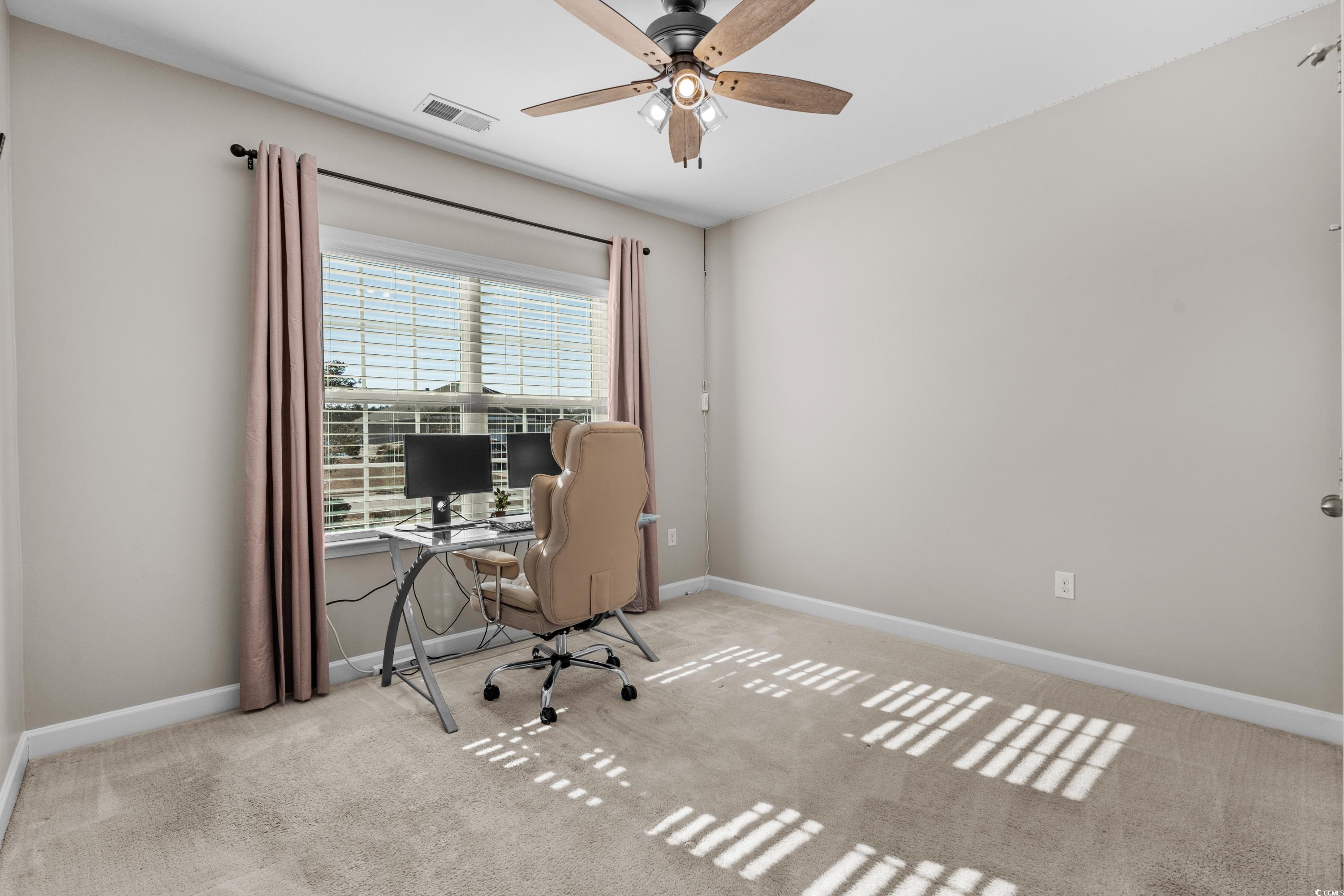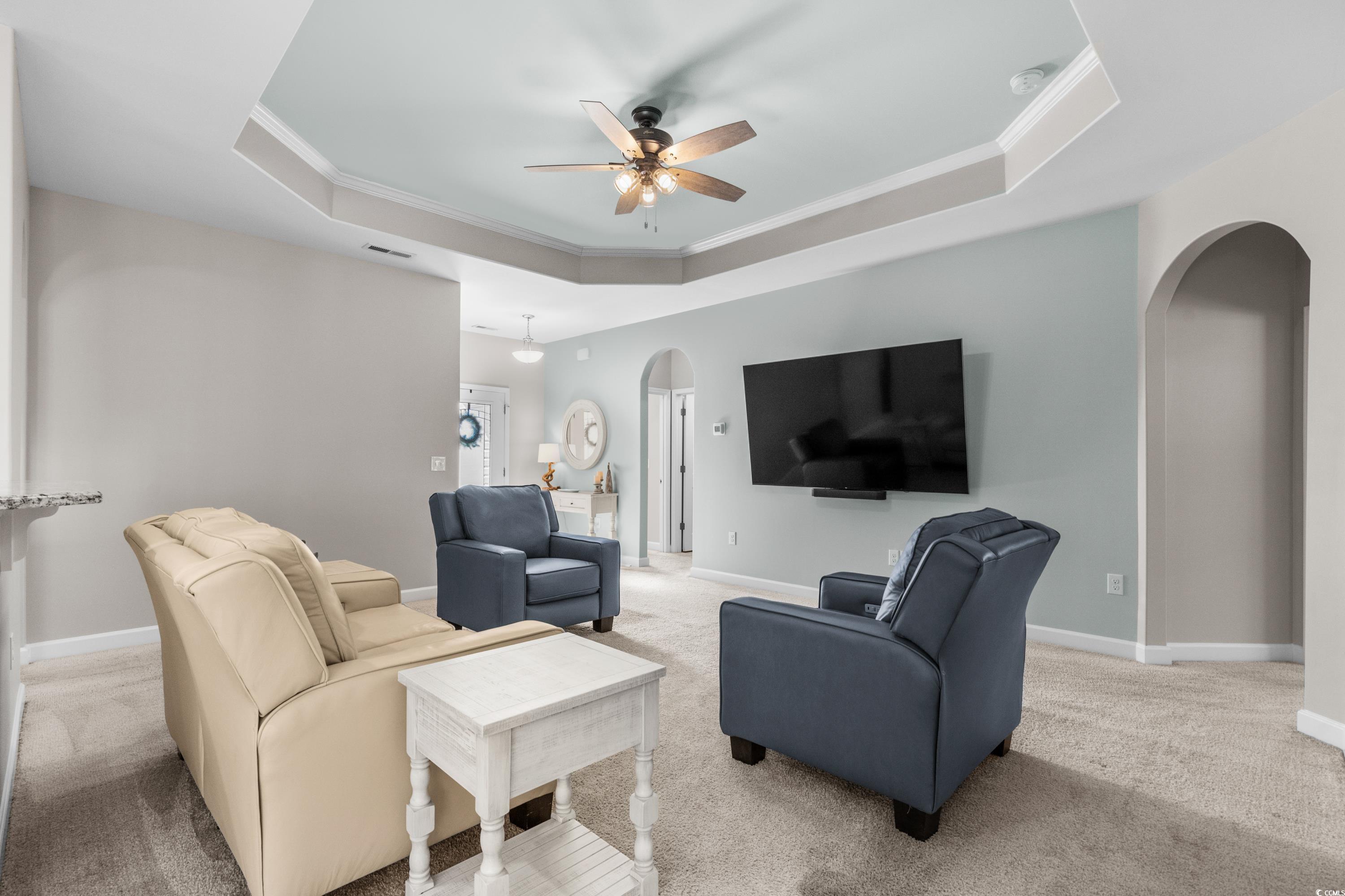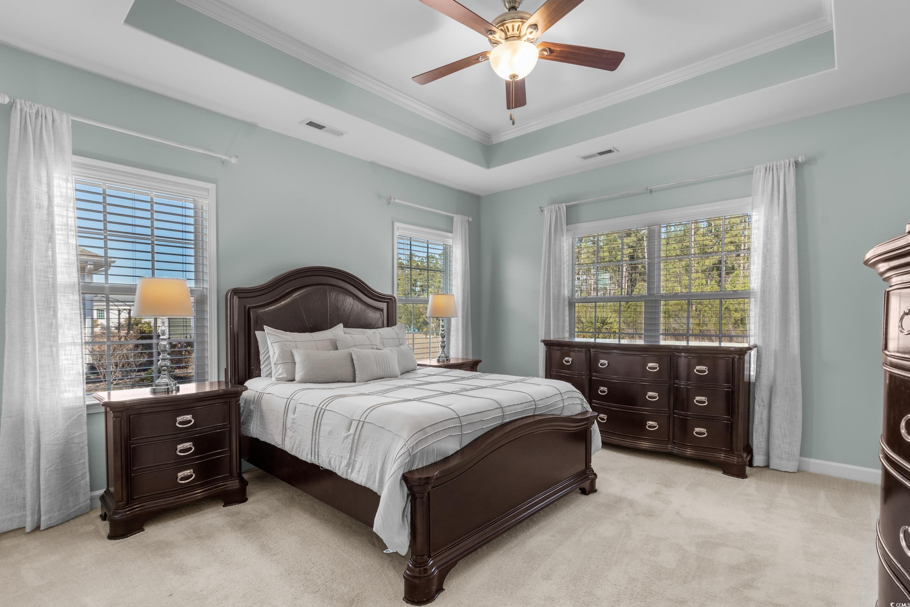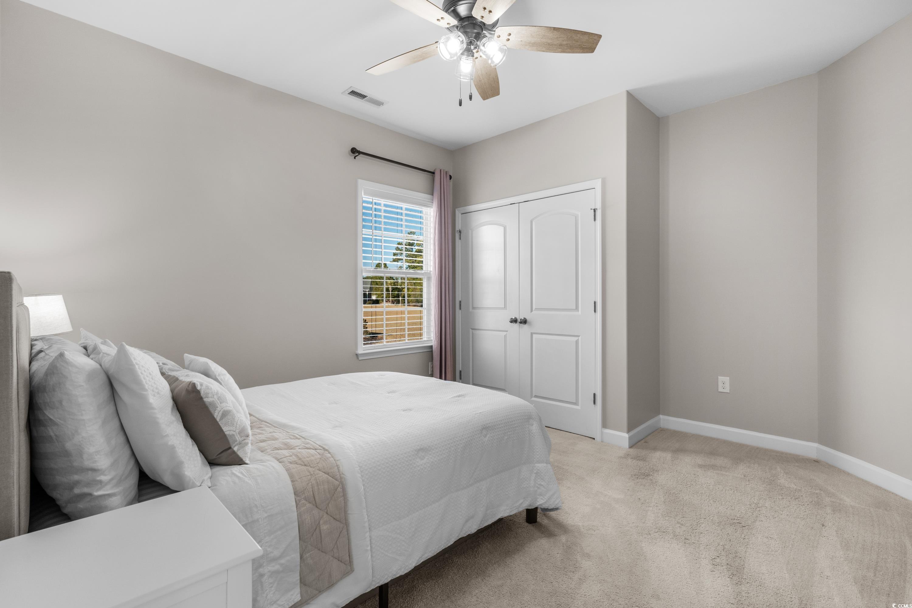 Discover this charming home in the Arbor Glen neighborhood, offering a tranquil pond and woodland view from the spacious backyard. The open floor plan features a living area with a tray ceiling, a kitchen with marbled granite, and white cabinetry, and a bright dining area leading to a sunroom. The primary suite includes a walk-in closet, dual vanities, a shower, and ample storage, while two additional bedrooms share a full bathroom. New HVAC 07/2024. The extended two-car garage provides extra storage and a larger laundry room. Conveniently located just 20 minutes from the beach and close to shopping, dining, and entertainment, this home offers both comfort and convenience. Don't miss this out on the opportunity for this home to be yours.