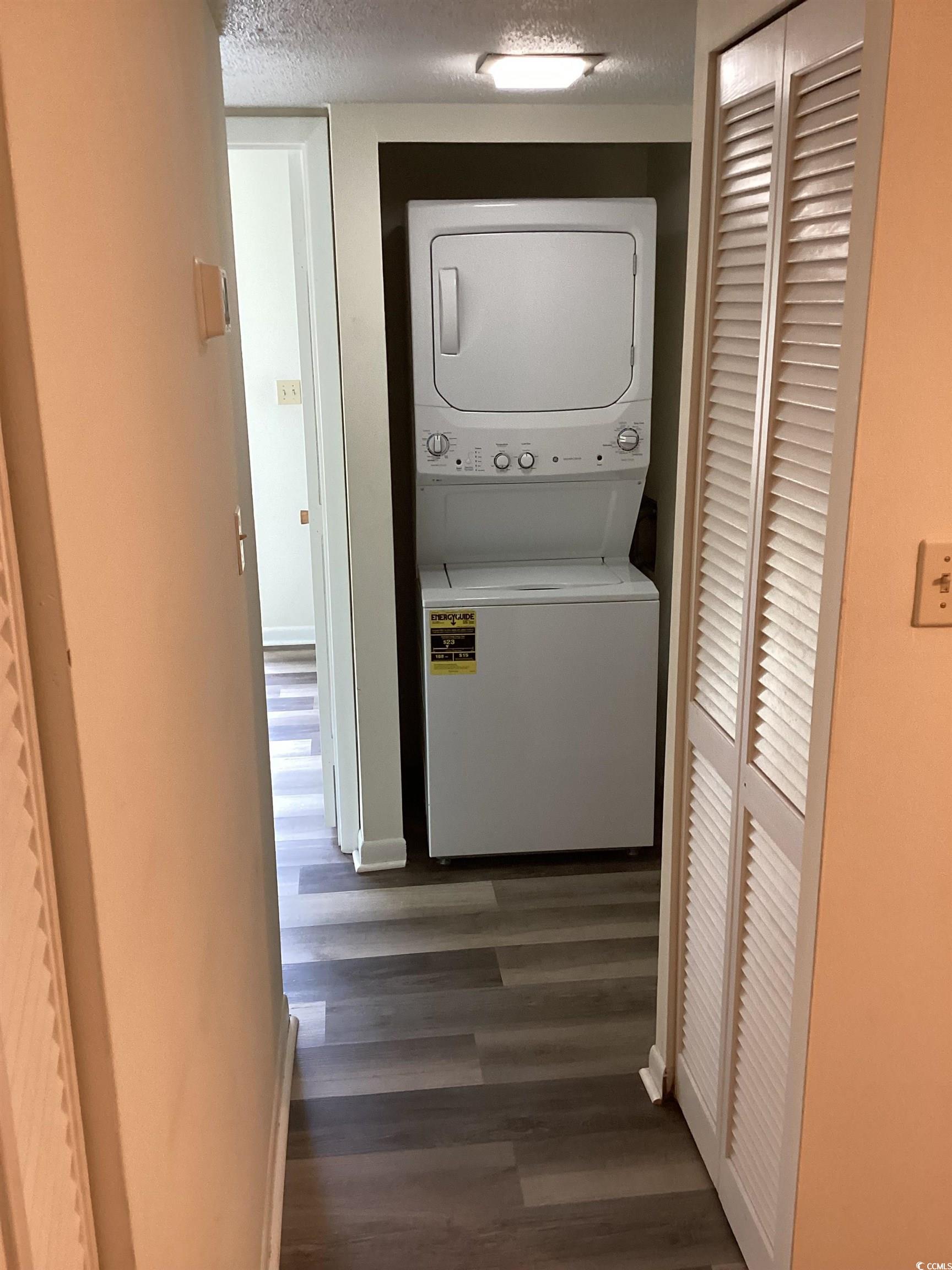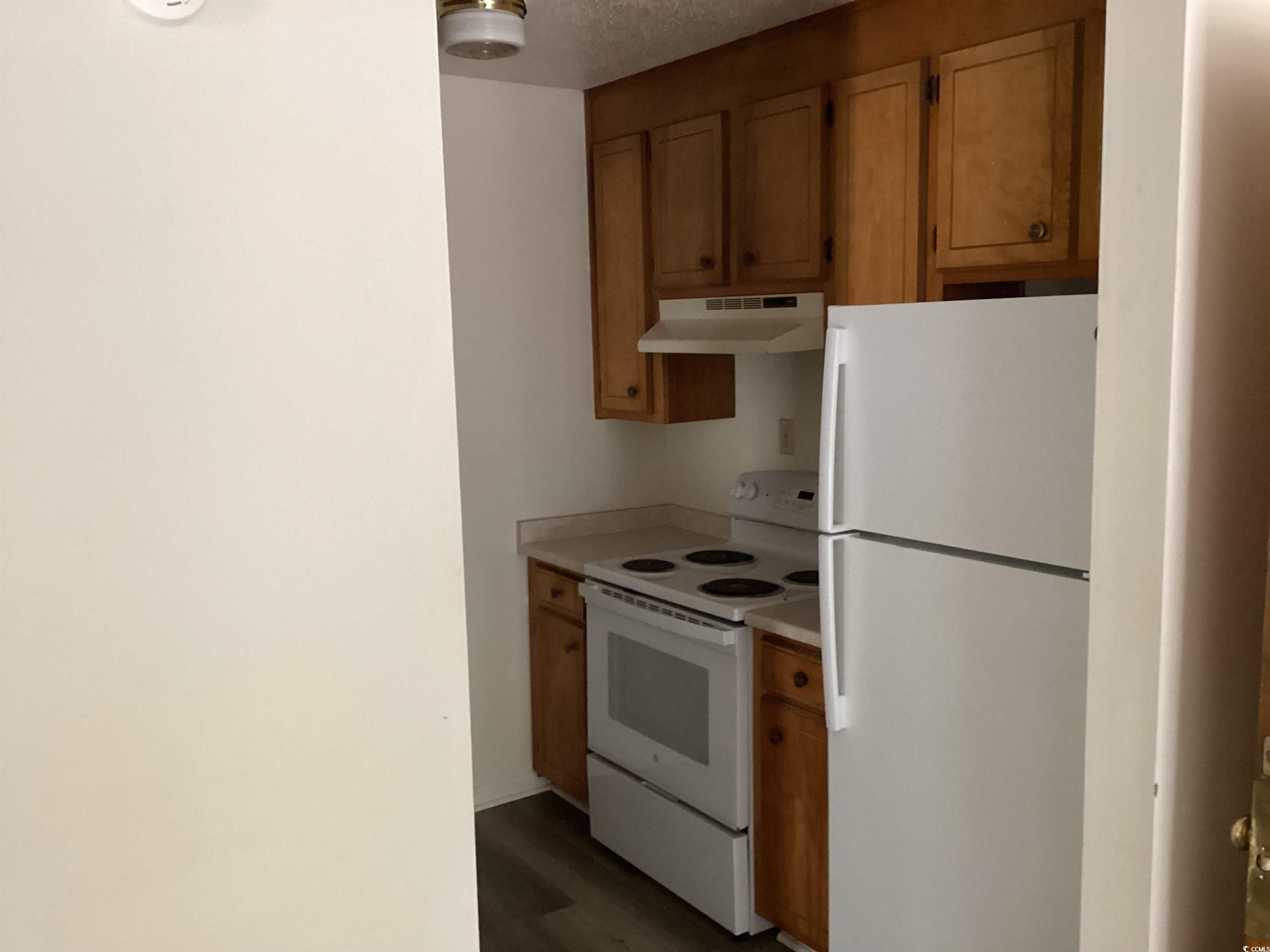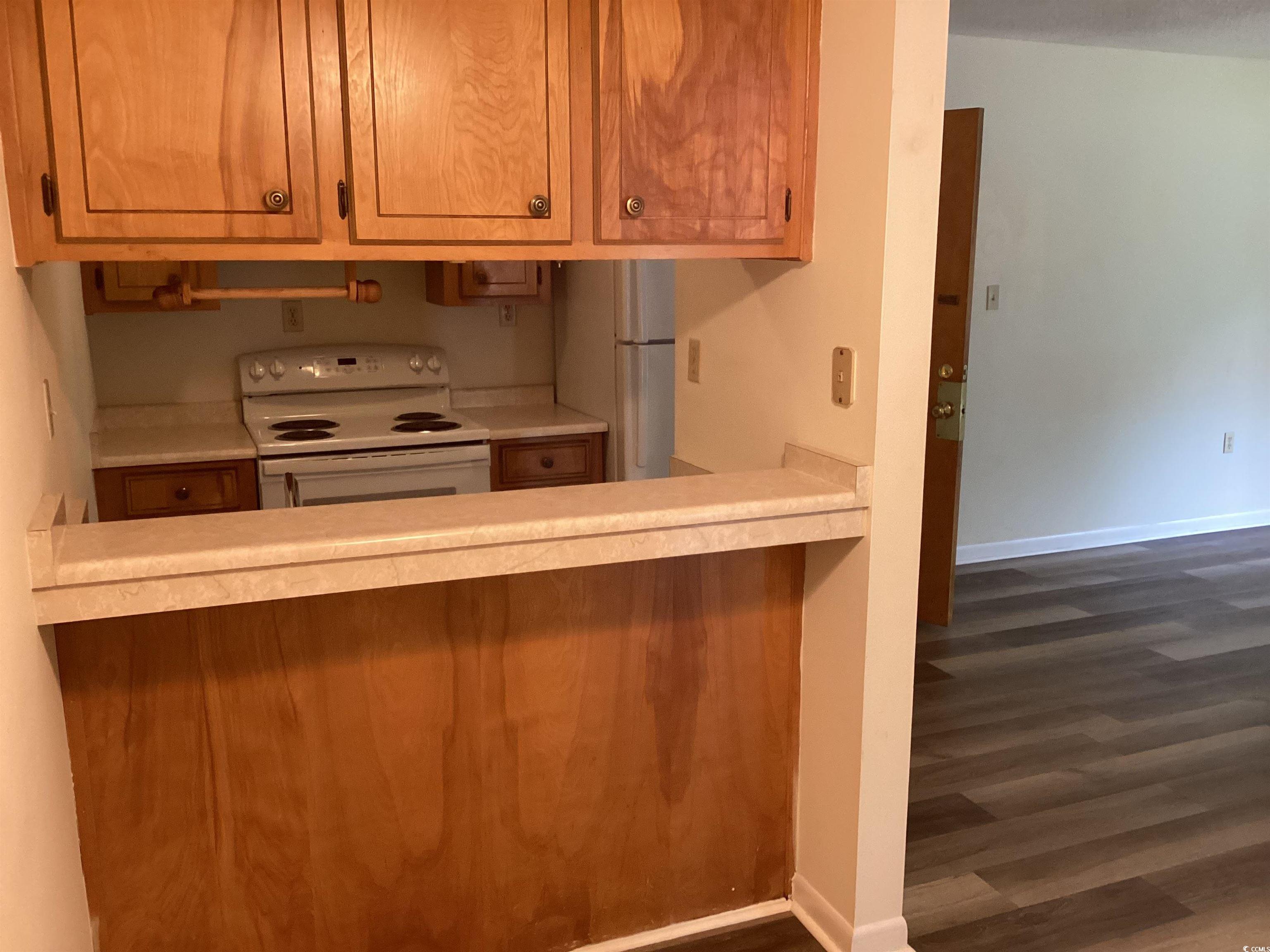 Basic 2 bedroom condo with 2 vanities-commodes sharing the same tub-shower combo in between them. Galley kitchen with a pass through to the dining area. This is the only building located on a hill in Salt Marsh Cove, which is in a flood zone. Unit is on the first floor with parking directly in front and is next to the community pool. Newer vinyl plank flooring is the start of your renovation project! And just outside the front door is an exterior storage closet.