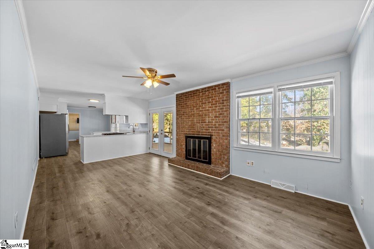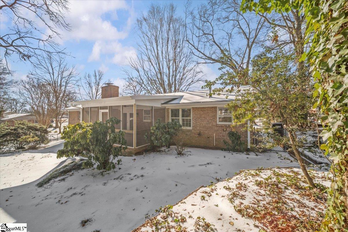 Updated one-story home on a spacious half-acre lot in the highly desirable Eastside area of Taylors. This 3-bedroom home features hardwood floors in the living room, hallway, and all three bedrooms. Enjoy a separate living room and den, providing flexible space for everyday living and entertaining.The nicely sized laundry room doubles as a functional mudroom, perfect for busy households. Recent upgrades include a new roof and gutters, beautifully updated kitchen with new appliances, quartz countertop and cabinets, durable LVT flooring that flows into the den, and a brand-new screened-in porch overlooking the backyard. Both bathrooms have been refreshed with new vanities and toilets. Conveniently located less than 5 minutes from Harris Teeter and Eastside High School.. Enjoy a quick 15-minute drive to the award-winning dining and entertainment of Downtown Greenville, or head 15 minutes in the opposite direction to explore the charming shops and community events of Downtown Greer. A move-in-ready home combining modern updates, comfort, and an excellent location. See addendum with list of all updates. One exterior photo of the grass and roof have been virtually enhanced using AI due to snow present when the photos were taken.