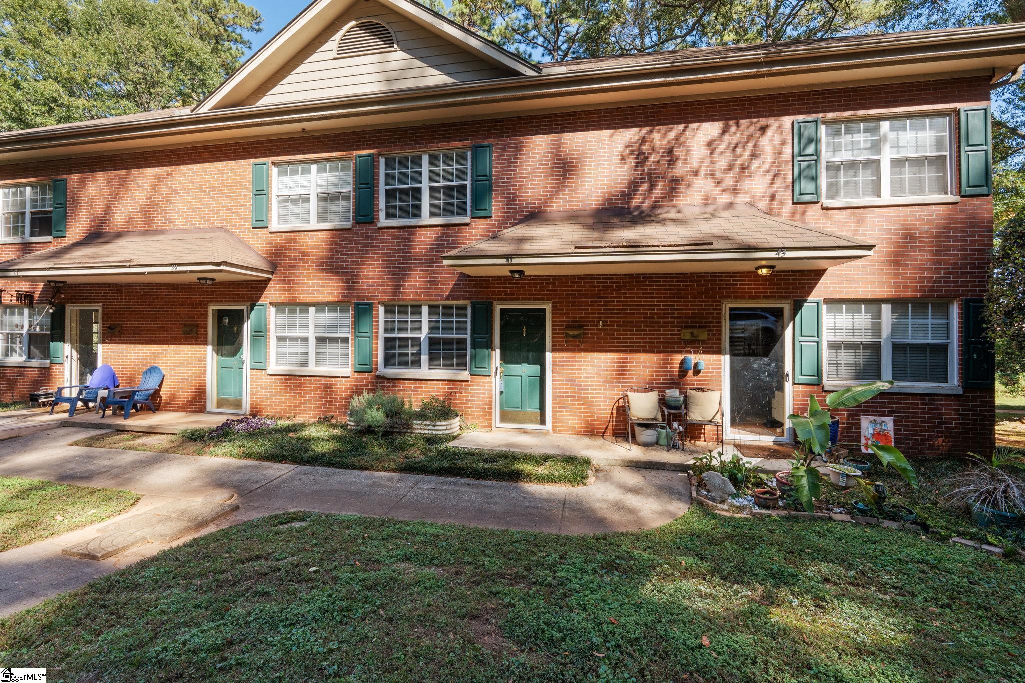 Welcome home to 41 Faris Circle, a beautifully maintained two-story all-brick townhome in the highly desirable Faris Ridge community. With timeless curb appeal, manicured landscaping, and a low-maintenance lifestyle, this property is perfect for both homeowners and investors alike. Inside, you’ll find two spacious bedrooms and one full bath. The original vintage tile flooring in the bathroom adds a touch of charm, while the open-concept living area and kitchen create a bright, inviting space that flows effortlessly to a private back patio—ideal for morning coffee. Enjoy the convenience of ample front parking and private rear alley access, a rare perk in this location. Situated just moments from Augusta Road’s favorite shops, dining, and only minutes from downtown Greenville, the Swamp Rabbit Trail, and the YMCA, this location is unbeatable! Whether you’re looking for a move-in-ready home or a smart investment opportunity with strong rental potential, this townhome checks all the boxes. Schedule your showing today!