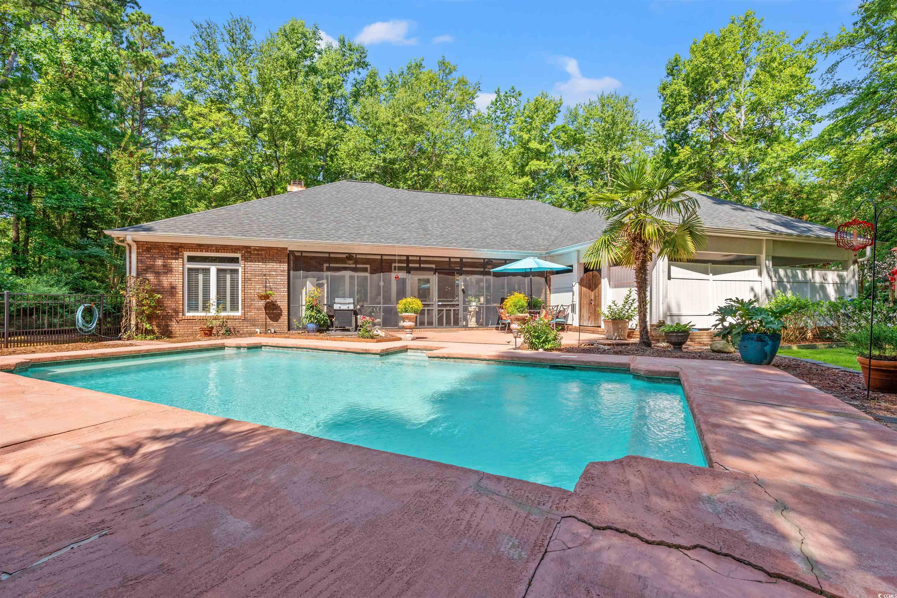 ***** Motivated Seller, bring offers*****Welcome to 41 Sunfield Drive—a private coastal retreat with its own in-ground pool, located in the desirable Carolina Shores North community of Calabash! This inviting 3-bedroom, 2-bathroom home sits on a generous lot surrounded by mature trees, offering both privacy and charm. Inside, you'll find an open floor plan with vaulted ceilings, a bright living area, and a spacious kitchen with ample cabinet storage. The primary suite features a walk-in closet and an en-suite bath, while two additional bedrooms provide room for guests or a home office. Step outside to your personal backyard oasis—complete with a screened porch and a sparkling in-ground pool, perfect for relaxing or entertaining all summer long. This home also includes a covered carport, a newer roof, and low HOA dues. Enjoy peaceful living just minutes from Sunset Beach, golf, shopping, and dining. Motivated seller, so bring offers.