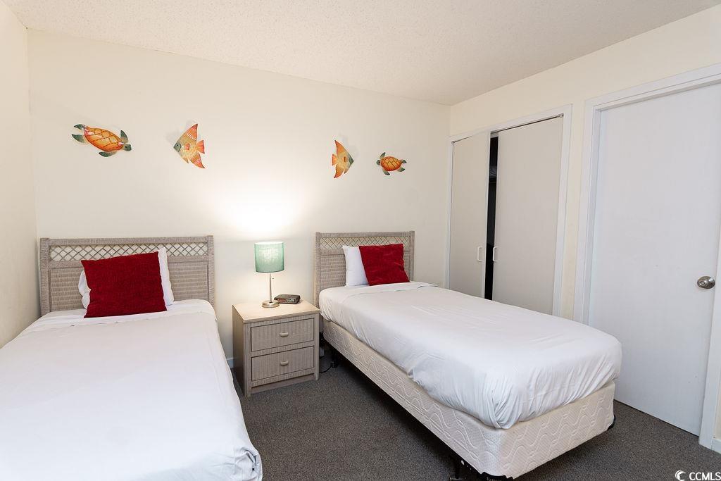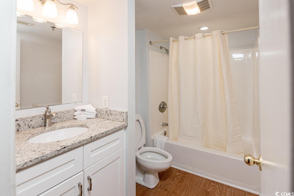 Updated two-bedroom, two-bath lodge with great lake views on the lake across from the ocean. This property is just steps from the lake bridge that connects Laurel Court to the ocean walkways and the Embassy Suites hotel. You can walk to the ocean in 5 minutes or stay at the Laurel Court pool on the tip of Lake Arrowhead and next to the condo. There is wood look LVP flooring throughout this condo including the kitchen and both bathrooms. There is carpeting in both bedrooms. The kitchen has white cabinets, granite counters and white appliances. Both bathrooms have white shaker vanities with granite tops. The living room is spacious with a large wood-top dining table. The master bedroom has white furniture and a king-sized bed and there are two twin beds in the second bedroom. Great primary residence, second home, or rental option. Some resort amenities are only available through the Hilton on-site rental program.