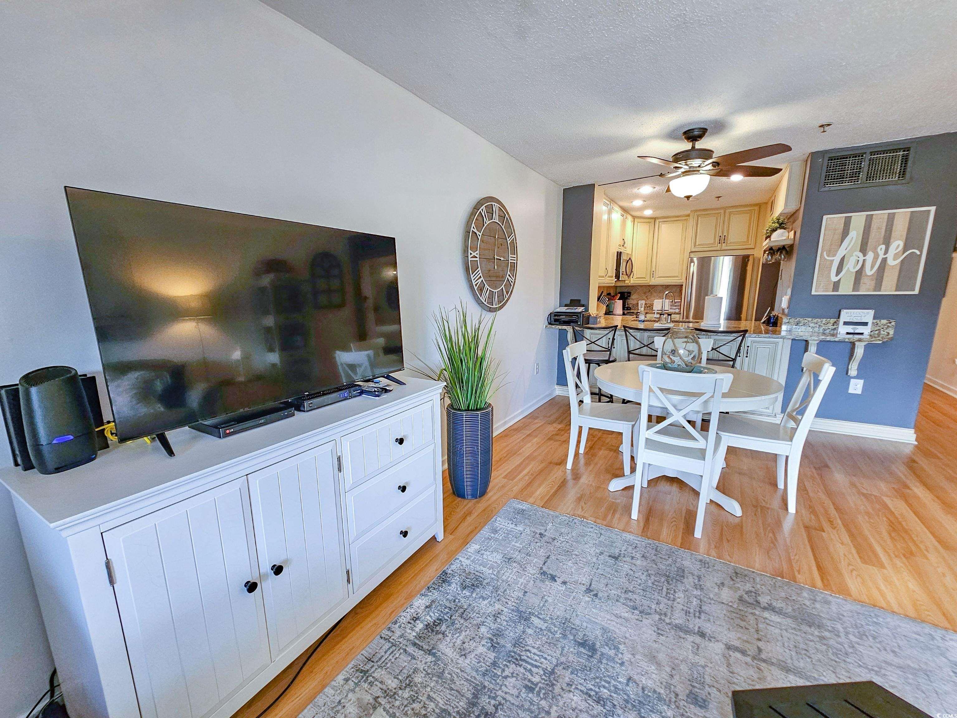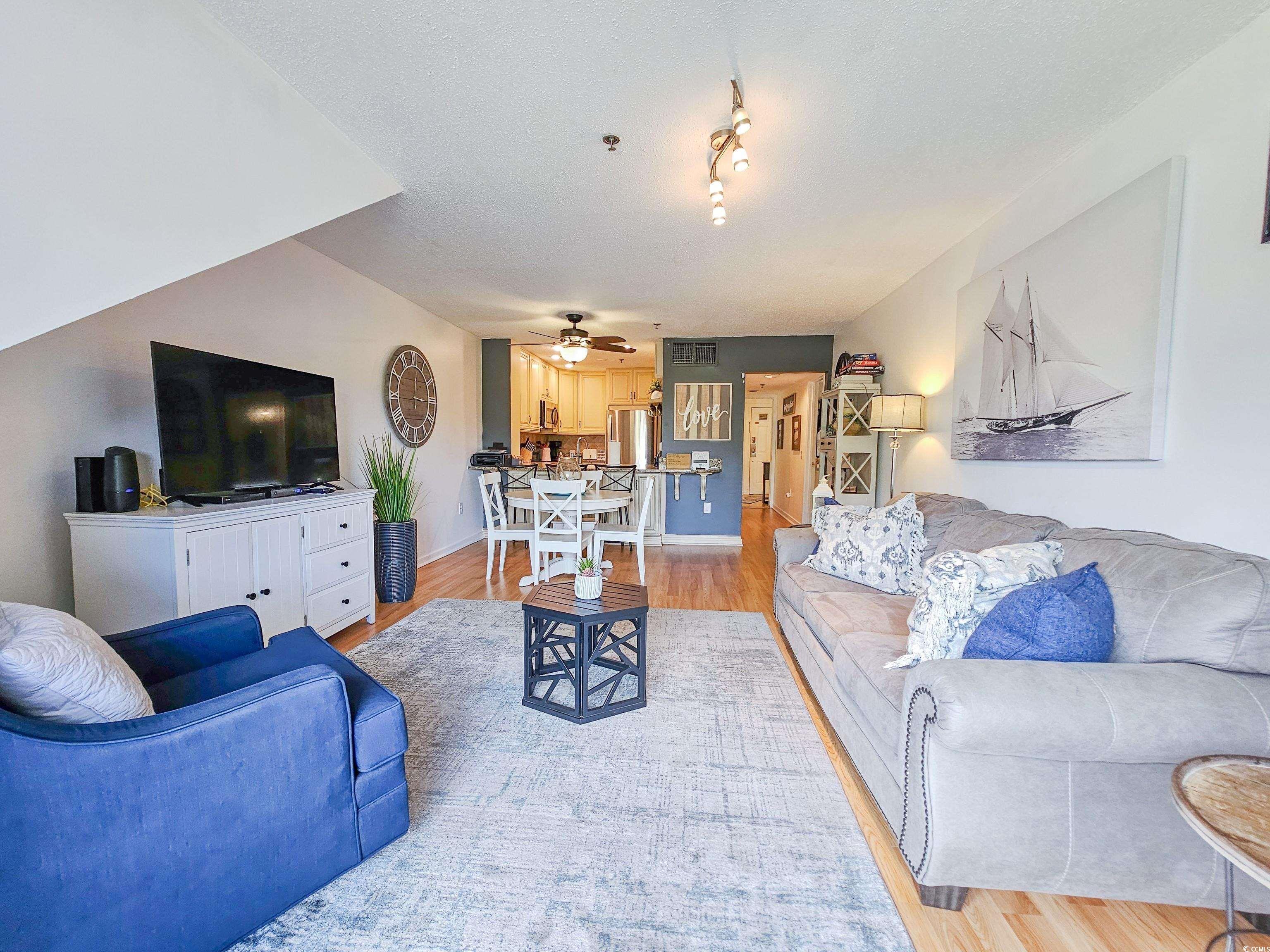 Enjoy stunning lake views from the deck and watch the swans go by! This beautifully furnished and updated two-bedroom, two-bath lodge has an open floor plan from the kitchen into the dining and living room - great for entertaining! The kitchen has custom cabinets, solid surface countertops, and stainless steel appliances. Tile flooring, large primary suite, ceiling fan, walk-in closet, and split bedroom plan. New HVAC, hot water heater and dishwasher in 2025. This community has a private pool overlooking the lake and is minutes from the beach. Located in the Kingston Resort, this 145-acre community has it all, an oceanfront hotel, multiple swimming pools, 1/2 mile of sandy beaches, a fitness center, tennis and pickleball courts, a putting green, an indoor pool, a gated community, 24-hour security and the list goes on. Close to everything Myrtle Beach has to offer. Great primary residence, second home or rental option. Some resort amenities are only available through the Hilton on-site rental program.
