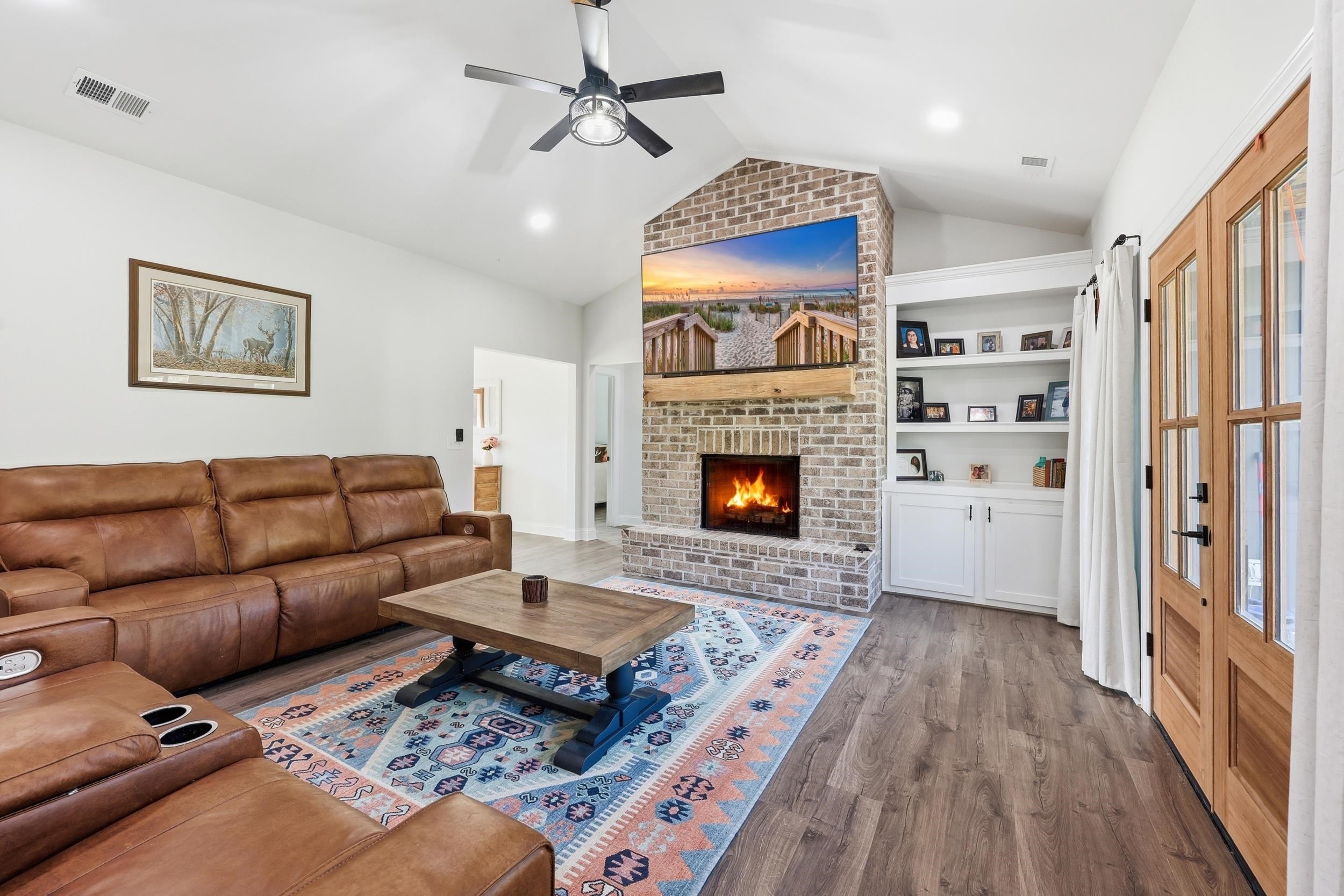 Welcome to 410 Miracle Court in Andrews, SC—an exceptional property set on 5.18 acres, offering a refined blend of modern comfort and peaceful country living.This beautifully designed 3-bedroom, 2.5-bathroom home features luxury vinyl plank flooring throughout, creating a seamless and sophisticated aesthetic. The kitchen sits at the center of the home and is complete with a large center island perfect for entertaining, gathering, and everyday living. The spacious living room is both inviting and elegant, highlighted by a cozy fireplace and double doors that open to the back porch—effortlessly blending indoor and outdoor living. The primary suite serves as a private retreat, featuring a luxurious en-suite bathroom with a walk-in shower, soaking tub, and a spacious walk-in closet. The split bedroom layout offers added privacy, with secondary bedrooms sharing a hall bathroom. The laundry room is spacious and practical making chores a breeze. Outside, the property continues to impress with a 40x30 shop equipped with two roll-up doors and lean-tos on each side—ideal for storage, hobbies, entertaining or a workshop setup. This property gives you the best of both worlds—room to spread out and enjoy the outdoors, while still staying convenient to everything you need. Schedule your private showing today.