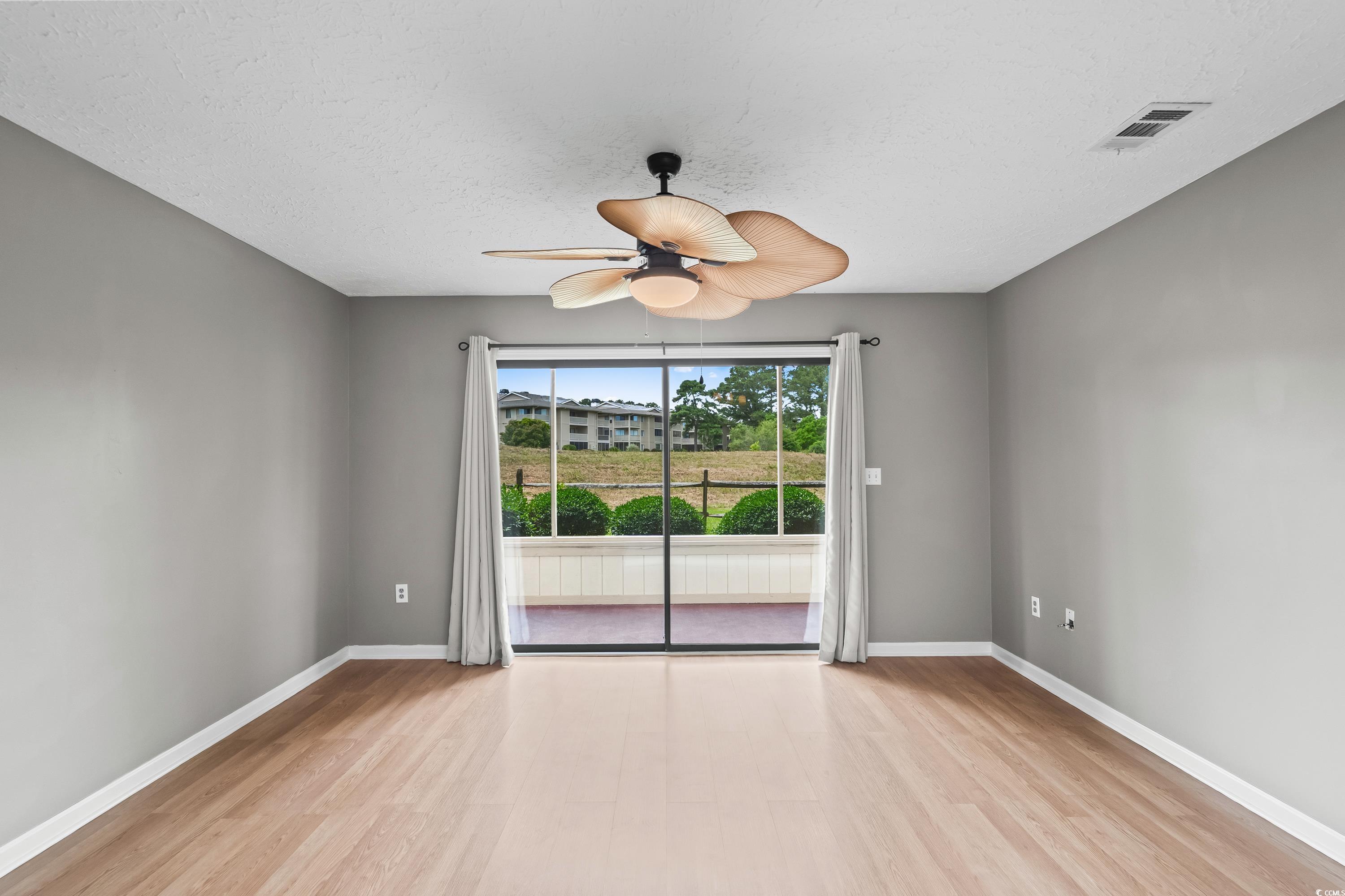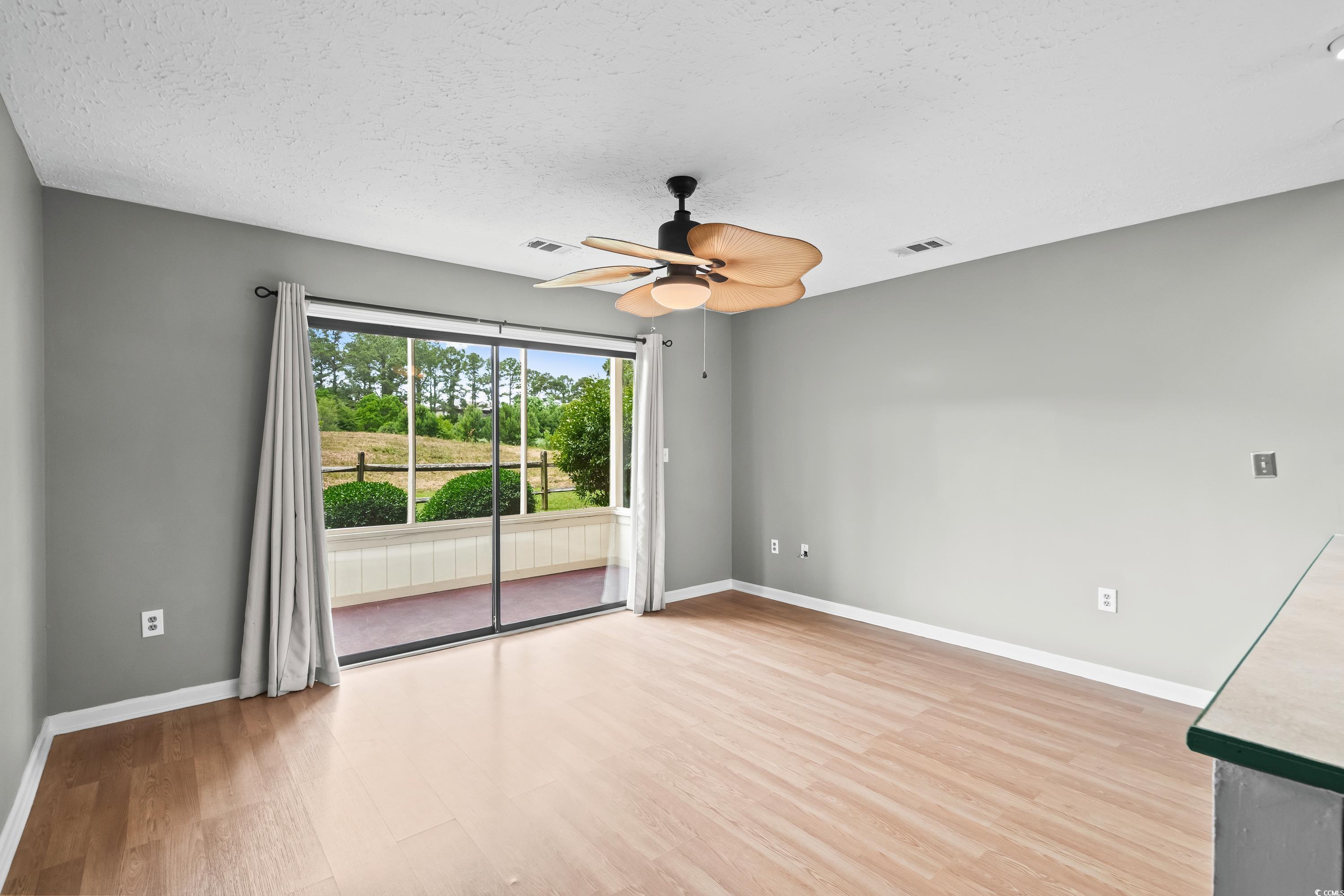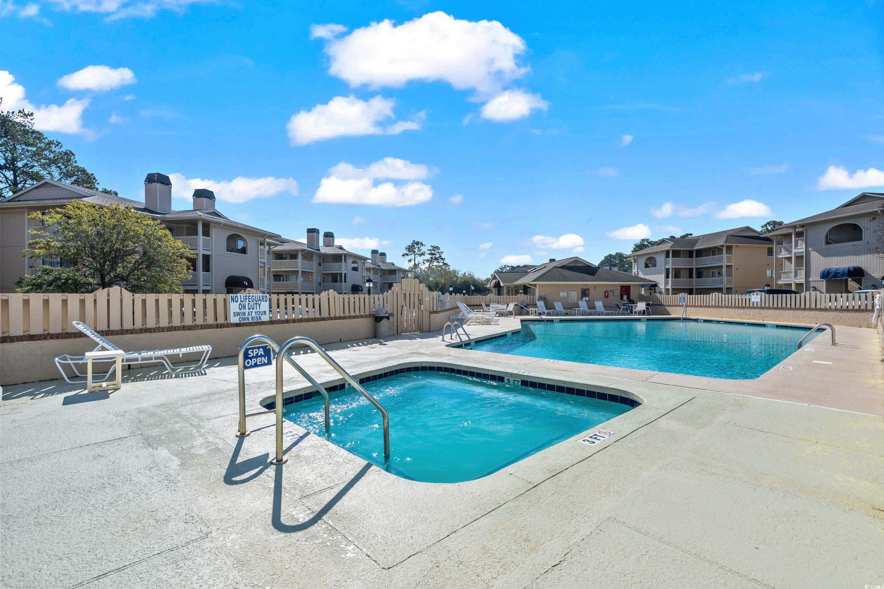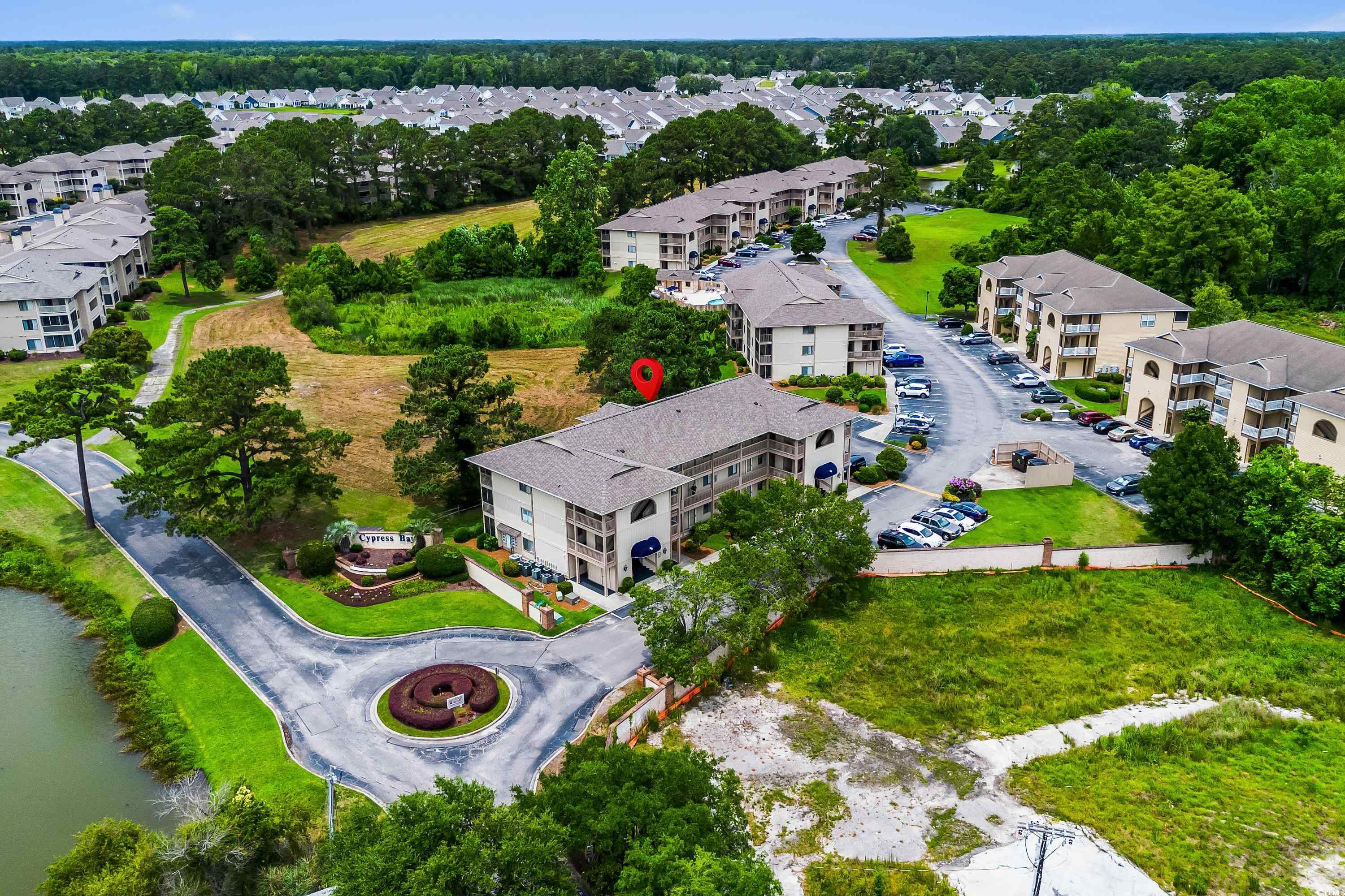 Welcome to this charming and updated 1-bedroom, 1-bathroom condo nestled in the highly sought-after Cypress Bay community in Little River. Situated on the desirable first floor, this unit offers both comfort and convenience with easy access—no stairs or elevators needed. Step inside to discover a thoughtfully designed layout featuring an open-concept living and dining area with sightlines to the kitchen and access to you back patio through the sliding doors. The galley style kitchen is equipped with a large peninsula that offers additional seating and prep space along with a pantry and plenty of cabinet space for all your things. Natural light fills the living space through sliding glass doors that lead to a private screened-in patio, perfect for morning coffee or relaxing evenings. From here, enjoy tranquil views of open green space and mature landscaping—an ideal spot for unwinding in privacy. The generously sized bedroom features ample closet space and a large window that brings in more natural light, while the full bathroom offers updated fixtures, a large vanity, and a combination tub/shower. This unit also includes a laundry area in the bathroom. Whether you're looking for a year-round residence, a beach retreat, or a low-maintenance investment property, this condo fits the bill. The Cypress Bay community is known for its well-maintained grounds and array of amenities, including outdoor pool, hot tub and tennis court. Located just minutes from the waterfront dining of Little River, world-class golf courses, North Myrtle Beach, and the Cherry Grove beach access, you’ll have everything you need just a short drive away. Enjoy beautifully landscaped surroundings, and the relaxed coastal lifestyle that comes with living in Cypress Bay. This move-in ready unit won’t last long—schedule your showing today! Buyer is responsible for verification.