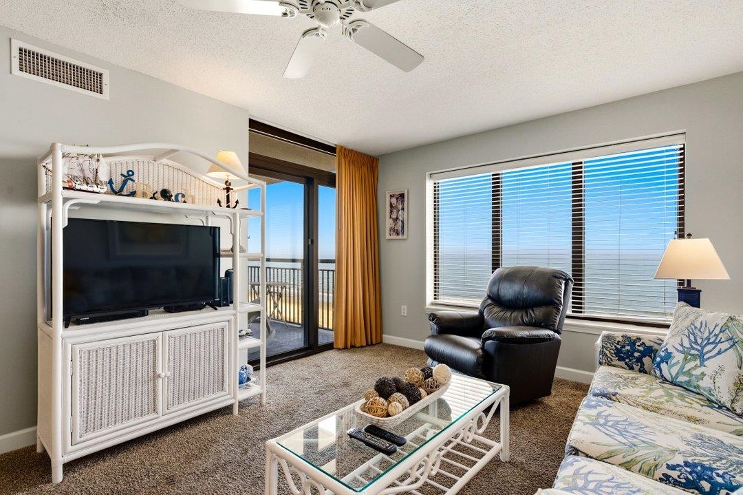Spectacular ocean views from this three-bedroom, three-bath corner condo in Beachwalk Villas in the Cherry Grove section of North Myrtle Beach. This corner floor plan is larger than the interior three-bedroom layouts and includes additional windows that provide expanded ocean and coastline views. These rarely come on the market. Ideal as a second home, vacation rental property, or even a primary residence. Nicely furnished and accessorized. The living room and primary bedroom both face the ocean, and the balcony off the bedroom is also accessible from the living room. The condo features a full kitchen and a washer/dryer. The first four floors of the building contain a parking garage, providing easy access while being protected from the elements. Owners and guests have access to a direct oceanfront beach club featuring indoor and outdoor pools, a hot tub, a fitness room, a game room, and a third-floor owners’ lounge. Beachwalk Villas is conveniently located near Ocean Drive, Barefoot Landing, Tanger Outlets, and the wide range of shopping, dining, and attractions in North Myrtle Beach. The monthly HOA fee covers water/sewer, building insurance, cable, and internet. All information is deemed accurate, but buyers and their agents are responsible for verifying all details. All measurements, data, and square footage are deemed reliable but are not guaranteed.
