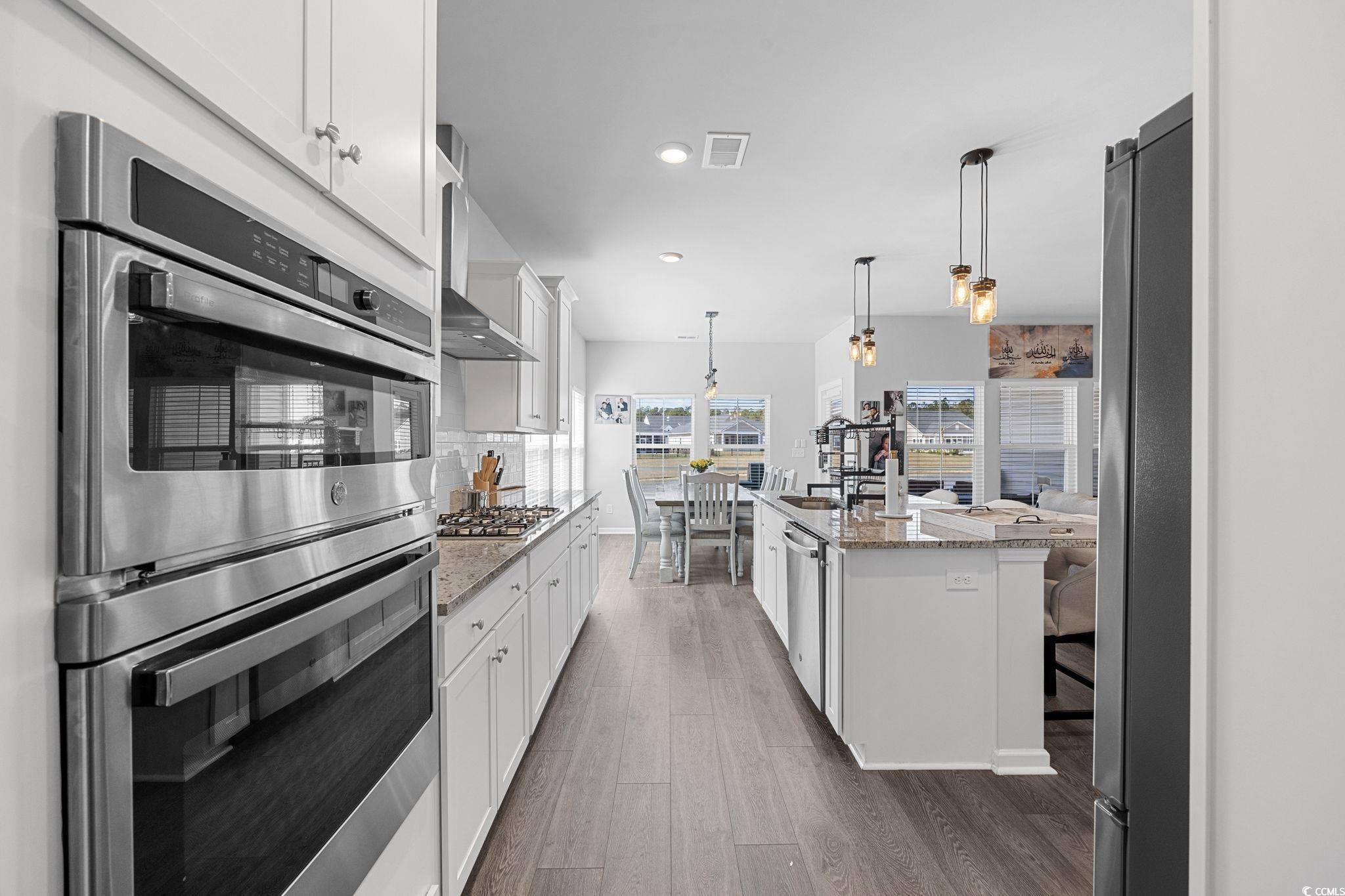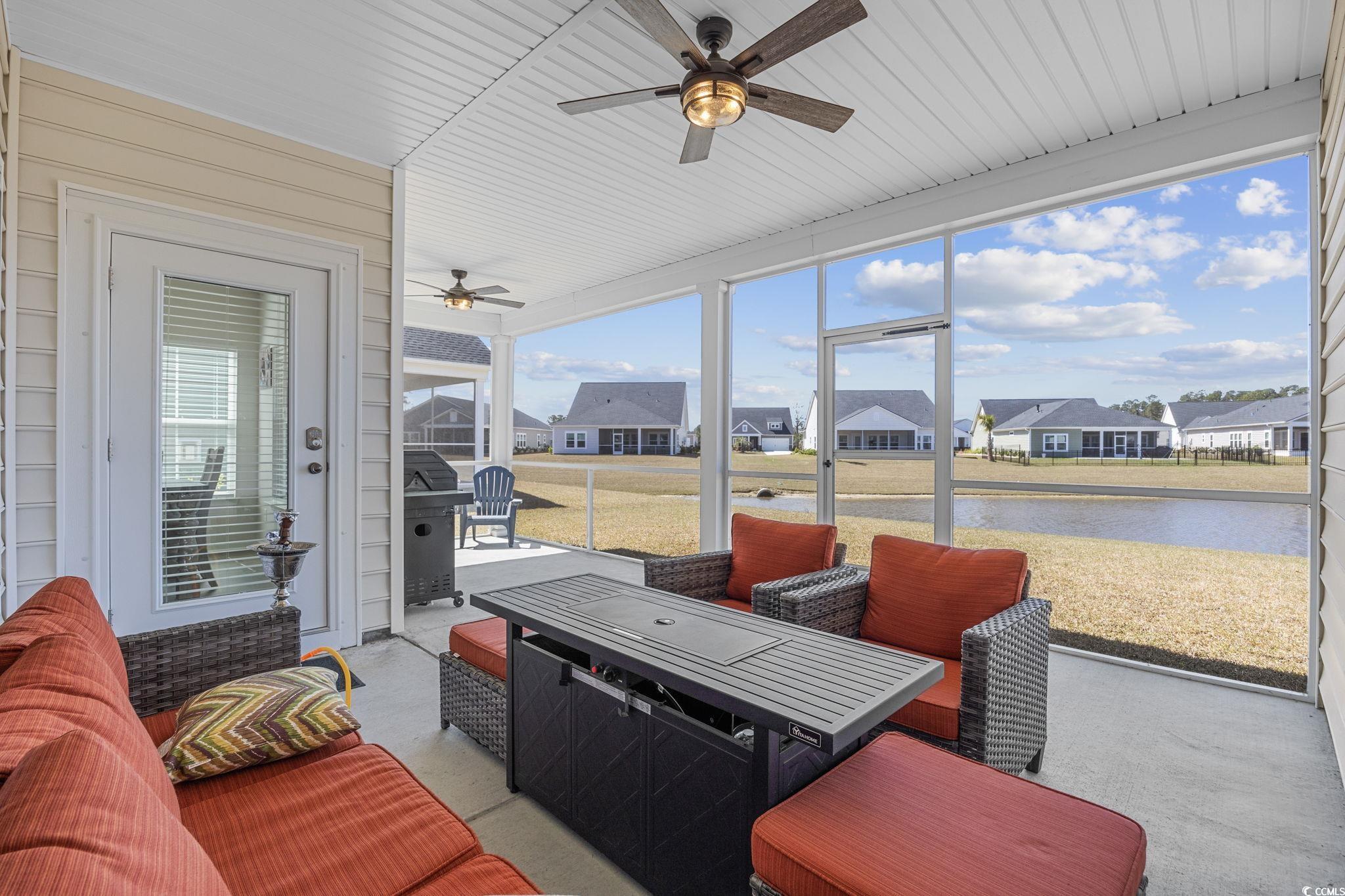 Experience refined single-level living in this beautifully upgraded home located in the desirable The Isles at Bella Vita community of Myrtle Beach, offering peaceful pond views and an oversized screened-in back porch ideal for everyday relaxation or entertaining. Built with the popular Collins floor plan, this thoughtfully designed home features 3 bedrooms, 2 bathrooms, and a dedicated home office, all within a bright open-concept layout. The spacious owner’s suite includes a walk-in closet and a well-appointed bathroom with tile flooring, dual vanities, elevated cabinetry, and a fully tiled 5’ zero-entry walk-in shower with seamless glass enclosure. The upgraded kitchen package is a true highlight, featuring white cabinetry, granite countertops, a 3×6 subway tile backsplash, built-in wall oven and microwave combo, gas cooktop, upgraded exhaust hood, and stainless-steel appliances. Shaw laminate flooring flows throughout the main living areas, and the living room is accented by a gas fireplace, adding both comfort and character. This energy-efficient home features no carpet throughout, enhancing durability and ease of maintenance. Additional upgrades include LED recessed lighting, Moen fixtures, elongated toilets with soft-close lids, modern window treatments, and a Rinnai tankless water heater, delivering modern comfort and efficiency. Large windows provide abundant natural light, creating a bright and welcoming atmosphere. Located in the Carolina Forest school district, this home offers convenient access to shopping, dining, healthcare, Market Common, Myrtle Beach International Airport, and the beach. The natural gas community includes a community swimming pool, with HOA services covering trash pickup and common-area maintenance, supporting a low-maintenance lifestyle. Offering a rare combination of quality construction, energy efficiency, upgraded finishes, and a prime location, 4108 Da Vinci Dr presents an excellent opportunity for comfortable coastal living in Myrtle Beach. Schedule your private showing today and see firsthand what this exceptional home has to offer. ***Property under surveillance ***