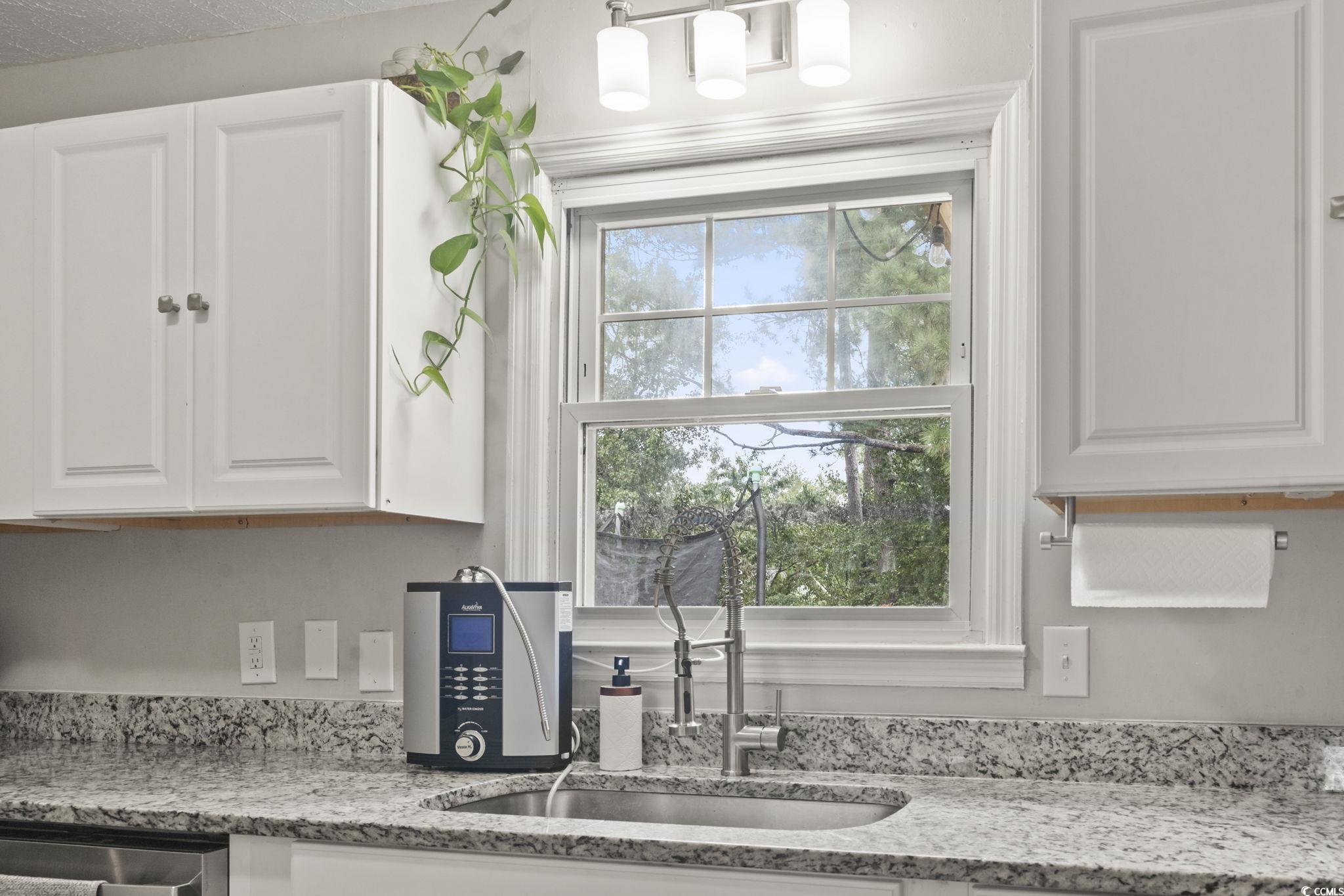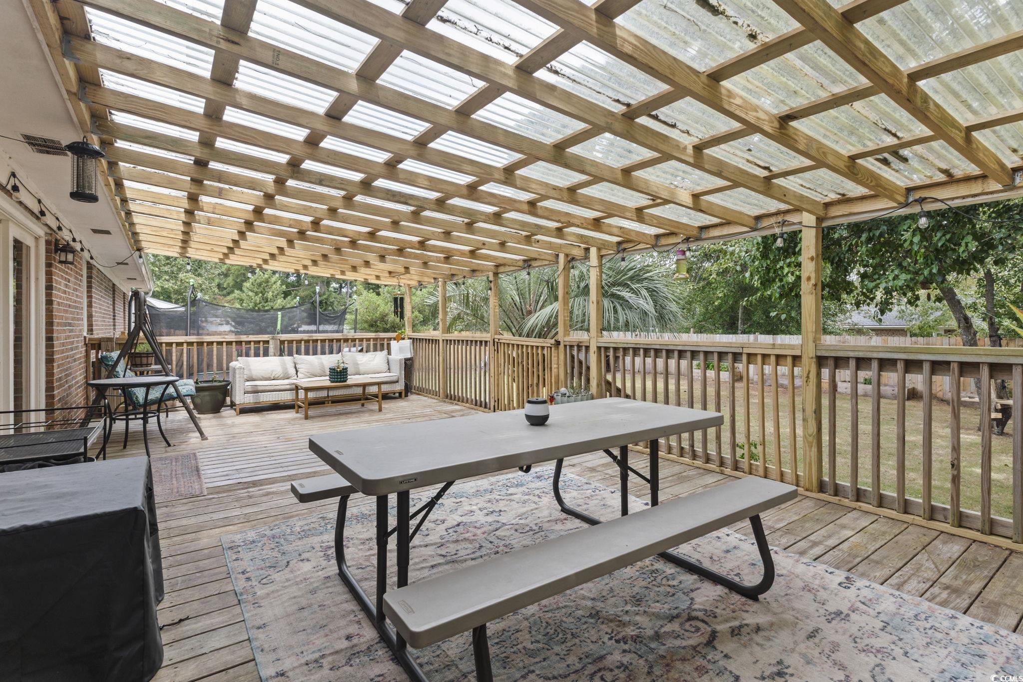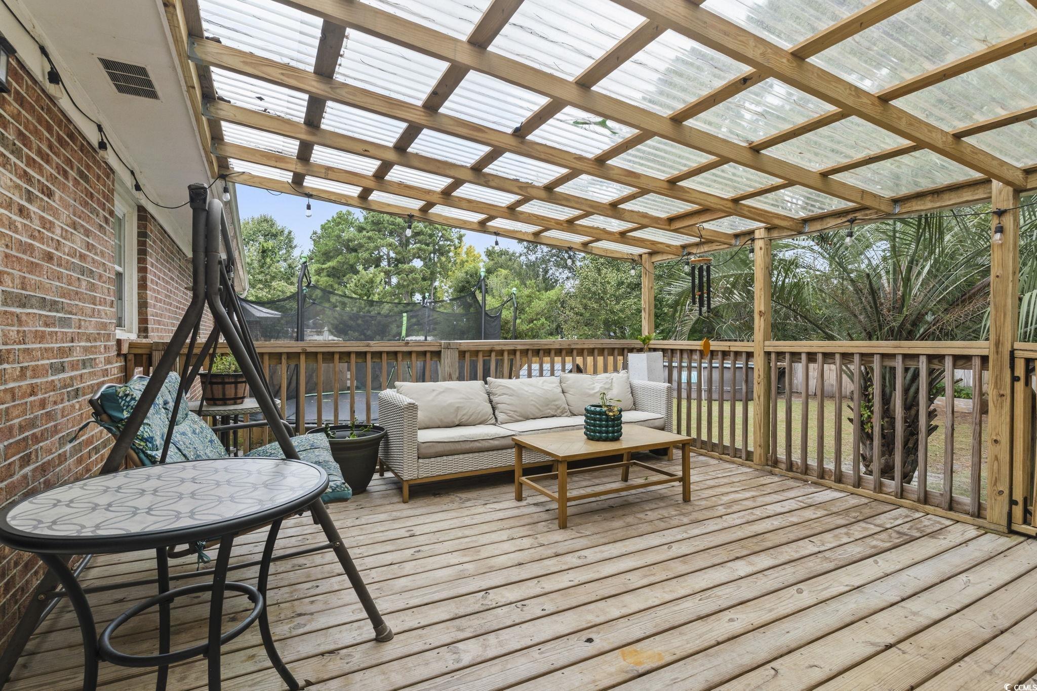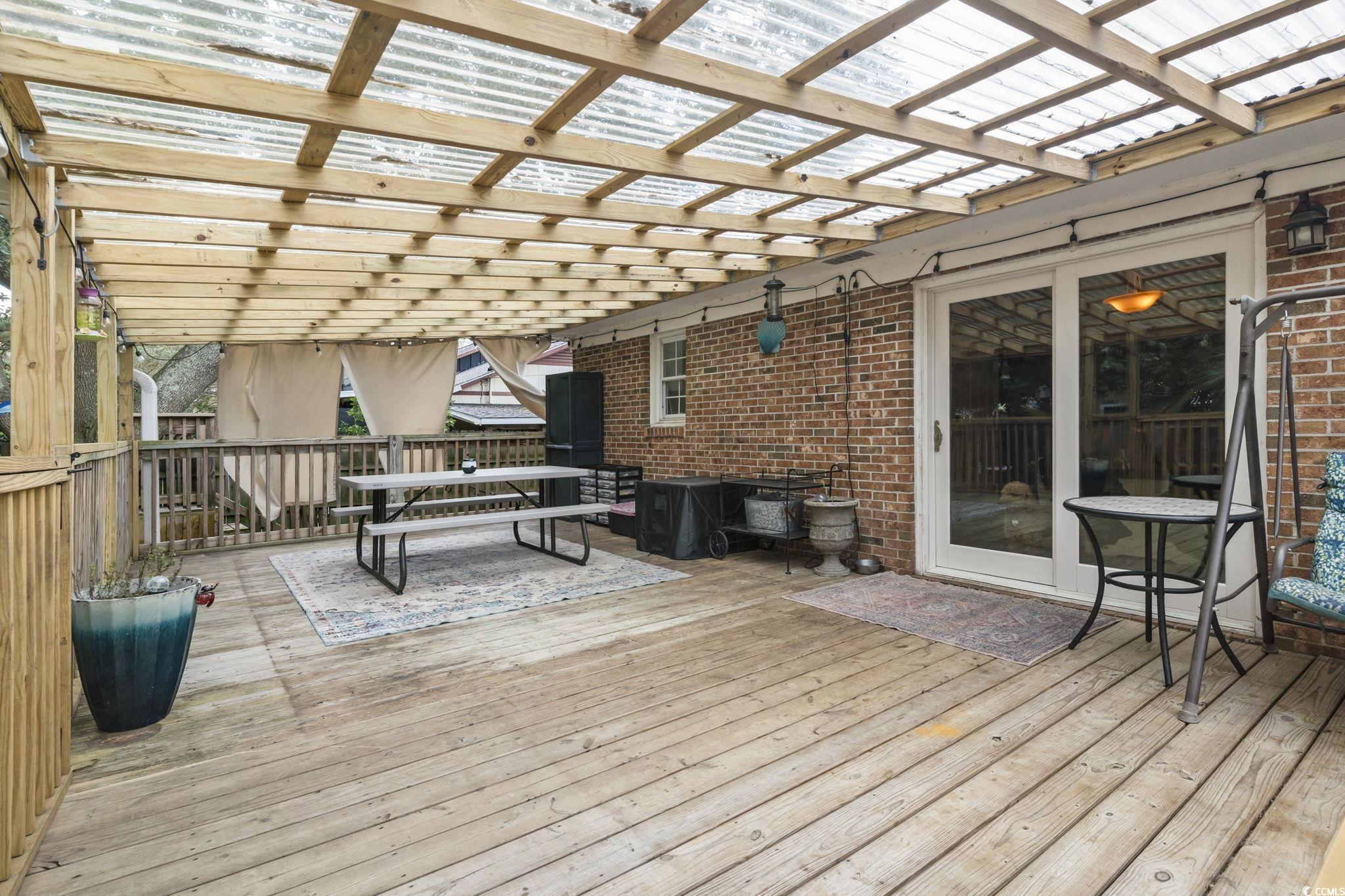 Fall in love with this updated 3 bedroom, 2 bathroom ranch home in the Green Acres community of Little River with NO HOA!!! This move-in ready home offers a bright and open floor plan with many stylish finishes throughout. The updated kitchen is complete with granite countertops, stainless steel appliances, and upgraded cabinetry. The spacious living area includes a cozy fireplace, while both bathrooms have been refreshed with modern touches. Enjoy outdoor living on the large covered deck overlooking your private, fenced in backyard, perfect for entertaining, pets, or just relaxing in your own space. Situated on a .29-acre lot, this home provides plenty of space without excessive upkeep. Additional highlights include a new HVAC unit and ductwork in 2024, ceiling fans, ample storage and an oversized driveway. Conveniently located just minutes from shopping, dining, golf, and the beaches of North Myrtle Beach. Zoned for highly regarded North Myrtle Beach schools. Don't miss this updated home with modern upgrades and NO HOA restrictions!