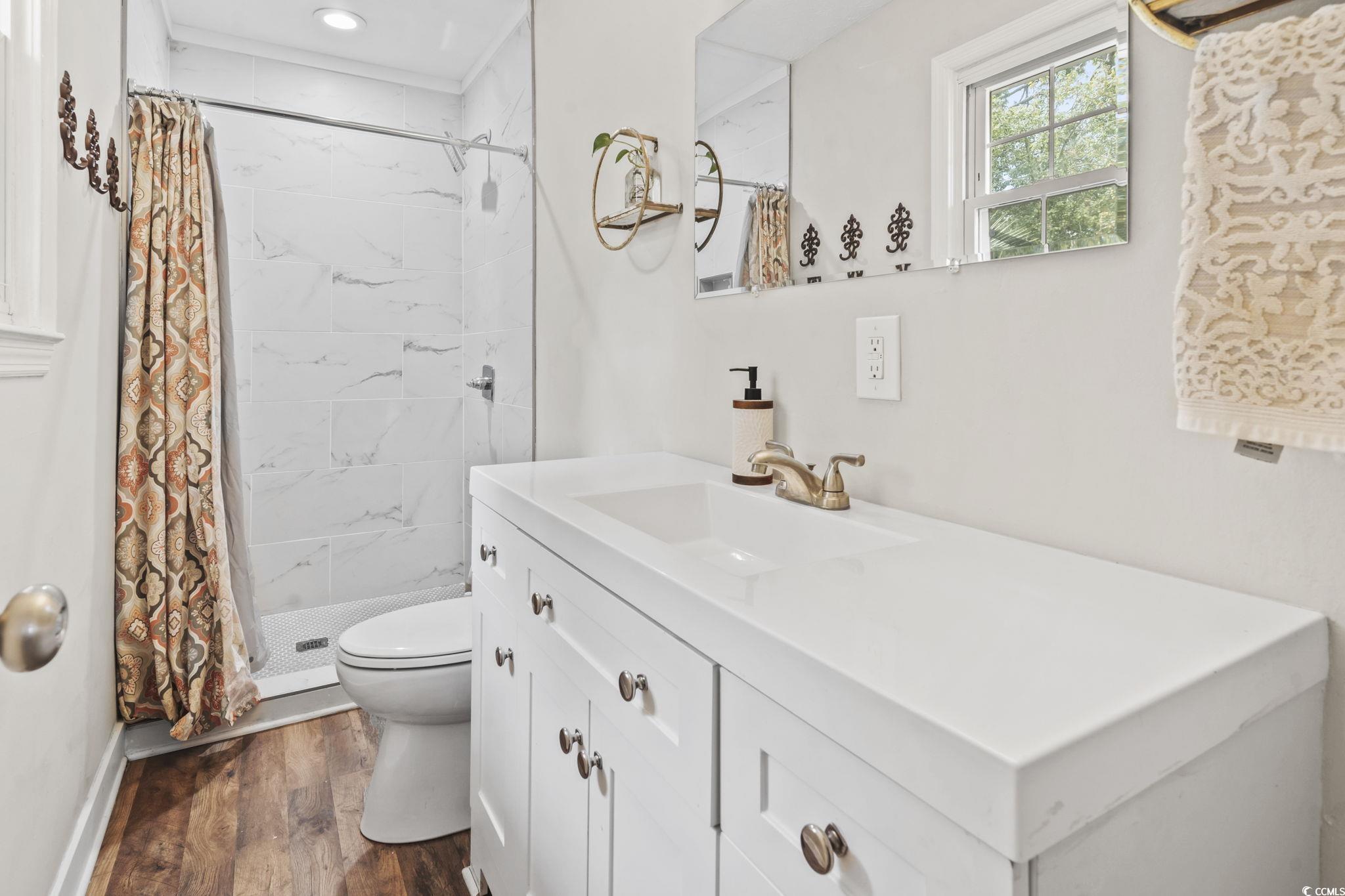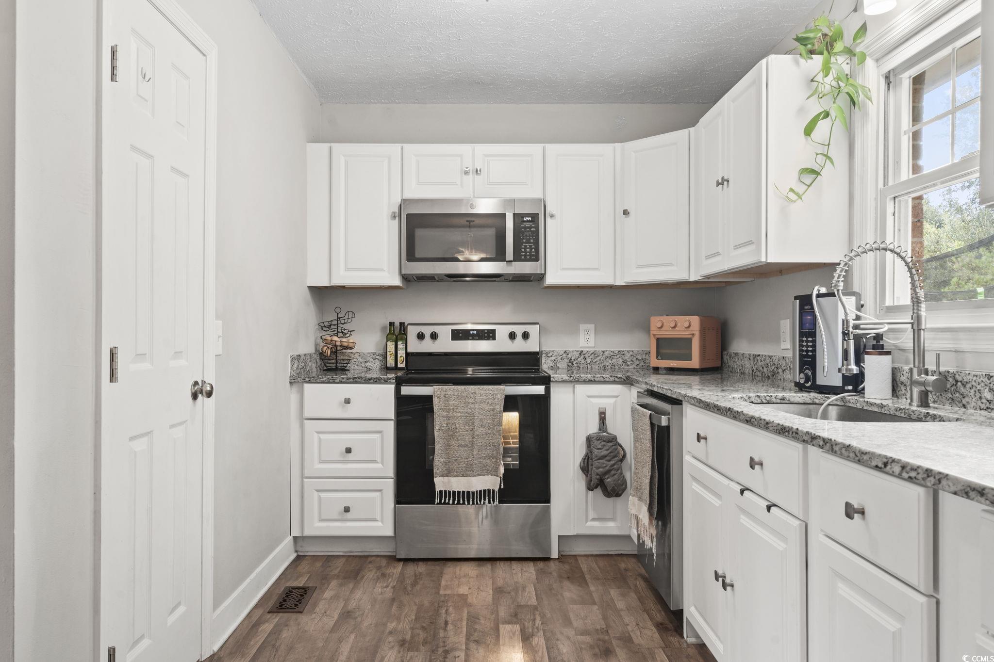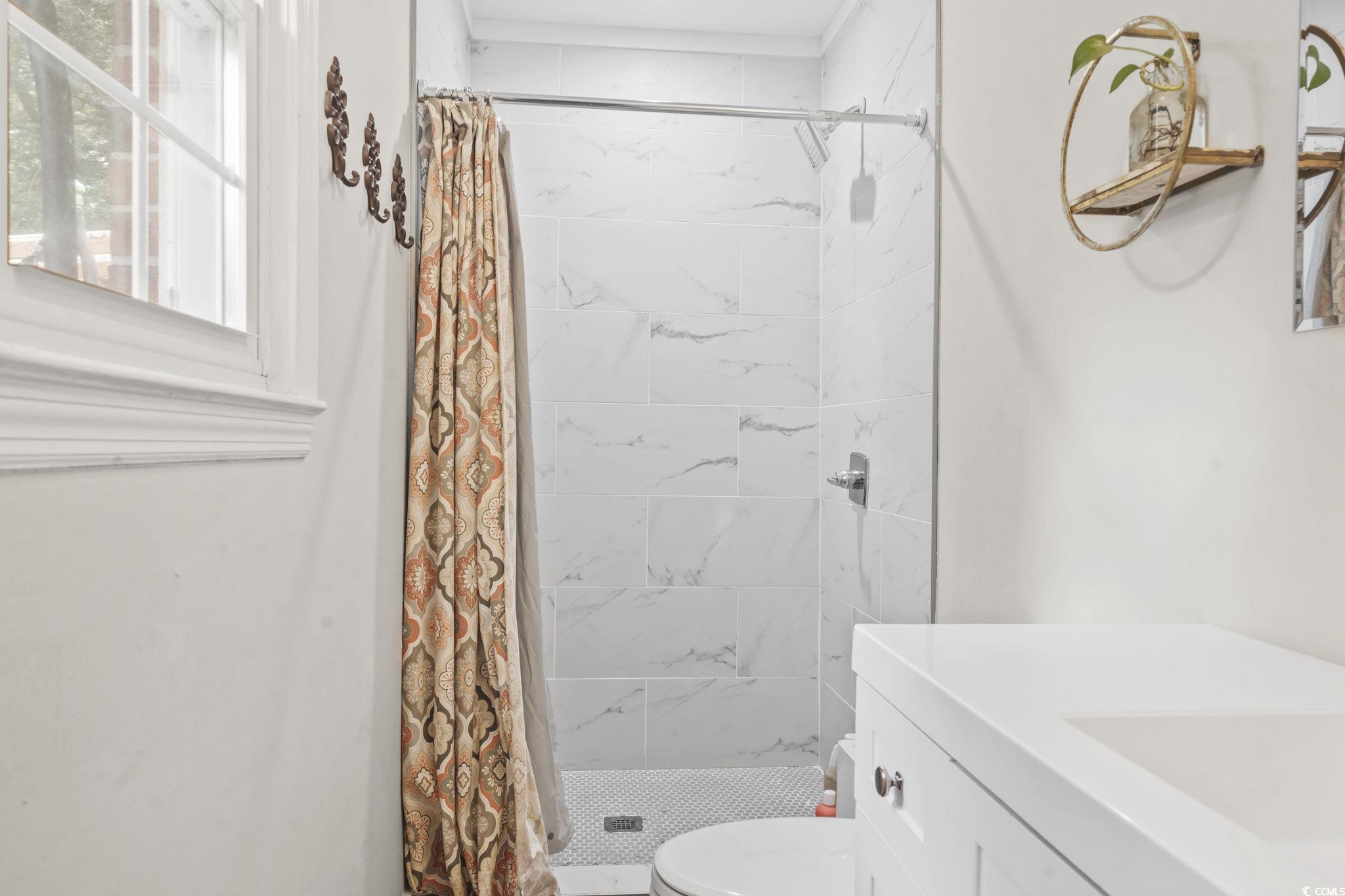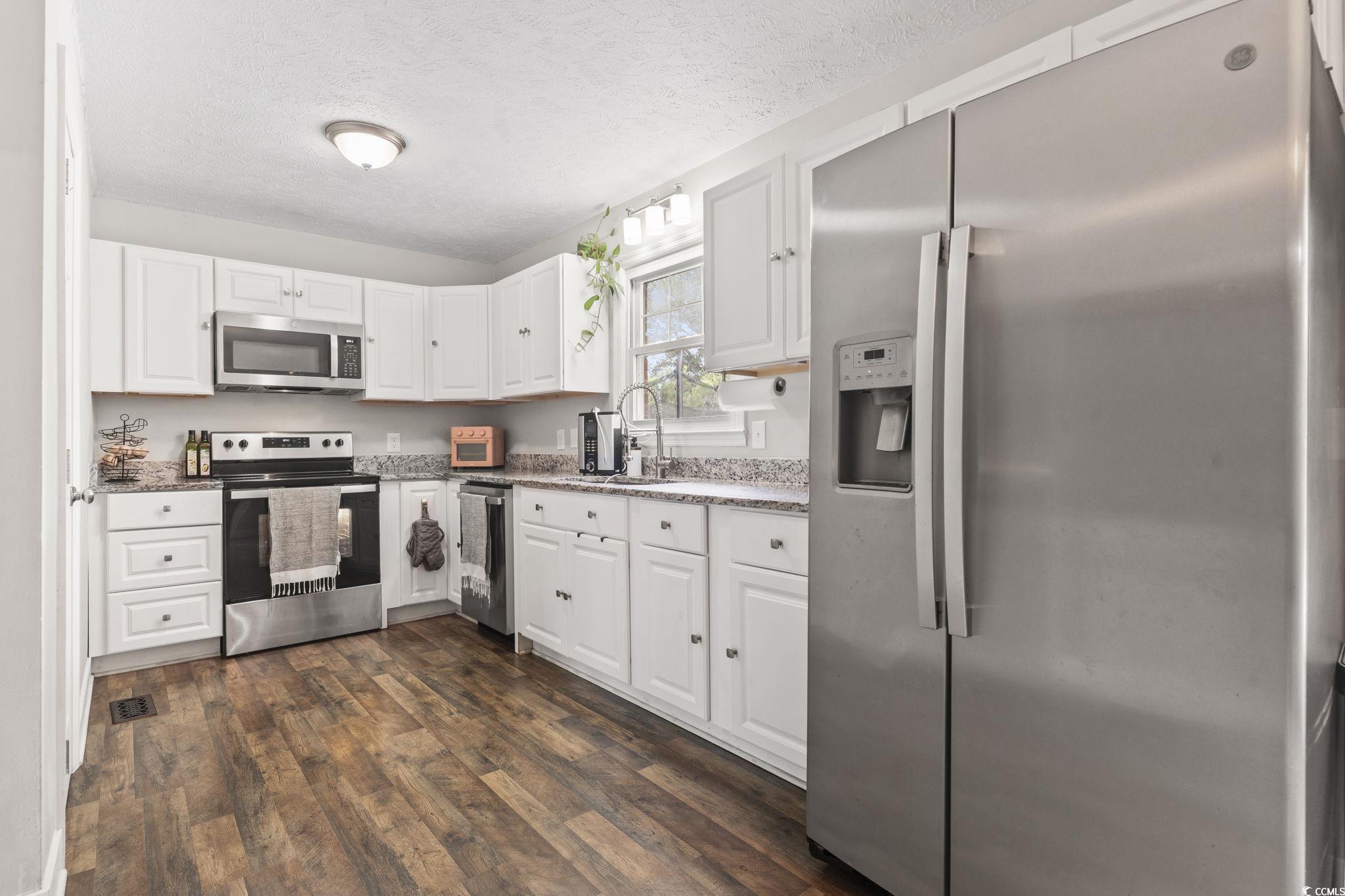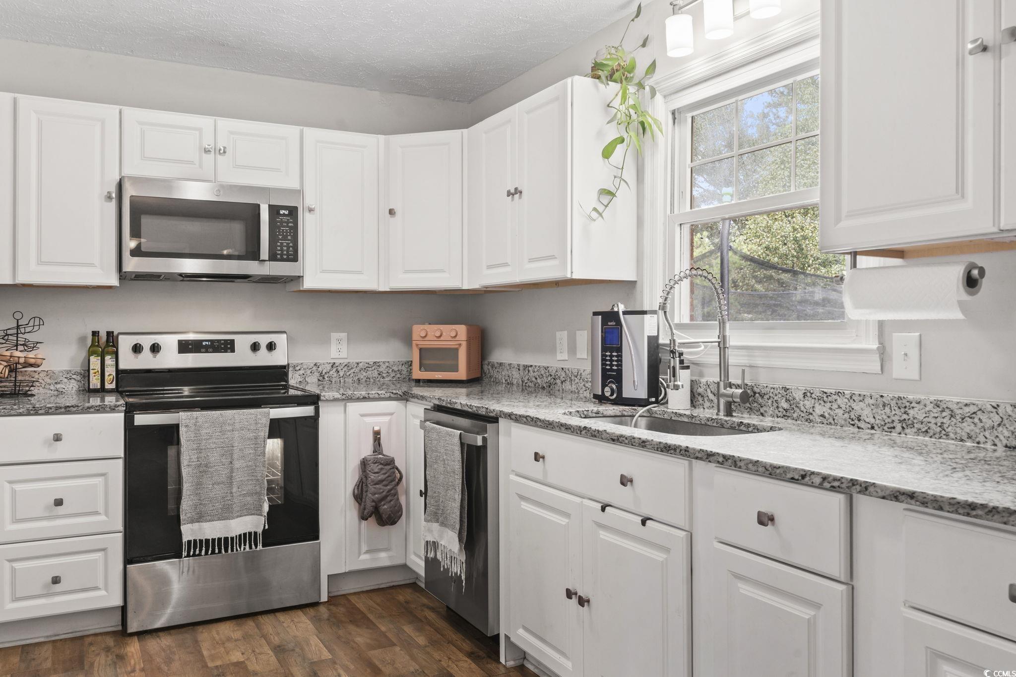 Fall in love with this updated 3 bedroom, 2 bathroom ranch home in the Green Acres community of Little River with NO HOA!!! This move-in ready home offers a bright and open floor plan with many stylish finishes throughout. The updated kitchen is complete with granite countertops, stainless steel appliances, and upgraded cabinetry. The spacious living area includes a cozy fireplace, while both bathrooms have been refreshed with modern touches. Enjoy outdoor living on the large covered deck overlooking your private, fenced in backyard, perfect for entertaining, pets, or just relaxing in your own space. Situated on a .29-acre lot, this home provides plenty of space without excessive upkeep. Additional highlights include a new HVAC unit and ductwork in 2024, ceiling fans, ample storage and an oversized driveway. Conveniently located just minutes from shopping, dining, golf, and the beaches of North Myrtle Beach. Zoned for highly regarded North Myrtle Beach schools. Don't miss this updated home with modern upgrades and NO HOA restrictions!