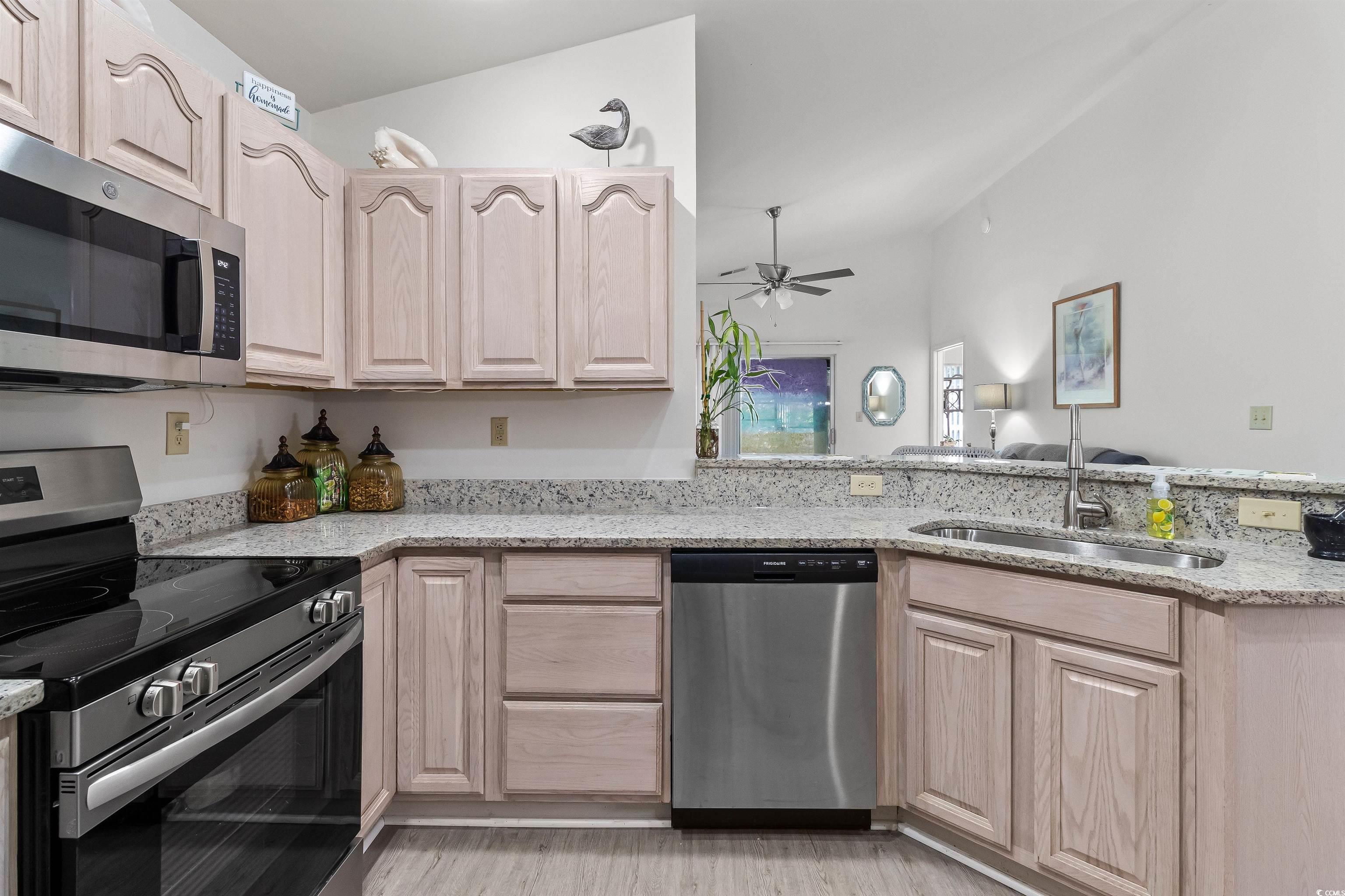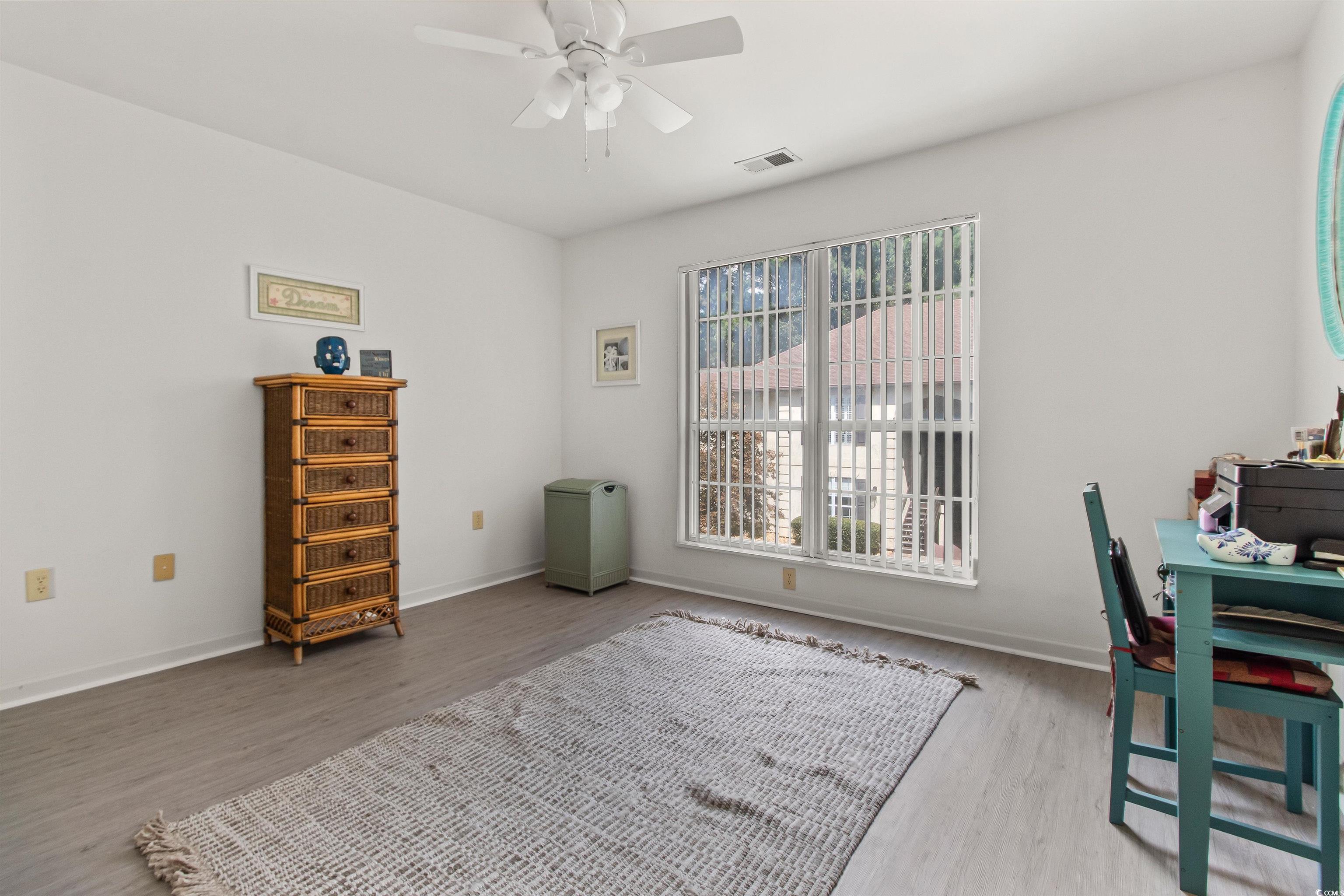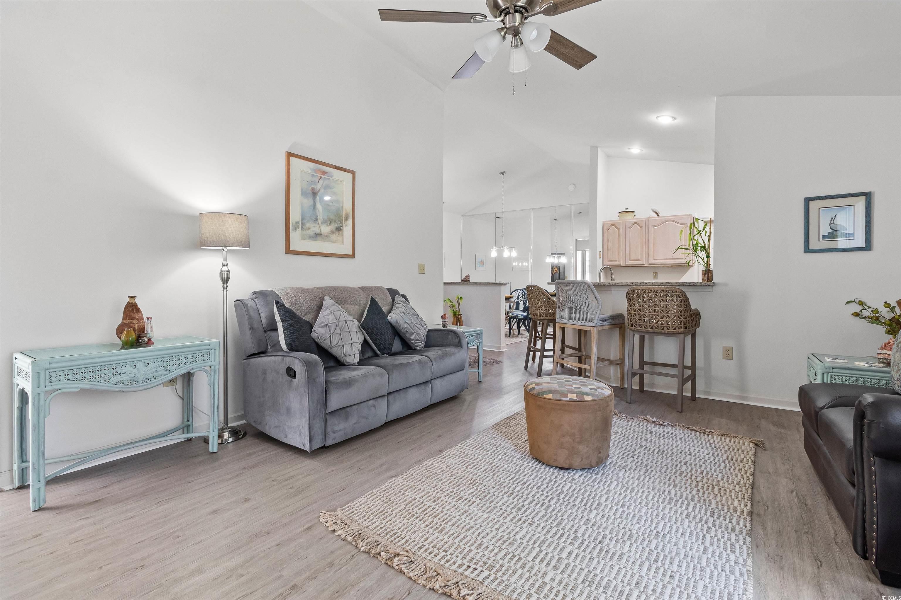 Beautiful fully furnished 2-Bedroom, 2-Bath, 2nd-floor condo with a 1-car garage, situated in the prestigious Pipers Glen complex within the gated Prestwick Country Club community. Offering an expansive floor plan, LVP flooring throughout the entire condo, new lighting and ceiling fans just installed. The high cathedral ceilings and open living space give it a feel of a home and not a condo. Spacious Master Suite with a large ensuite bathroom, jetted tub, walk-in shower, and a generous walk-in closet. This bright airy kitchen has got brand new granite counter-tops along with new stainless-steel appliances that make this kitchen come to life! Open spacious living room allows plenty of room for guests. Step into the screened-in back porch with E-Breeze windows to enjoy panoramic views of the golf course, providing both a peaceful retreat and an ideal spot for entertaining. And your own 1 car garage! The condo’s location is in a desirable, secure neighborhood with 24/7 security guards ensures peace of mind and privacy. As a resident, you’ll have access to a variety of amenities, including two pools, 14 clay tennis courts, 2 hard surface courts, and the renowned Prestwick Golf Course, one of the best on the Grand Strand. Whether you’re a golfer, tennis/pickleball enthusiast, or simply enjoy the outdoors, there’s something for everyone. Conveniently located just minutes from the Market Common Area’s shopping, dining, and entertainment, and only 10 minutes from Myrtle Beach International Airport, and a short trip to the beach on a golf cart, this condo offers both a retreat and easy access to all the amenities of the area.