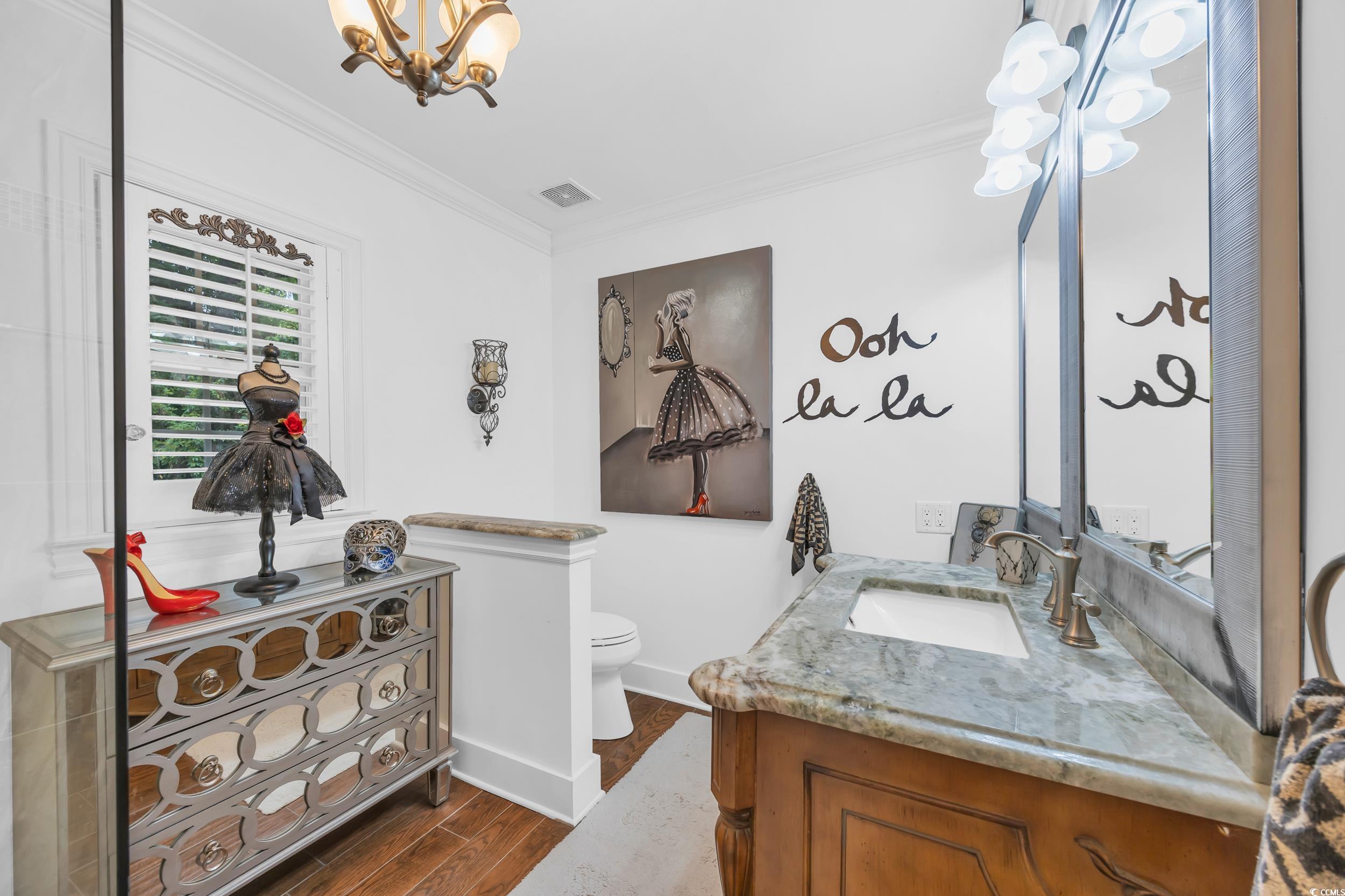 Price Improvement! Discover convenience, comfort, and location with this beautifully maintained home located within the highly desirable Golden Mile of Myrtle Beach. Perfectly situated amongst mature oak trees, 412 43rd Avenue North offers both peace and serenity all while being within minutes of everything. Just a short walk or golf cart ride down to beach access, you will surely fall in love with this prime location. Upon pulling into the spacious driveway, you will be greeted by a charming and inviting front entrance. With a beautiful stone walkway, mature landscaping, abundance of outdoor entertaining with an expansive courtyard, this home is ideal for a primary residence or the perfect location for a second home. Not only does this home have location and convenience, it also offers a FULL in law suite or guest apartment making this truly a must see! Offering a traditional layout, this home has a formal living room with a built in fireplace, a formal dining room, generously sized kitchen and breakfast nook, and a Carolina Room for year-around entertaining. With so many options, character, and charm this home is longing for new memories to be made. The main home offers 3 bedrooms along with 2 full baths making this an ideal layout for all. The updated primary suite has a walk-in glass shower, vanity for prep space, and a spacious walk-in closet. On the other end of the home, the in law suite/guest apartment offers a full kitchen, a private bedroom, and 1.5 bathrooms. With so much potential and possibilities to be made, do not miss this opportunity to live in one of the highest sought out areas of Myrtle Beach! Perfect for anyone, this home is ideally positioned to enjoy summers by the South Carolina Coast. All measurements are approximate and not guaranteed. Buyer is responsible for verification. Check out the virtual 3-D tour!