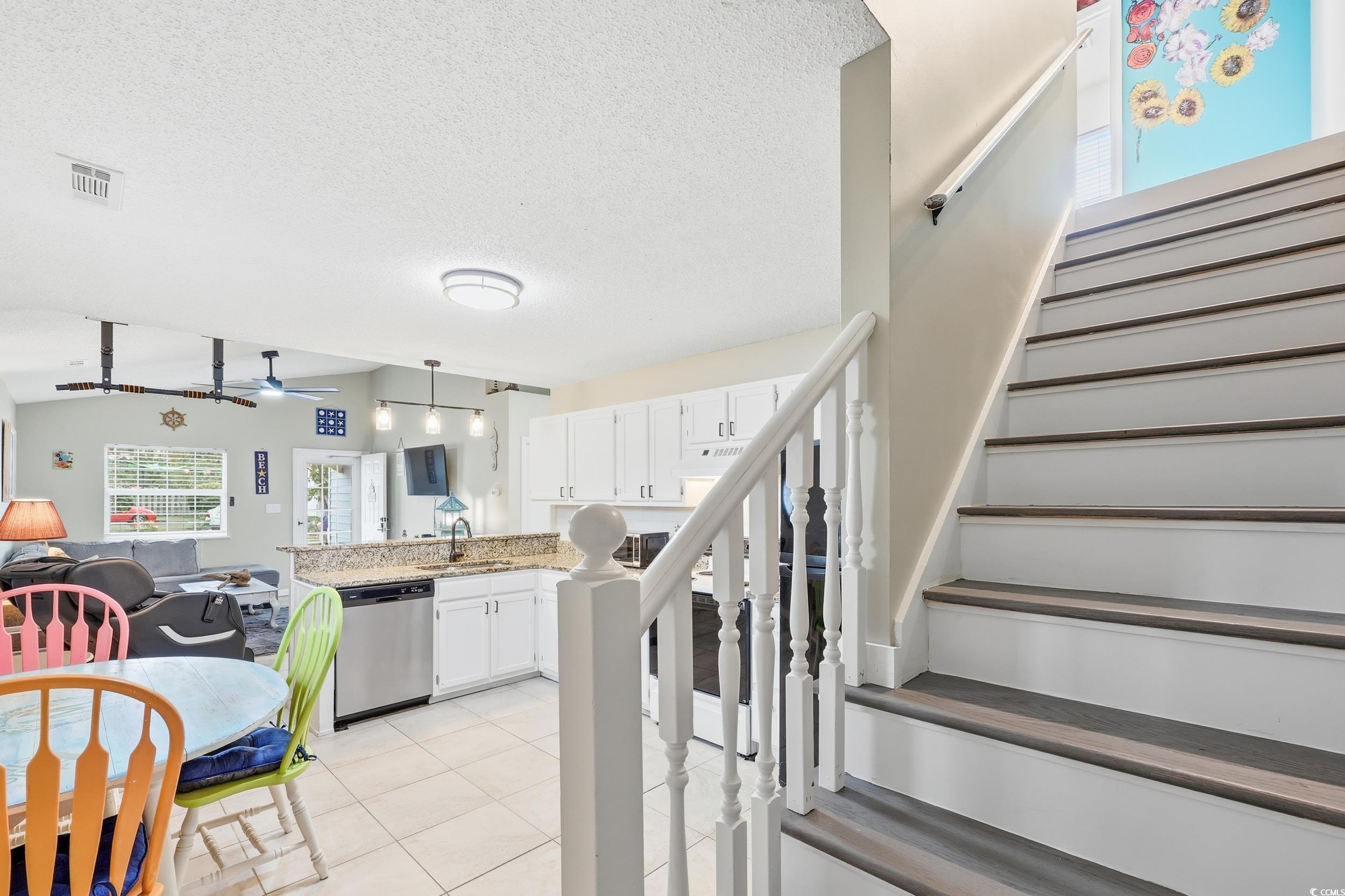 Beautifully updated and move-in ready! Located in the charming gated community of Lyons Cove in the heart of Myrtle Beach, this 2-bedroom, 2-bathroom home is less than two miles from the beach and just across the street from Broadway at the Beach. This home is fully furnished with brand-new furniture and has been recently updated throughout. Updates include fresh paint, new fixtures, and updated flooring in both bedrooms and the stairwell. The kitchen cabinets have been freshly painted, and the upstairs bathroom has been completely redone. The garage features a new countertop for the laundry area, new washer and dryer, built-in cabinets, plus a new garage door and opener. Enjoy outdoor living on the extended front porch with custom woodwork, and take advantage of the utility shed for additional storage. The HOA handles landscaping, pressure washing, and exterior maintenance, allowing you to enjoy a truly low-maintenance coastal lifestyle. Whether you're searching for a primary residence or vacation getaway, this beautifully maintained home offers the perfect blend of comfort, convenience, and coastal charm.