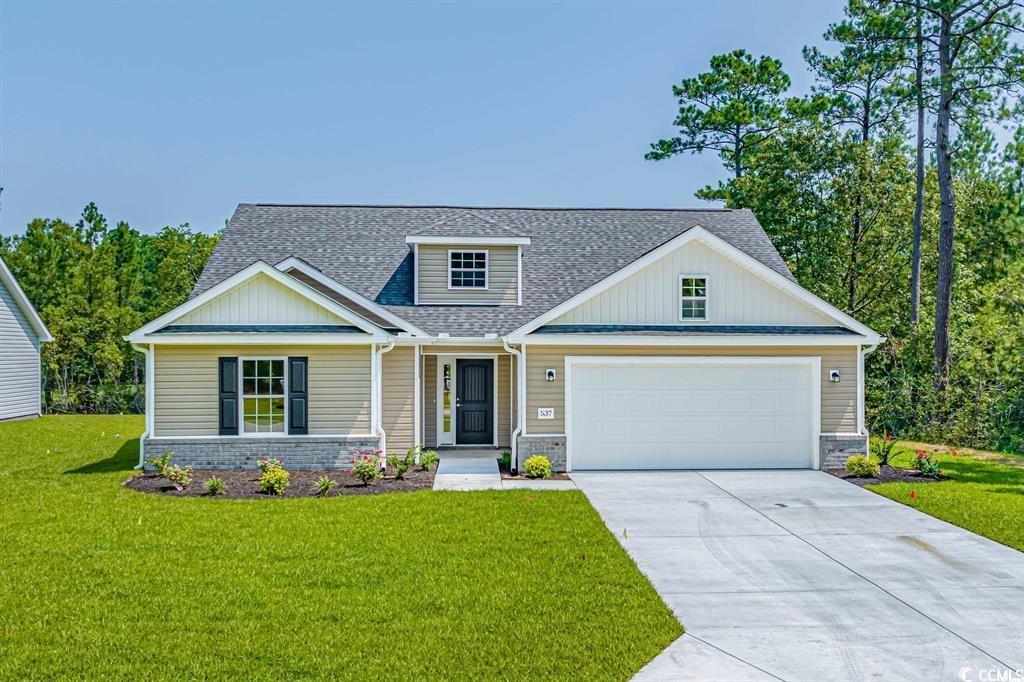 Fantastic Opportunity to Own the Popular Pelican A Floor Plan in Carolina Shores! This beautifully designed 3-bedroom, 2-bath home sits on an oversized lot and offers a well-thought-out split-bedroom layout with stunning attention to detail throughout. From the moment you step inside, you'll notice the upgraded features—coffered ceilings, extensive trim work, and an open-concept living space perfect for both everyday living and entertaining. The gourmet kitchen is a showstopper, featuring 42-inch white cabinetry, a spacious center island, and a walk-in pantry. Adjacent is a designated laundry room with direct access to the 2-car garage, which includes attic storage for added convenience. The primary suite is tucked away at the back of the home for privacy and showcases tray ceilings, a walk-in closet, and a luxurious en-suite bathroom complete with a custom tile shower and dual vanities. Two additional bedrooms are located at the front of the home, sharing a full guest bathroom and multiple storage closets. Step outside to enjoy the screened-in back patio—a perfect spot to relax and enjoy the beautiful Carolina weather year-round. Located right on the NC/SC border, Carolina Shores gives you easy access to both Calabash and Little River, offering a variety of local restaurants, pristine beaches, and championship golf courses just minutes away. Don't miss your chance—ask about our lot and home packages today!