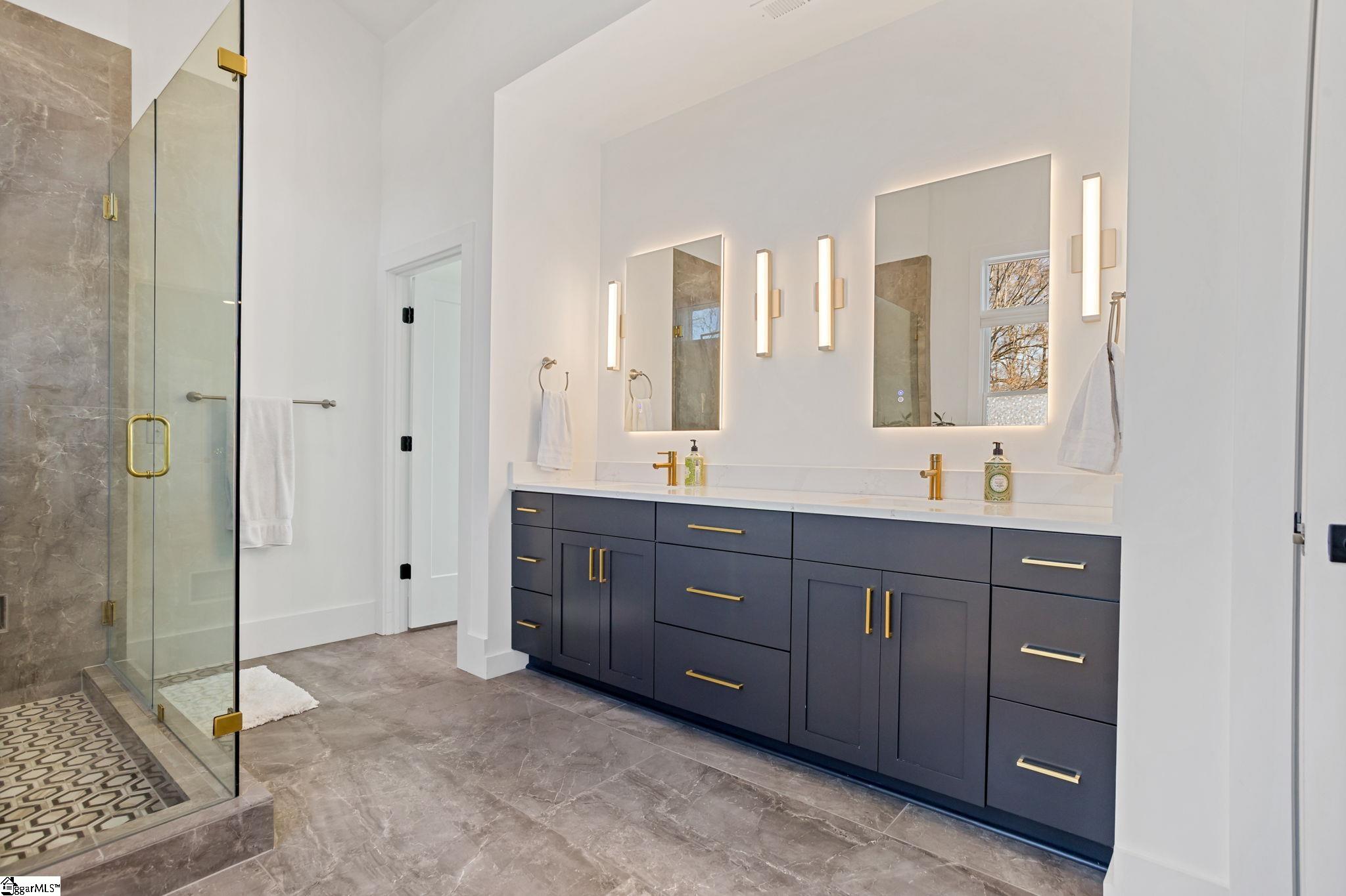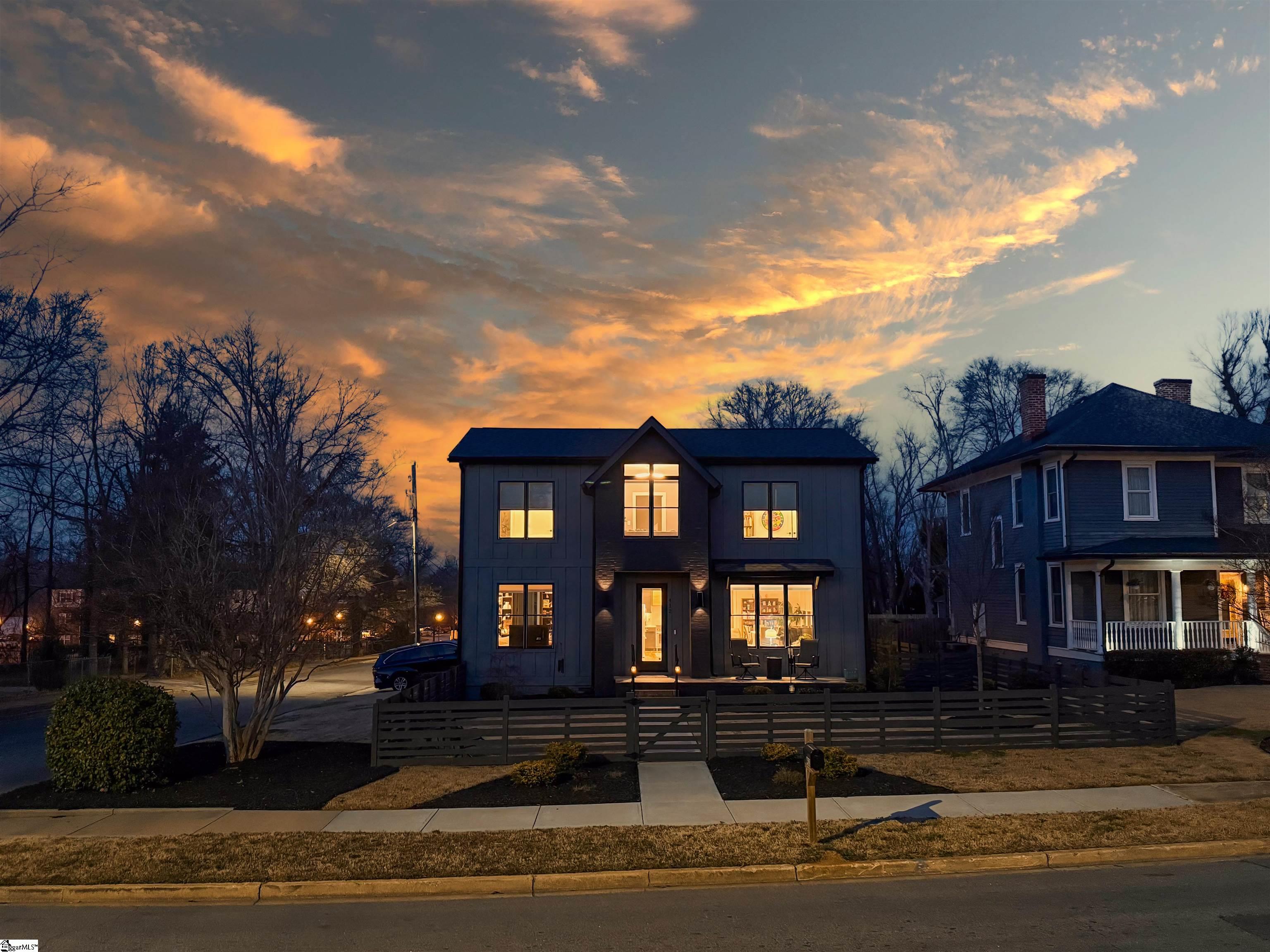 412 Perry Avenue offers over 3,100 square feet of custom build in Downtown Greenville's West End, within walking distance of Unity Park and Main Street. Built by Oasis Custom Homes, the construction and finish level are a head above the rest. Site-finished hardwood flooring, custom cabinetry with soft-close detail, quartz countertops, Bosch appliances, and clean, modern lines are found throughout. The layout, design, and overall scale truly set this one apart. The main level features an open floor plan centered around a large waterfall island and living space with a sleek linear gas fireplace. The primary suite is a truly amazing space. The room itself is generous in size, has great light, and two walk in closets! The stunning ensuite bathroom includes a vaulted ceiling, oversized tiled shower, freestanding tub, and dual vanities - giving it a scale and feel that you will appreciate daily. There are three true bedroom suites, plus a main-level one that can serve as a fourth bedroom, office, guest room, or den depending on how you prefer to live. It also offers a rare feature for downtown living: a fenced yard, providing defined outdoor space that works especially well for pets. Just let your dog out from the covered back porch, or right out the front door! Additional features include a two-car garage, walk-in pantry, mudroom, and stacked closets designed for future elevator installation if ever desired. Another feature you will notice right away is how wide the hall is upstairs, and at the end of the hall is a great office or flex space overlooking the front yard. It is well positioned, well built, and thoughtfully laid out over only two levels! Reach out for a showing today!