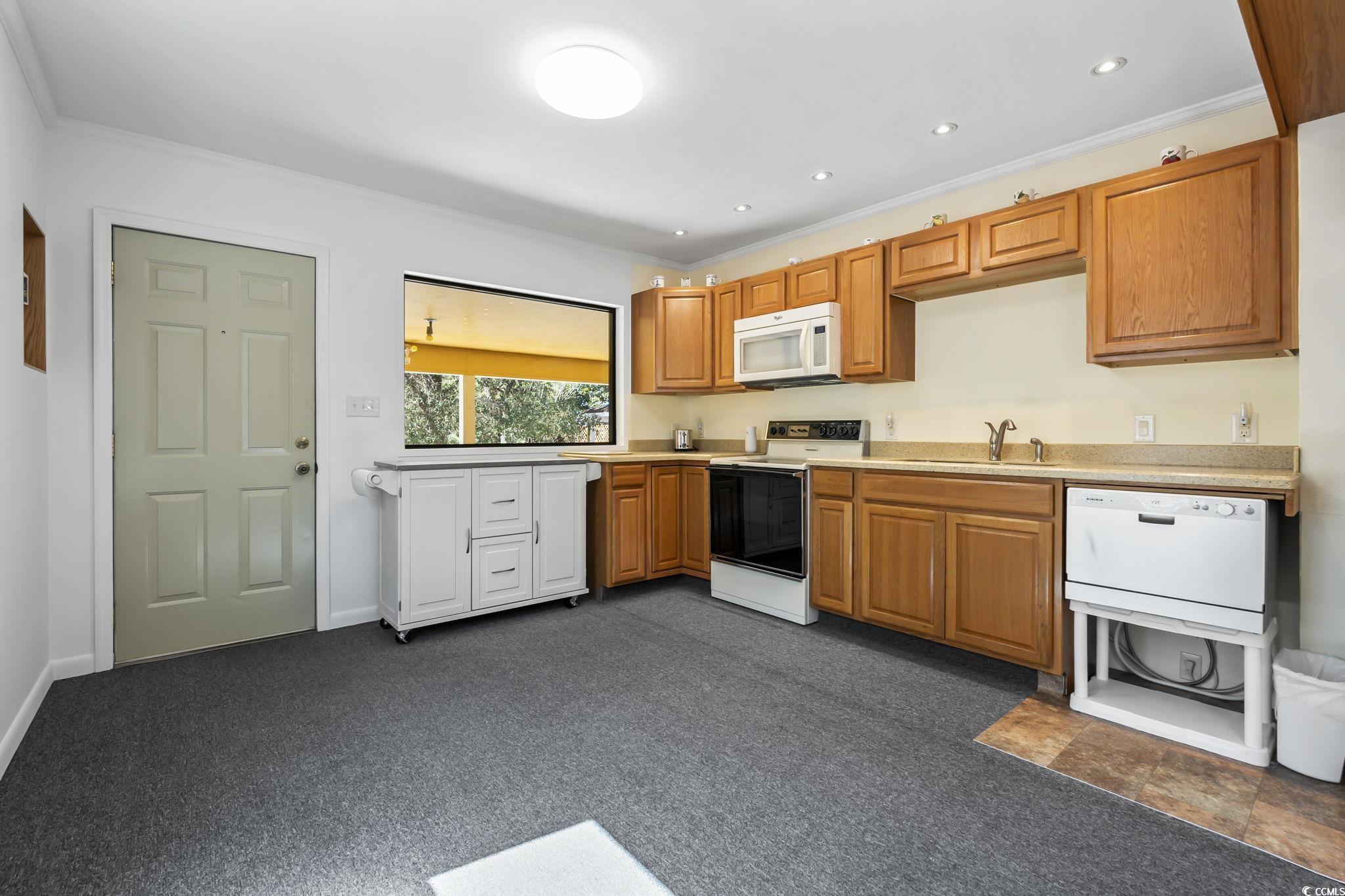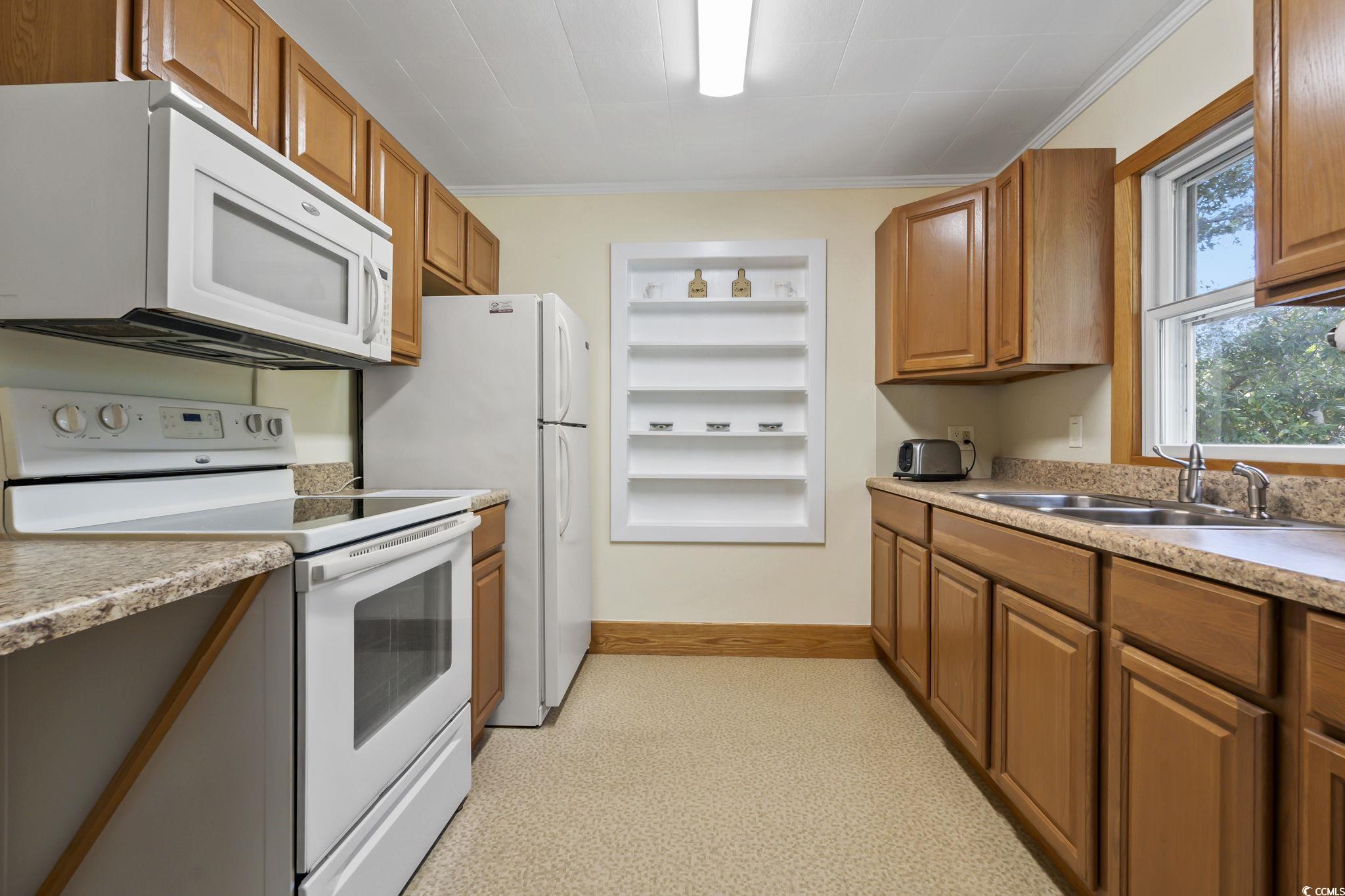 As you step onto the property, a beautiful live oak tree greets you at the entrance, setting the tone for this one-of-a-kind Myrtle Beach triplex. Starting with the main home, you'll find yourself in a cozy beach cottage filled with character. The living room is warm and inviting, featuring rich wood paneling, authentic hardwood floors, and a brick wood-burning fireplace that creates a natural gathering space. Moving forward, the kitchen and dining area flow together easily, offering plenty of space for meals and everyday living. This home also includes two bedrooms - both well-sized - with the primary bedroom featuring a walk-in closet, and two bathrooms that serve the home. Just off the back, there's a covered patio perfect for relaxing in the shade. Downstairs, you'll find a separate laundry and utility space, giving you convenience and additional storage. Heading to the rear of the property, the duplex offers two additional living spaces. On the main level, you enter into a functional layout with a comfortable living and dining area that connects to a kitchenette. This unit includes a bedroom and two bathrooms, making it ideal for guests or rental income. There's also laundry access and a private entryway, along with extra storage for added convenience. Upstairs, the one-bedroom unit offers its own charm. As you walk in, you'll notice the open family room with plenty of natural light and a kitchen that makes the space fully self-sufficient. A bedroom and bathroom complete this unit, along with a covered front stoop that overlooks the property, offering a quiet retreat to enjoy the outdoors. Between the main home and the duplex, the courtyard ties everything together. This large outdoor space is perfect for entertaining, with a grilling station, patio area, and shade from mature trees. This property offers plenty of options for parking in the front and back, and allows short term rentals! The design of the property makes it easy to imagine hosting gatherings, renting units, or simply enjoying the flexibility of multiple living spaces - all within steps of the public beach access at 30th Avenue North. Measurements are not guaranteed. Buyer is responsible for verifying.