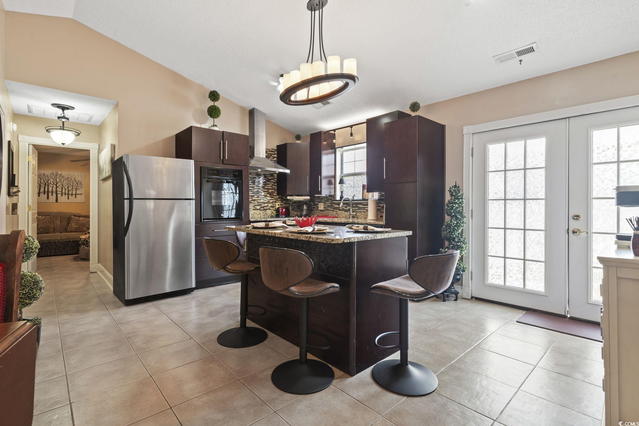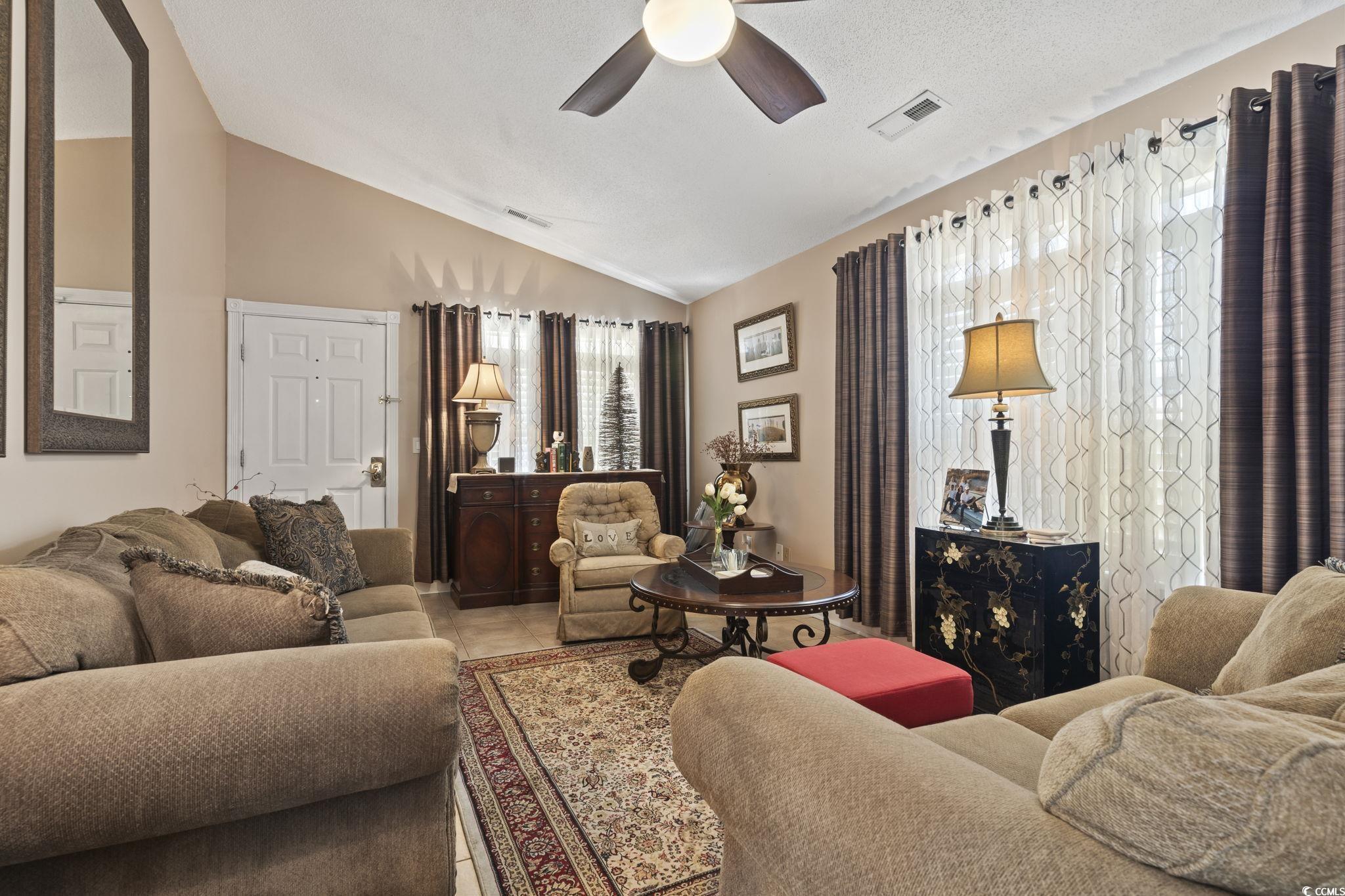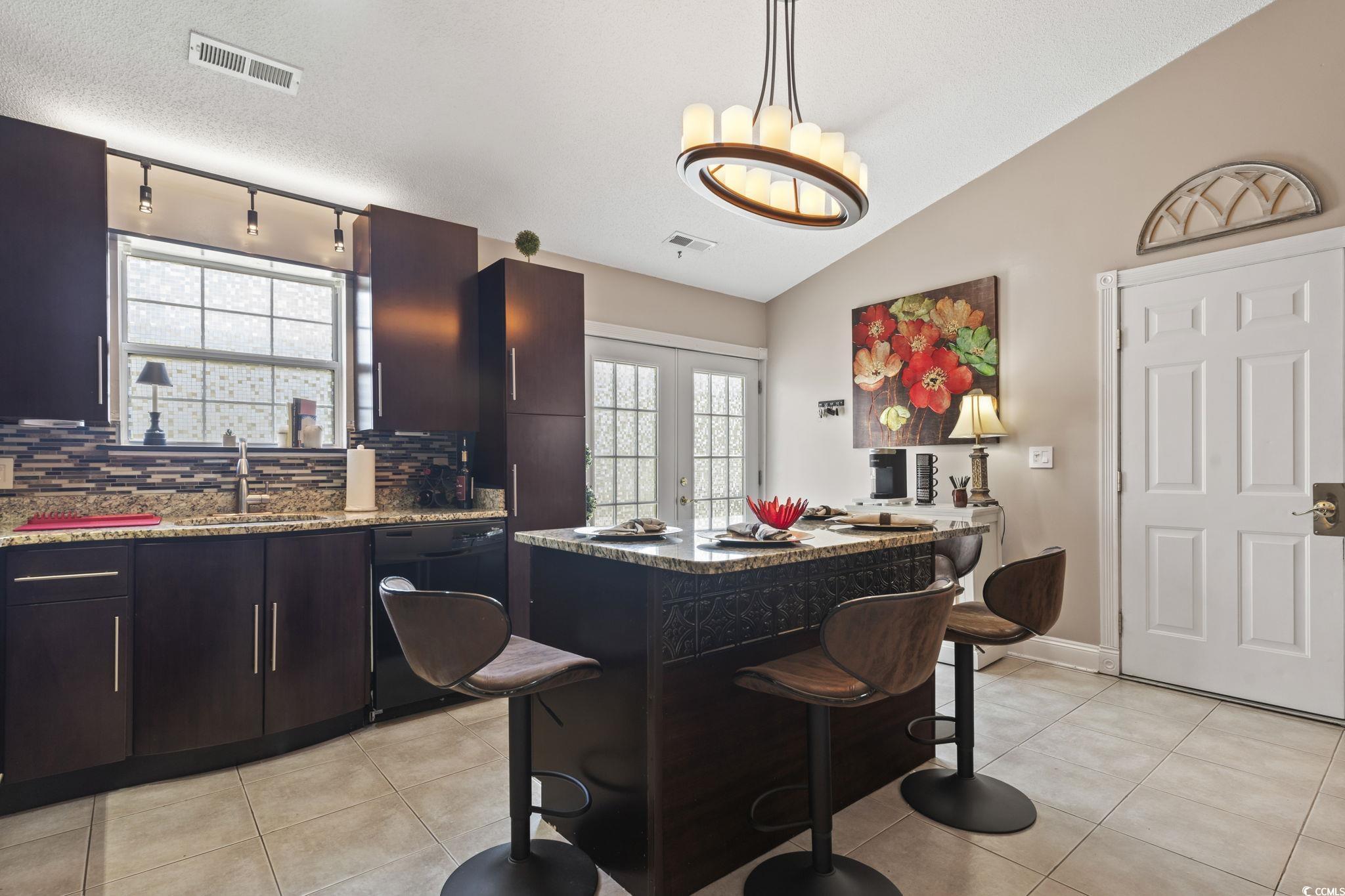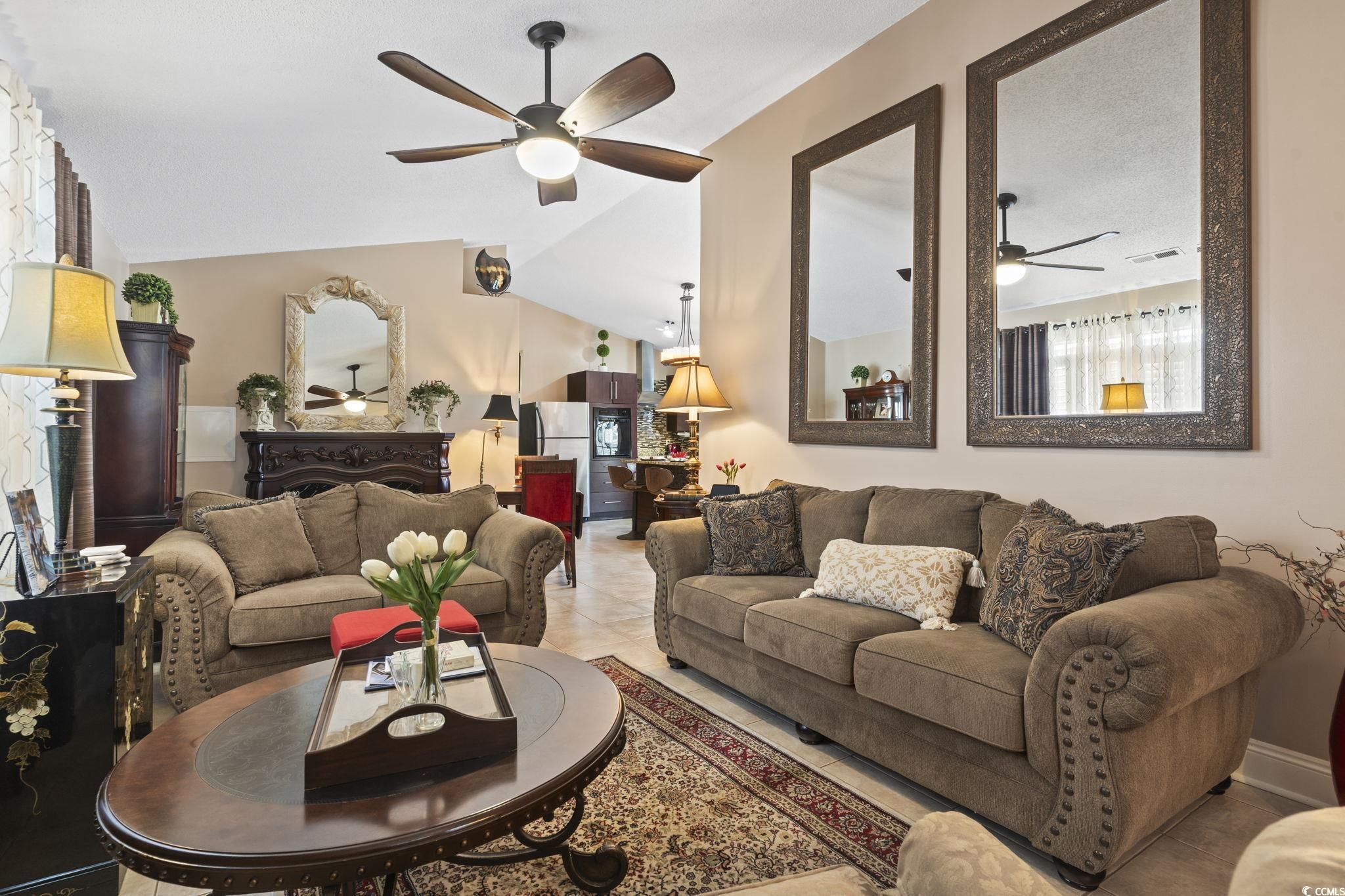Your peace of mind is important and the HOA fee includes BUILDING INSURANCE (including roof and siding), basic cable, internet, landscaping, pressure washing, exterior maintenance, allowing for a truly low-maintenance lifestyle. Welcome to this beautifully designed home that effortlessly blends modern style with cozy charm! Step inside to discover soaring ceilings that create a bright, open, and airy atmosphere throughout the living room, dining area, and kitchen. The seamless open-concept layout is ideal for entertaining guests or simply enjoying everyday living. The kitchen is a true centerpiece—featuring sleek stainless steel appliances, a matching work island that doubles as a breakfast bar, custom cabinetry, a stunning mosaic tile backsplash, and luxurious granite countertops. French doors just off the dining area lead to a private balcony—perfect for sipping your morning coffee or unwinding in the evening breeze. The spacious primary suite is a peaceful retreat, complete with a stylish sliding barn door that opens to a fully updated en-suite bathroom. Enjoy a gorgeous floor-to-ceiling tiled shower, a modern vanity, and contemporary fixtures. An additional well-appointed bedroom and a full bath provide comfort and convenience for guests. Additional features include a single-car garage with a screen addition—creating a perfect bug-free space for relaxing or working on projects. Located in a beautifully maintained, gated community in the heart of Myrtle Beach, this home offers both privacy and security. Whether you're looking for a primary residence, a vacation getaway, or an investment opportunity, this home delivers the ideal blend of comfort, style, and accessibility. Just 1.7 miles from the beach, and within walking distance to Broadway at the Beach, the Pelicans’ stadium, restaurants, and shopping—you’ll have Myrtle Beach’s top attractions right at your fingertips. Plus, you're just a short drive from local hospitals and medical facilities. Don’t miss your opportunity to own this stunning property in one of the most sought-after communities along the Grand Strand! All measurements are approximate and not guaranteed. Buyer is responsible for verification. Please ask your agent about lender closing costs incentives for this property.