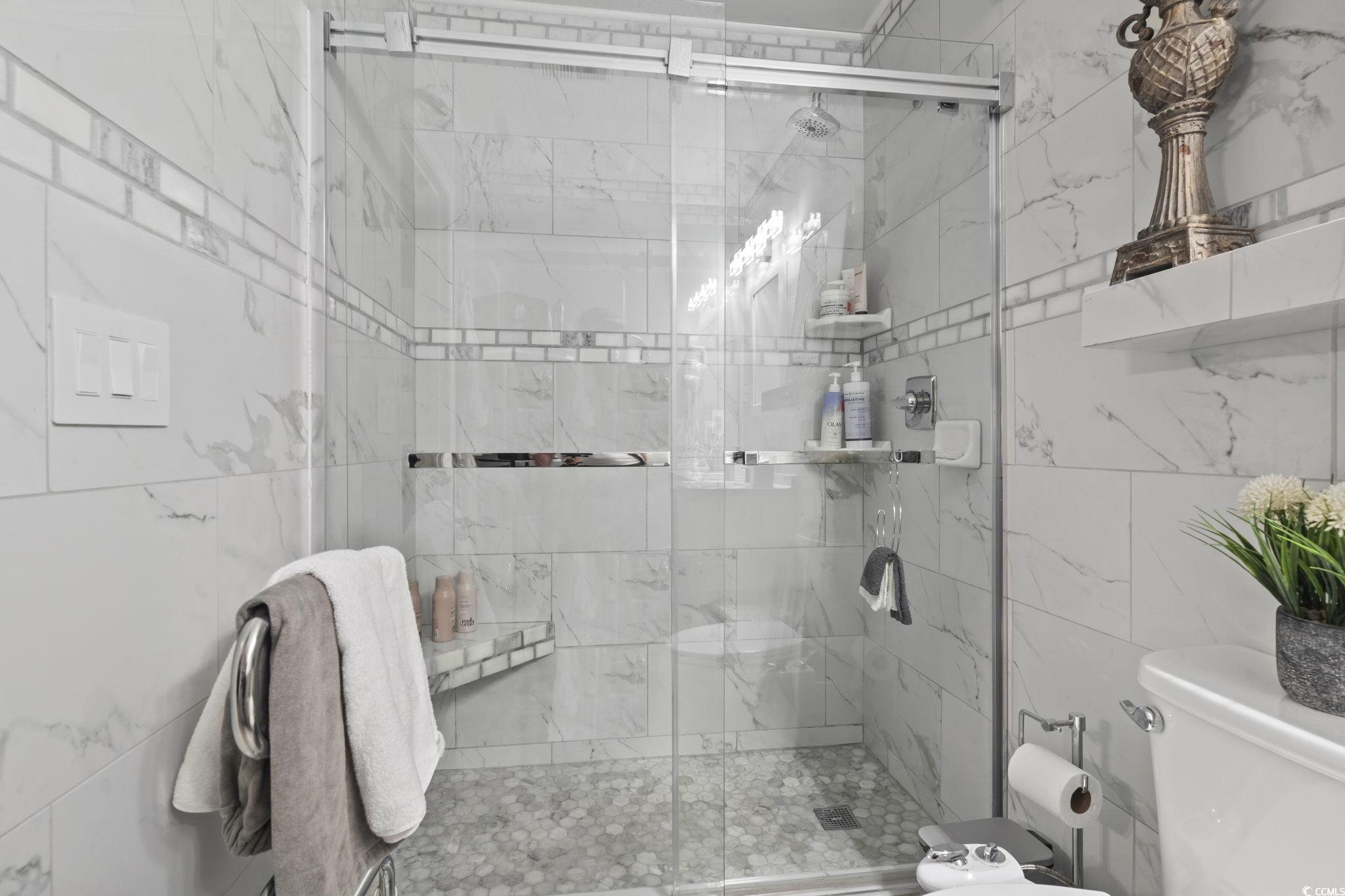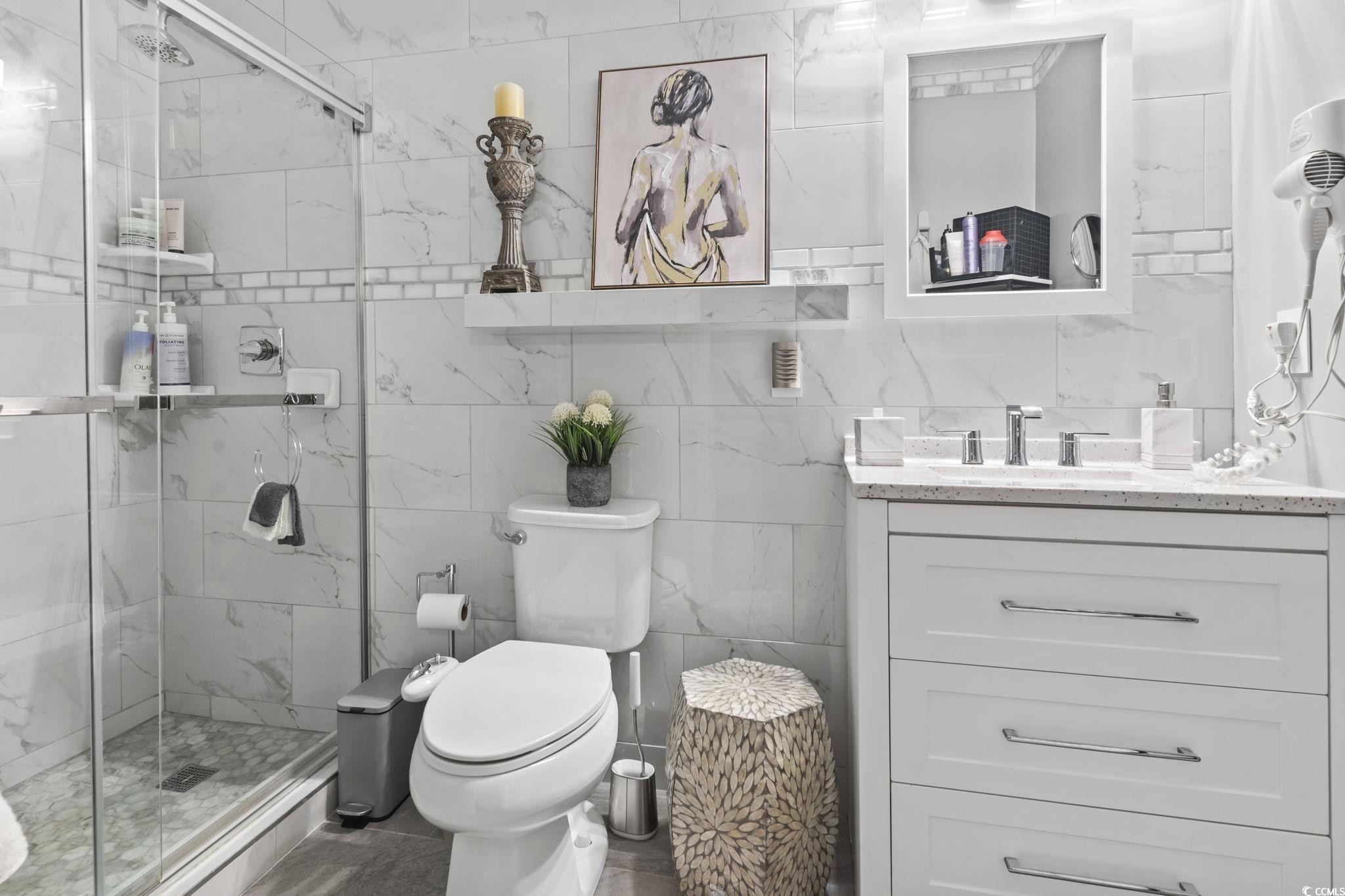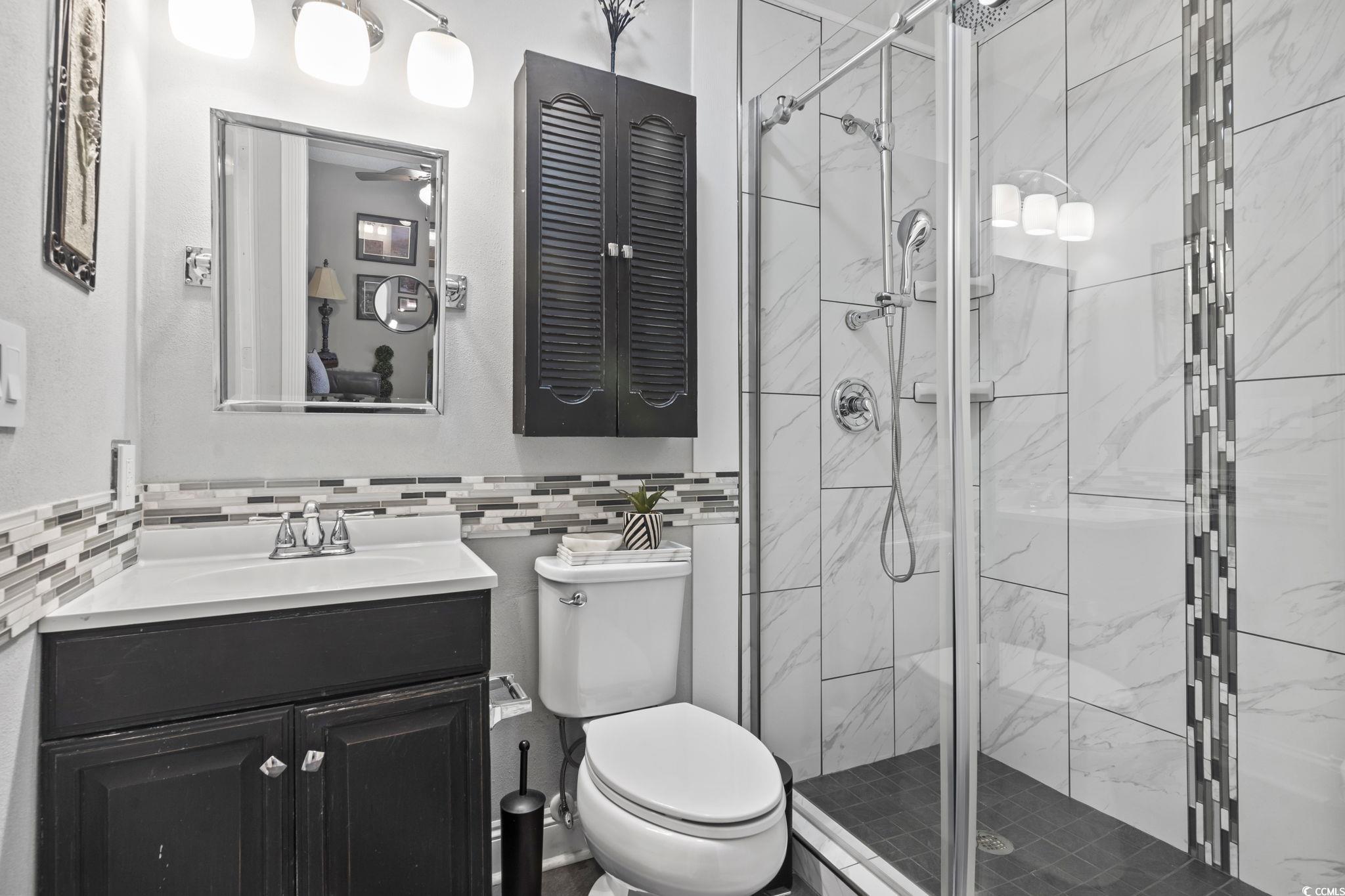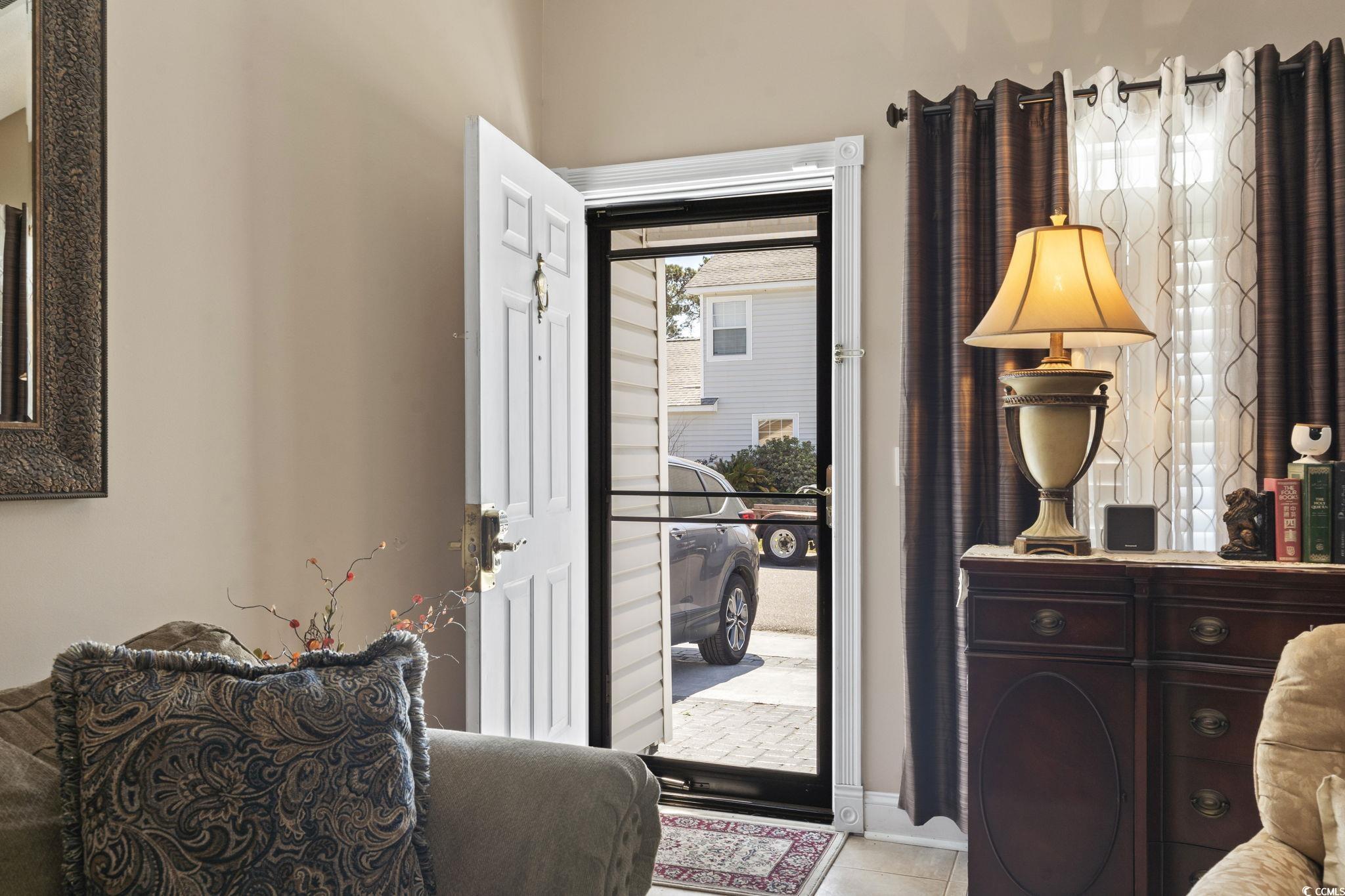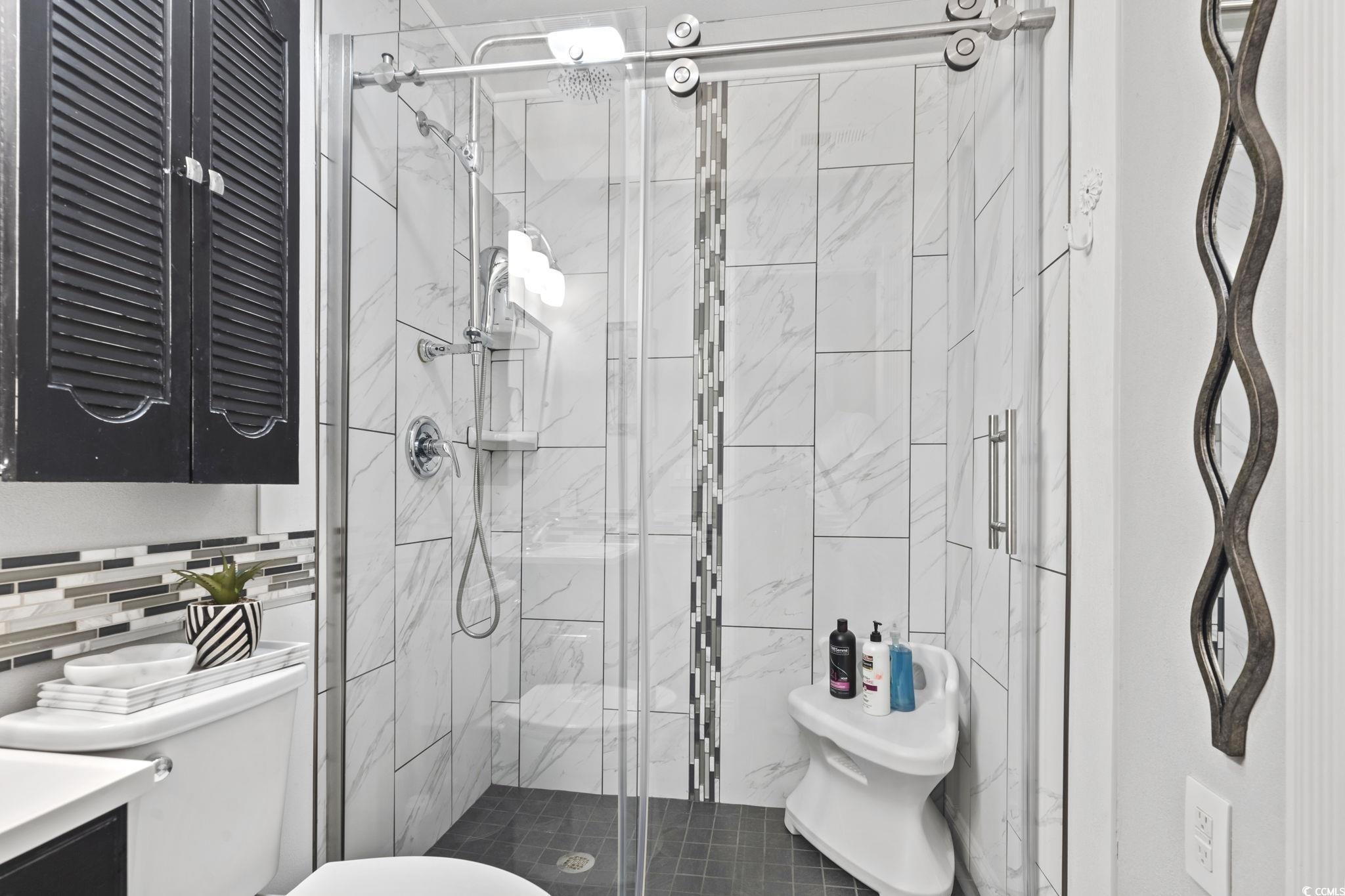 Your peace of mind is important and the HOA fee includes BUILDING INSURANCE (including roof and siding), basic cable, internet, landscaping, pressure washing, exterior maintenance, allowing for a truly low-maintenance lifestyle. Welcome to this beautifully designed home that effortlessly blends modern style with cozy charm! Step inside to discover soaring ceilings that create a bright, open, and airy atmosphere throughout the living room, dining area, and kitchen. The seamless open-concept layout is ideal for entertaining guests or simply enjoying everyday living. The kitchen is a true centerpiece—featuring sleek stainless steel appliances, a matching work island that doubles as a breakfast bar, custom cabinetry, a stunning mosaic tile backsplash, and luxurious granite countertops. French doors just off the dining area lead to a private balcony—perfect for sipping your morning coffee or unwinding in the evening breeze. The spacious primary suite is a peaceful retreat, complete with a stylish sliding barn door that opens to a fully updated en-suite bathroom. Enjoy a gorgeous floor-to-ceiling tiled shower, a modern vanity, and contemporary fixtures. An additional well-appointed bedroom and a full bath provide comfort and convenience for guests. Additional features include a single-car garage with a screen addition—creating a perfect bug-free space for relaxing or working on projects. Located in a beautifully maintained, gated community in the heart of Myrtle Beach, this home offers both privacy and security. Whether you're looking for a primary residence, a vacation getaway, or an investment opportunity, this home delivers the ideal blend of comfort, style, and accessibility. Just 1.7 miles from the beach, and within walking distance to Broadway at the Beach, the Pelicans’ stadium, restaurants, and shopping—you’ll have Myrtle Beach’s top attractions right at your fingertips. Plus, you're just a short drive from local hospitals and medical facilities. Don’t miss your opportunity to own this stunning property in one of the most sought-after communities along the Grand Strand! All measurements are approximate and not guaranteed. Buyer is responsible for verification. Please ask your agent about lender closing costs incentives for this property.
