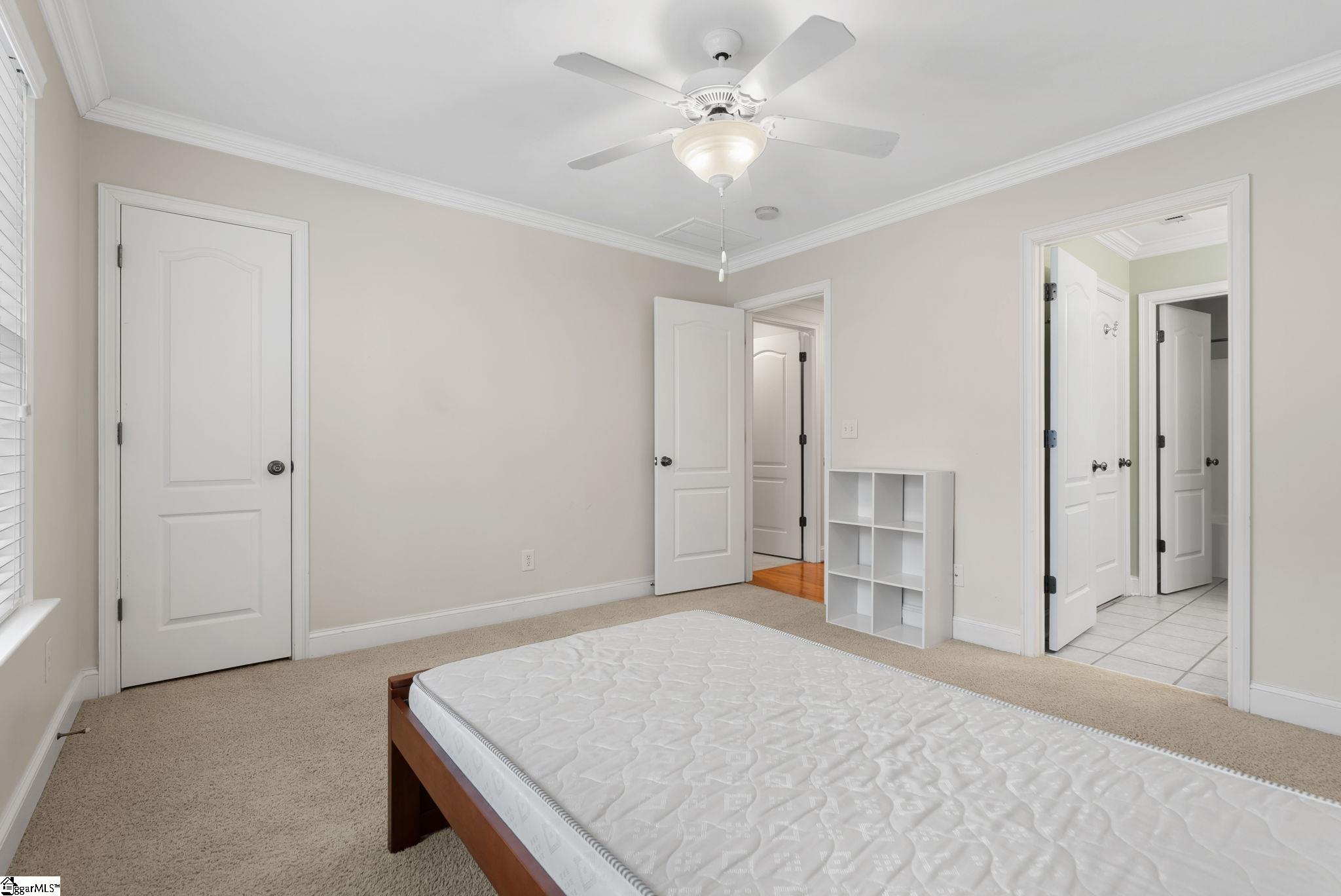 Welcome to Kilgore Farms, an active community located in the Five Forks area of Simpsonville. The neighborhood amenities include a club house, two swimming pools, and courts for tennis or pickleball. This all brick home with all the details one would expect in a custom built home. Enter into a two story foyer, to the right you will find a dining room with coffered ceilings, wainscoting, and heavy crown molding. Ahead you will find a spacious great room with two story ceilings and a gas fireplace. In the spacious kitchen you will find granite countertops, stainless steel appliances and a gas range. The primary bedroom and bath are located on the main level of the home. The bedroom is equipped with a spacious sitting area while the primary bath has separate vanities, a jetted tub, a tile shower and a water closet. On the main level you will also find a secondary bedroom, secondary bathroom, and a laundry room. The upstairs features two additional bedrooms a large bonus room and convenient walk-in storage.