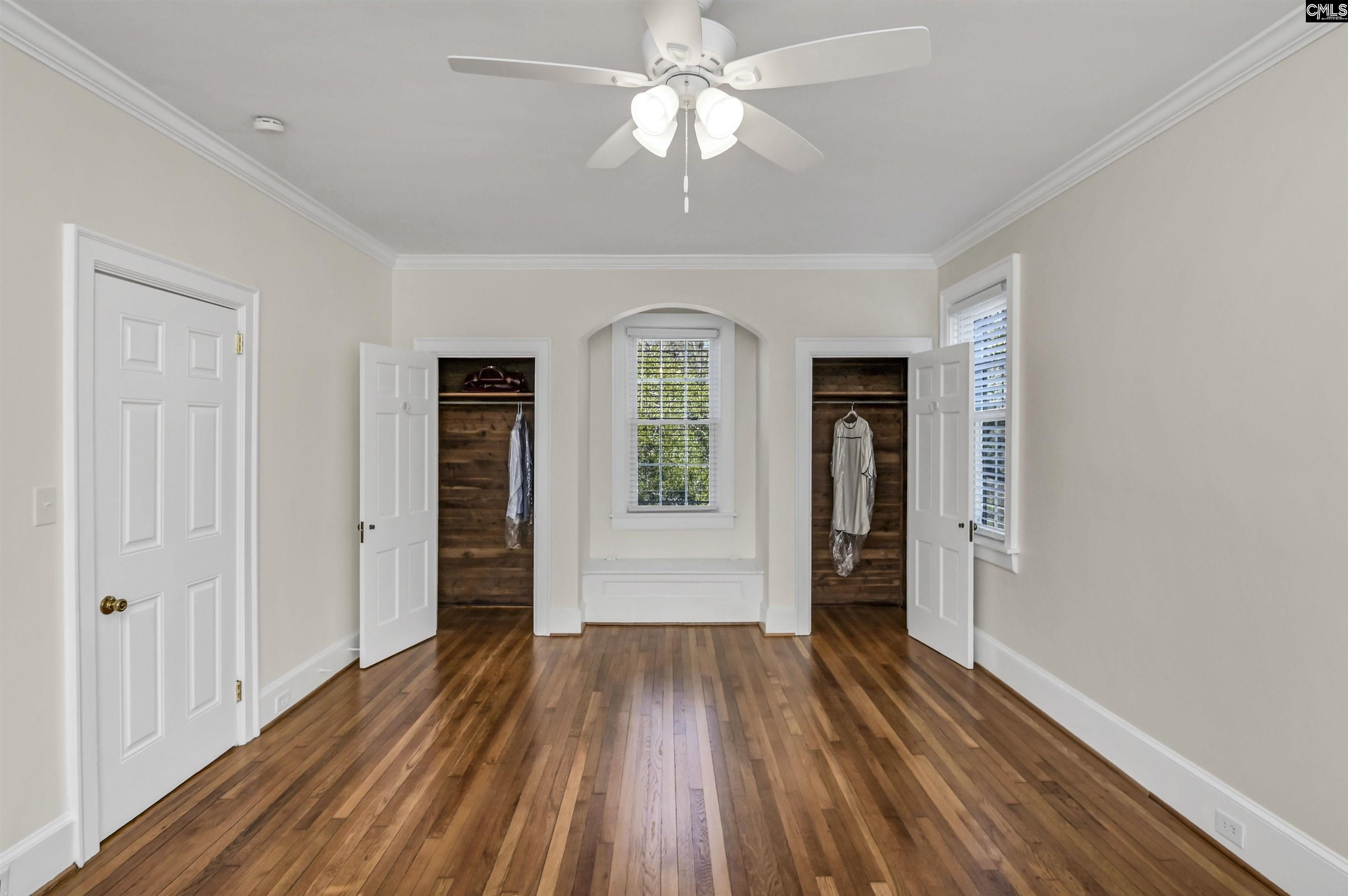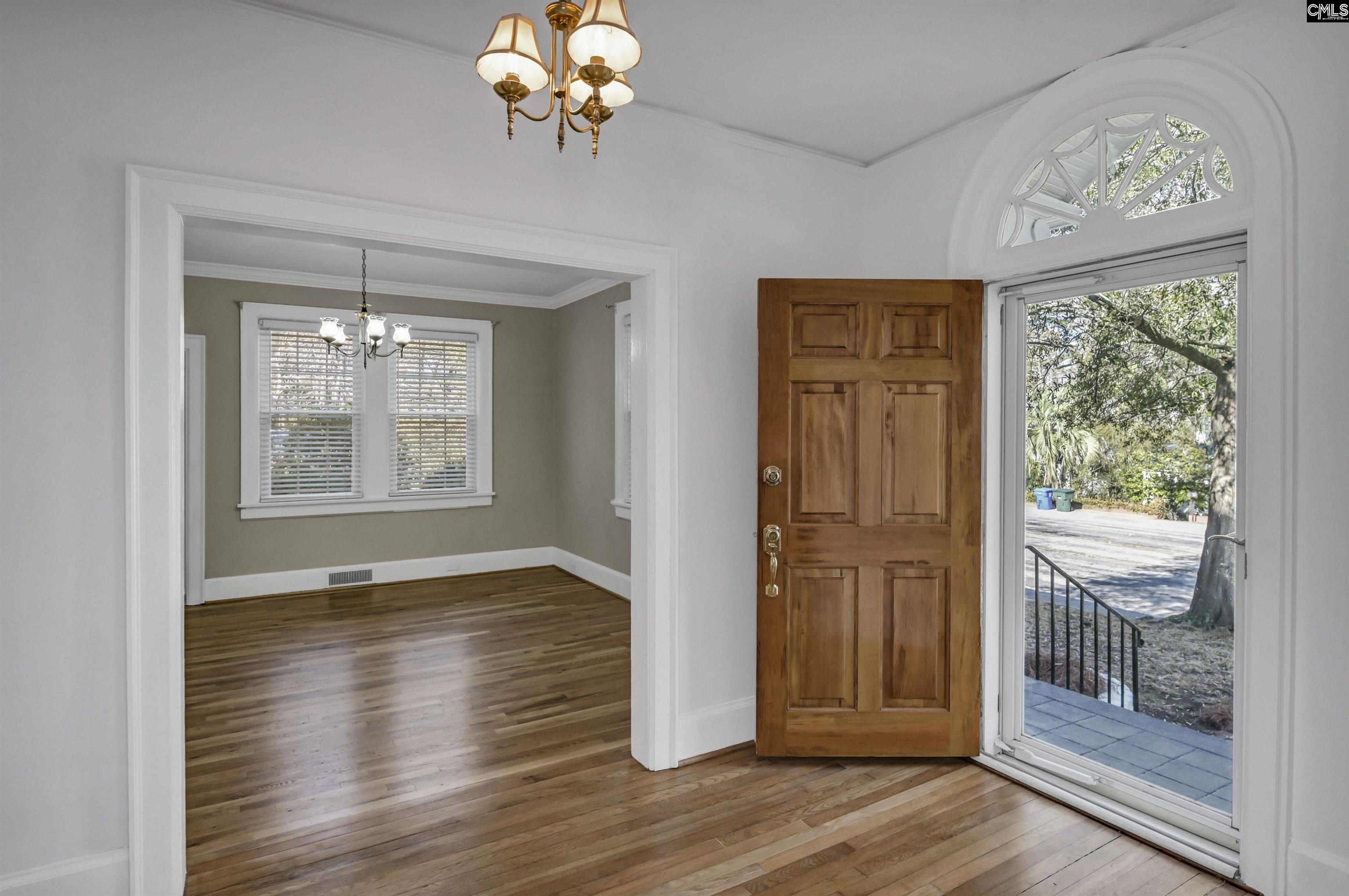 This stately, all-brick home is situated on a large corner just a few minutes from Trenholm Plaza - the hub of the Forest Acres area. The property has been lovingly and meticulously updated in recent months yet remains very authentic - featuring high ceilings and beautifully refinished hardwood floors upstairs and downstairs - showcasing the home's classic architectural details. The interior has been recently painted top-to-bottom, and there are energy-efficient thermopane windows throughout the house. The updated kitchen features ceramic tile flooring, upgraded cabinet hardware, stainless steel appliances—including a brand-new dishwasher—and enhanced lighting in the breakfast area. It also offers ample storage, granite countertops, and a new garbage disposal. The second-floor bathroom has a new vanity, new fixtures, new lighting, and the tub has been reglazed. The first floor has a big entry foyer. To its left is a grand living room with a fireplace. Beyond that is a big, enclosed porch with a door to the exterior. On the other side of the entry foyer is a dining room. Beyond the dining room is a bedroom with a walk-in closet and private bath with a reglazed tub. From the dining room, you can step into the light-filled, inviting kitchen with a big breakfast area and pantry. From the kitchen, you can step down to a back hall area with built-in storage, a powder room, a door to the basement, and a door to the rear driveway. Upstairs, there are two large bedrooms and a full hall bath. One bedroom features four closets (including two cedar-lined), a cozy reading nook, and an arched alcove perfect for a desk. Another room upstairs could be a bedroom (it doesn't have a closet) or an office. Outside, the brick veneer and trim have recently been painted, a new architectural-shingled roof has been installed, and a handsome new front door and hardware are in place. There is a former detached two-car garage that's best used for storage, and it has a small workshop. The backyard is fenced, and there is a driveway that runs behind Claremont Drive to Trenholm Road. Finally, the property is zoned for academically strong schools - Brennen, Crayton, and Flora. Discl Disclaime