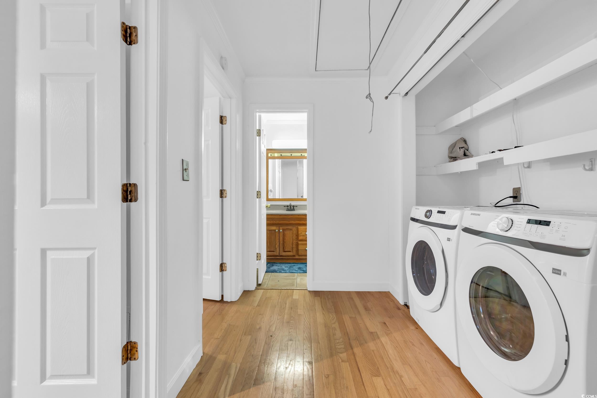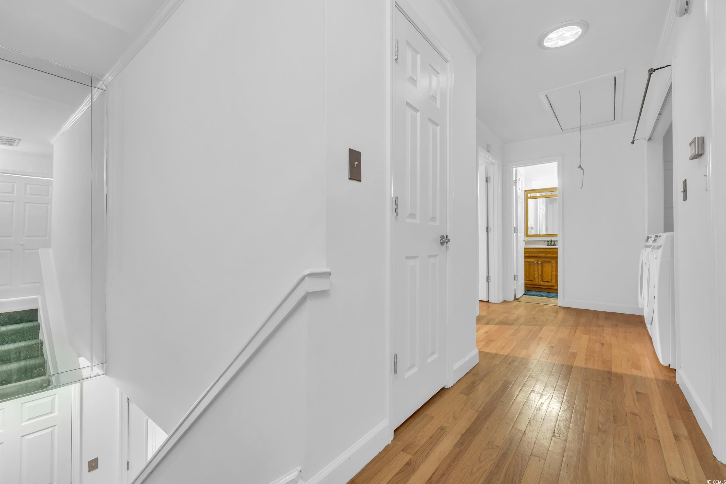 Welcome home to your dream beach townhome with no HOA and located in a prime location! Discover the perfect blend of comfort, convenience, and coastal charm with this beautifully maintained 2-bedroom, 1.5-bathroom townhouse in the heart of Myrtle Beach, SC. Located just 2 minutes from the beach, this home offers custom-made cabinets, hardwood floors throughout, and a convenient upstairs laundry to make everyday living a breeze. This move in ready home is already painted and comes with a new washer and dryer! The property boasts an expansive attic for extra storage. Enjoy being steps from popular spots like Starbucks, New York Prime, and charming pancake houses, with easy access to Broadway at the Beach, The Market Common, and world-class golf courses. Whether you're looking for a first home, investment property, or a vacation getaway, this townhouse is your ticket to the ultimate beachside lifestyle. Book your showing today and make this dream home yours!
