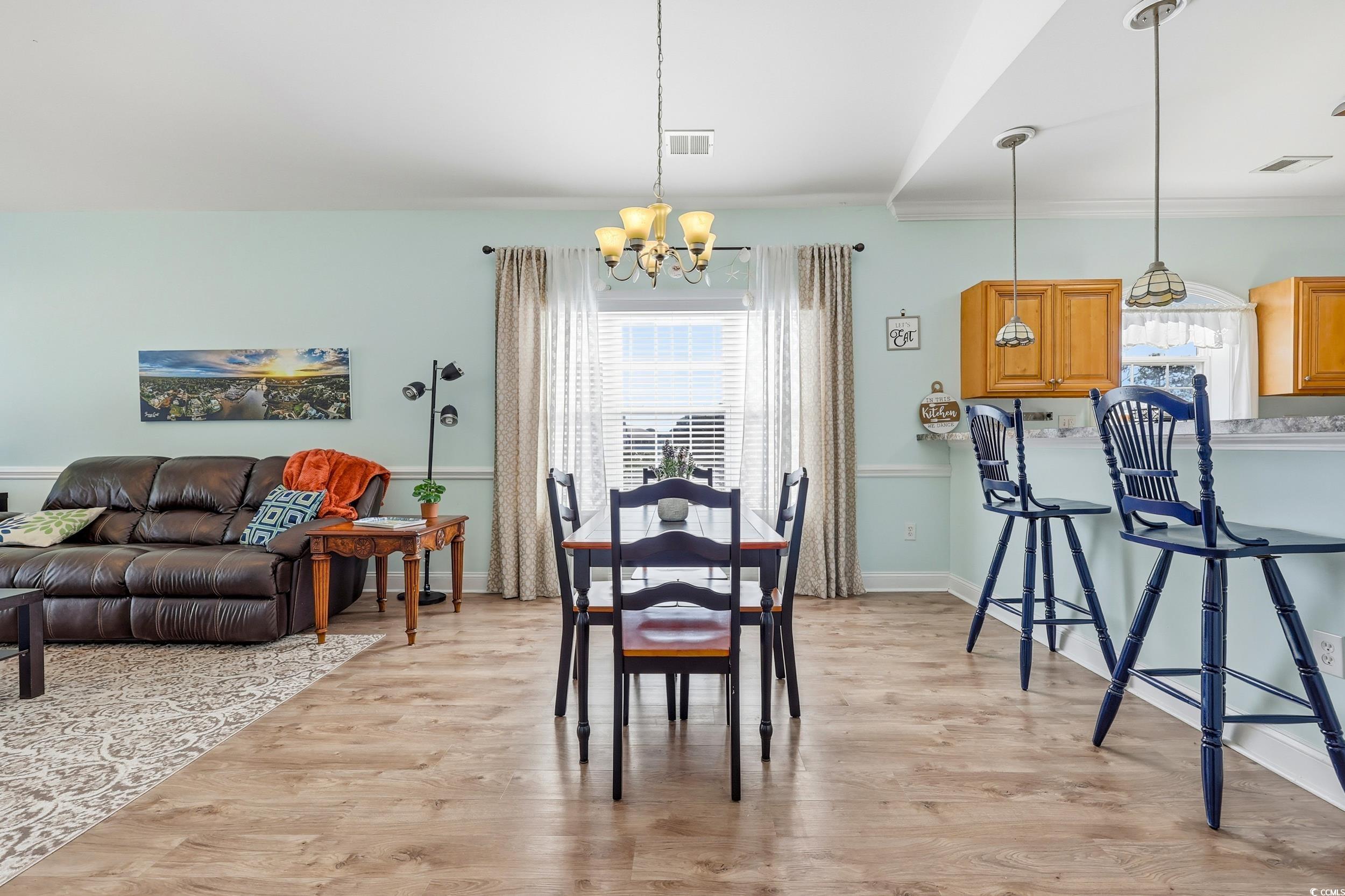 Welcome to this stunning, 3-bedroom, 2-bath top-floor end-unit condo located in the desirable Gardens at Cypress Bay West community in Little River. This third-floor unit offers vaulted ceilings and an open, airy layout that creates a spacious and inviting atmosphere throughout the living room and kitchen. The split-bedroom floor plan provides added privacy, with the primary suite featuring a walk-in closet plus an additional closet, along with ceiling fans in all rooms for year-round comfort. Beautiful vinyl plank flooring runs throughout the main living areas and bedrooms, with tile in the kitchen and bathrooms adding to the easy maintenance of this condo. The kitchen is well appointed with stainless steel appliances, tons of cabinet storage, a breakfast bar, and newer refrigerator making it both functional and stylish. The condo is sold fully furnished, including all décor and kitchenware, allowing for an easy move-in or immediate rental opportunity. Step out onto the private balcony to enjoy the coastal breeze, complete with a convenient exterior storage closet. The hot water heater was just replaced in January 2025, and the HVAC system is on an annual service agreement. The Gardens at Cypress Bay West is a beautifully maintained community offering a community pool and outdoor grilling areas, perfect for relaxing or entertaining. Ideally located in the heart of Little River, just minutes from Cherry Grove Beach, area restaurants, shopping, and entertainment. This condo is an excellent primary residence, second home, or investment property! Schedule your showing today! All measurements are approximate. Buyer and buyers agent responsible for verification of all information.