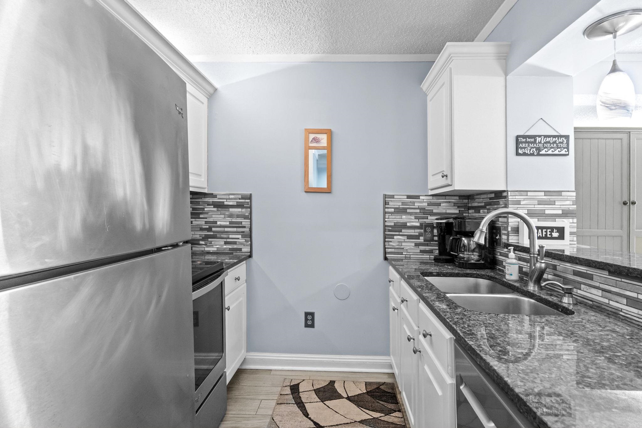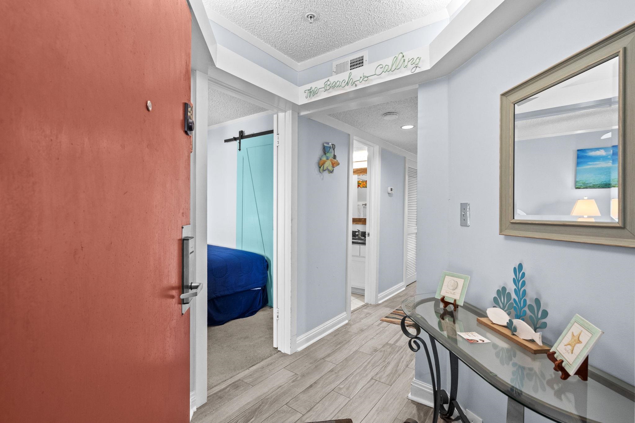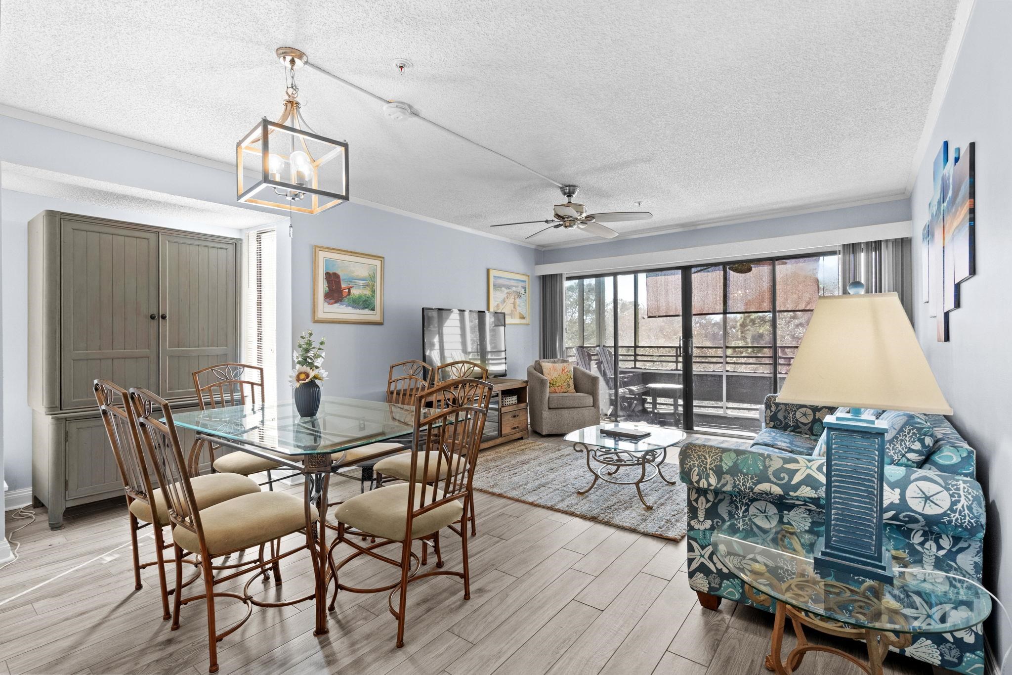 Welcome to Ocean Creek, a highly desirable gated resort community located directly across from Barefoot Landing. This newly listed two-bedroom, two-bath end-unit condo is situated on the fourth floor of an elevator building in Lodge 1 East and offers comfort, convenience, and beautiful natural surroundings. The condo features a combination of luxury tile plank flooring in the main living areas with carpeted bedrooms for added comfort. The primary and guest bathroom boast elegant custom-tiled showers with ceramic time flooring. An upgraded kitchen with stainless steel appliances, granite countertops, a pantry closet featuring pull-out drawers for easy access and organization. This end unit features a spacious screened-in porch with serene views of the natural landscape. As an end unit, it provides additional privacy and natural light. The condo is being sold fully furnished (excluding patio furniture). Washer and dryer facilities are conveniently located on the fourth floor. Lodge 1 East is ideally positioned near the Ocean Creek North Tower and is within walking distance to the beach and many of the resort’s outstanding amenities. Ocean Creek is surrounded by beautiful natural landscaping and offers multiple swimming pools both indoor and outdoor, tennis courts, BBQ grill area, on-site dining, a conference center, and 24-hour gated security. Conveniently located in Myrtle Beach near the Windy Hill section of North Myrtle Beach, this community provides easy access to shopping, dining, and entertainment. Don’t miss the opportunity to own this lovely coastal retreat. Call today to schedule your private showing.
