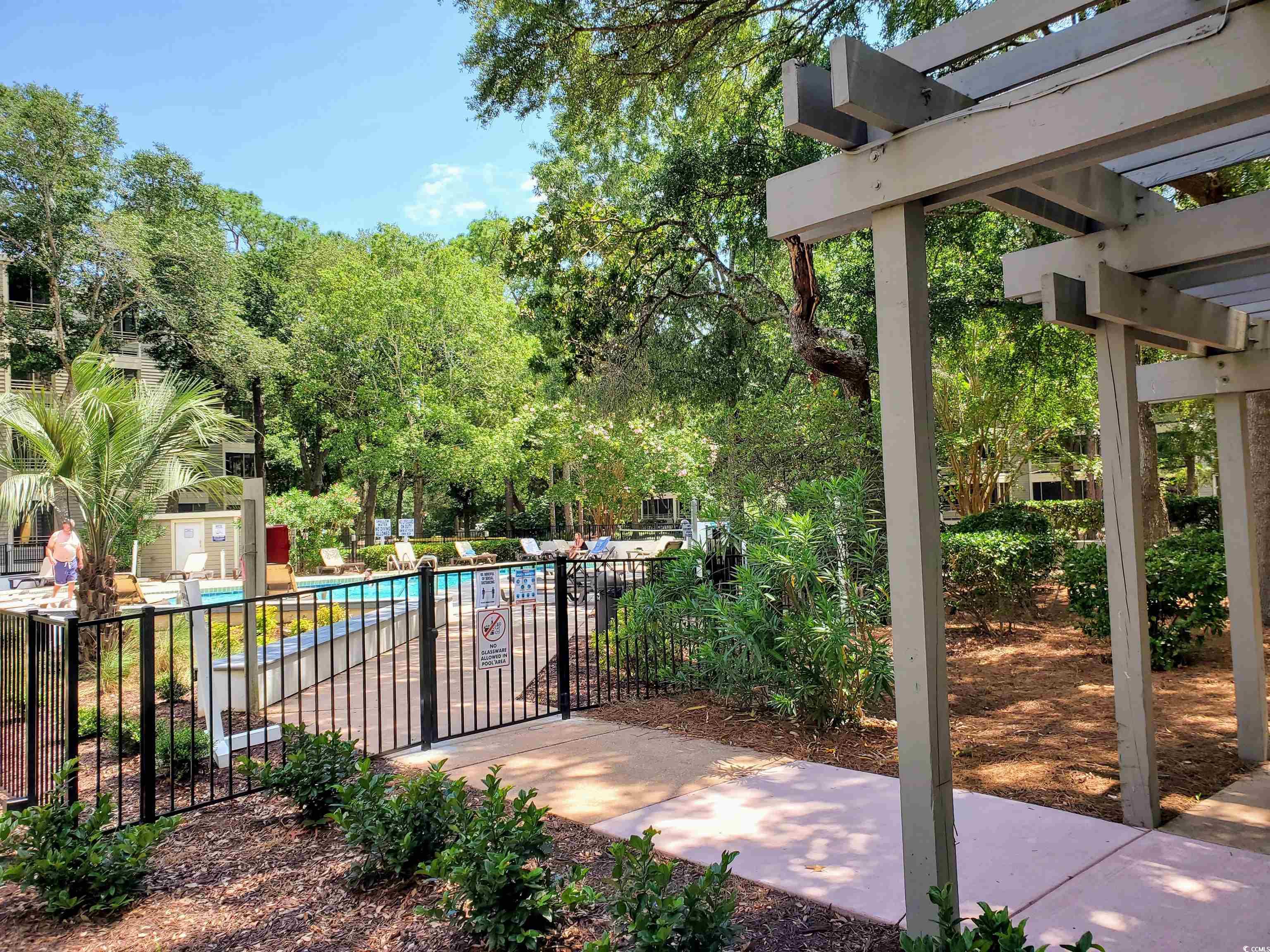 This lovely first floor condo has updated kitchen and baths and offers a beautiful large tiled shower, stainless appliances and stacked washer/dryer. It is a well cared for second home. The LVP flooring, water heater and washer/dryers were replaced withing the past tree years. It is being sold furnished. Great location; close to the beach, indoor pool and restaurant and there a good pool view from the porch. There are no rental obligations and is available for personal use or rental immediately after closing. Situated on 57-acres of park-like ground with stunning live oaks. Ocean Creek features 24 hour gated security, elevator access in each Lodge building, a tennis center, an onsite restaurant, putting green, and multiple outdoor pools and an indoor pool. The resort boasts a wonderful oceanfront Beach Club with a snack bar, sand volleyball court, playground, outdoor pool, storage lockers, and restrooms. Easy to view!