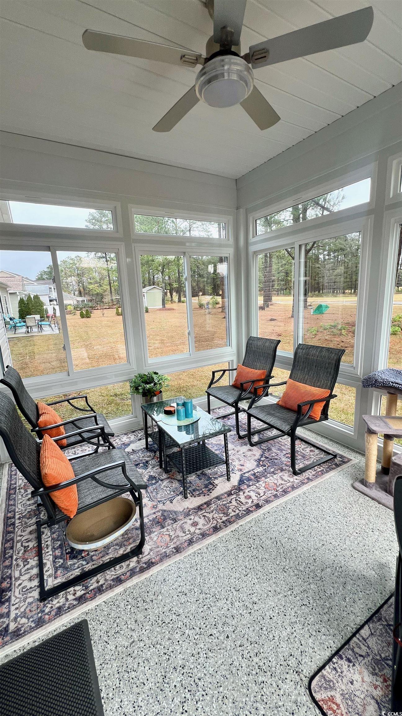 TURN KEY, FULLY FURNISHED!! Welcome to this spacious, like-new ranch-style home in the serene Woodland Valley Golf Community conveniently located immediately off Hwy #9 between Longs, SC and Loris, SC, just 25 mins from popular Cherry Grove Beach. This 4-bedroom, 2-bath residence is turn-key and fully furnished, featuring stylish modern furniture, a stocked kitchen with all appliances, including washer and dryer. Designed for both comfort and style, this home boasts exceptional functionality and charm. The oversized master suite offers a private retreat with a tray ceiling, a large walk-in closet featuring custom built-ins, and a spacious ensuite bath with double sinks and a walk-in shower. The open-concept kitchen, dining, and living areas features elegant tray ceilings, creating a bright and cohesive living space. Overlooking the 10th fairway of the Diamondback Golf Course, this beautifully maintained property offers breathtaking fairway and nature views. Enjoy your morning coffee or afternoon happy hour in the all-weather EZE-Breeze sunroom, complete with energy-efficient hurricane glass windows, sunshades, and an overhead fan. The front walkway, garage, and sunroom feature upgraded epoxy flake flooring for a clean, durable finish. Diamondback Golf Club at Woodland Valley is proudly American-owned and operated, offering both men’s and women’s clubs with flexible, affordable memberships. Known for its well-maintained course, excellent conditions, and warm southern hospitality, it’s a true local favorite. Homeowners can even use their personal golf carts on the course — the perfect blend of convenience, relaxation, and recreation. You’ll love the friendly neighbors and welcoming atmosphere of this exceptional community. It's the perfect retreat for both snowbirds and year-round residents. Don’t miss your chance to own this rare golf course gem in Woodland Valley. Schedule your private showing today! Buyer is responsible for verifying all measurements.