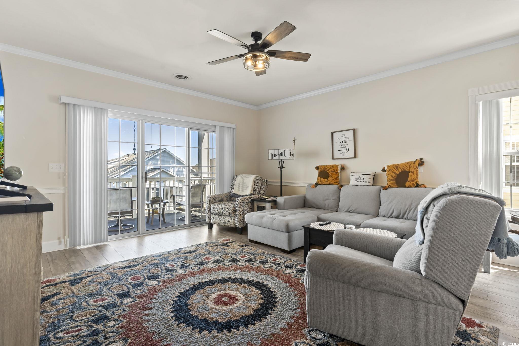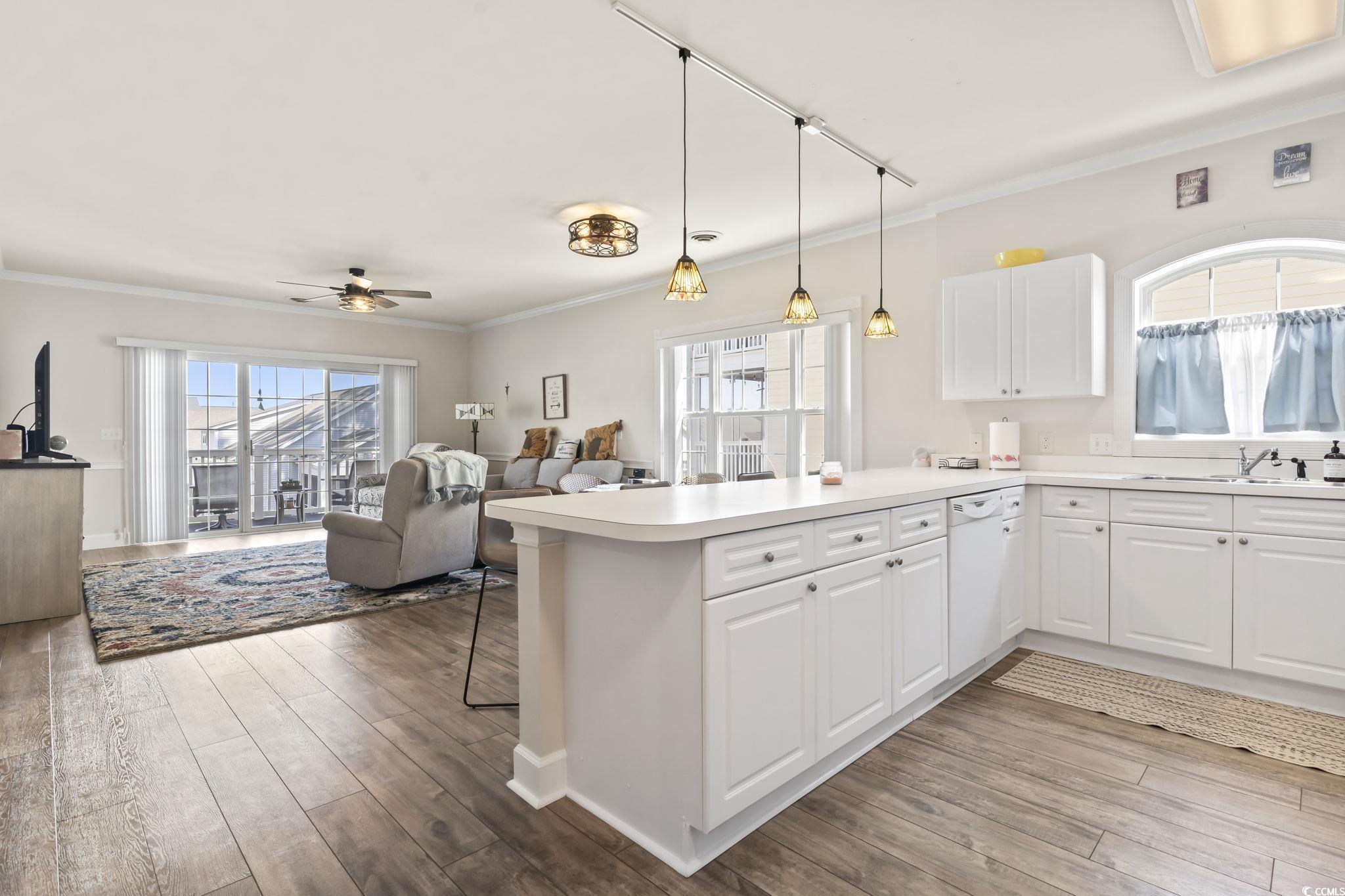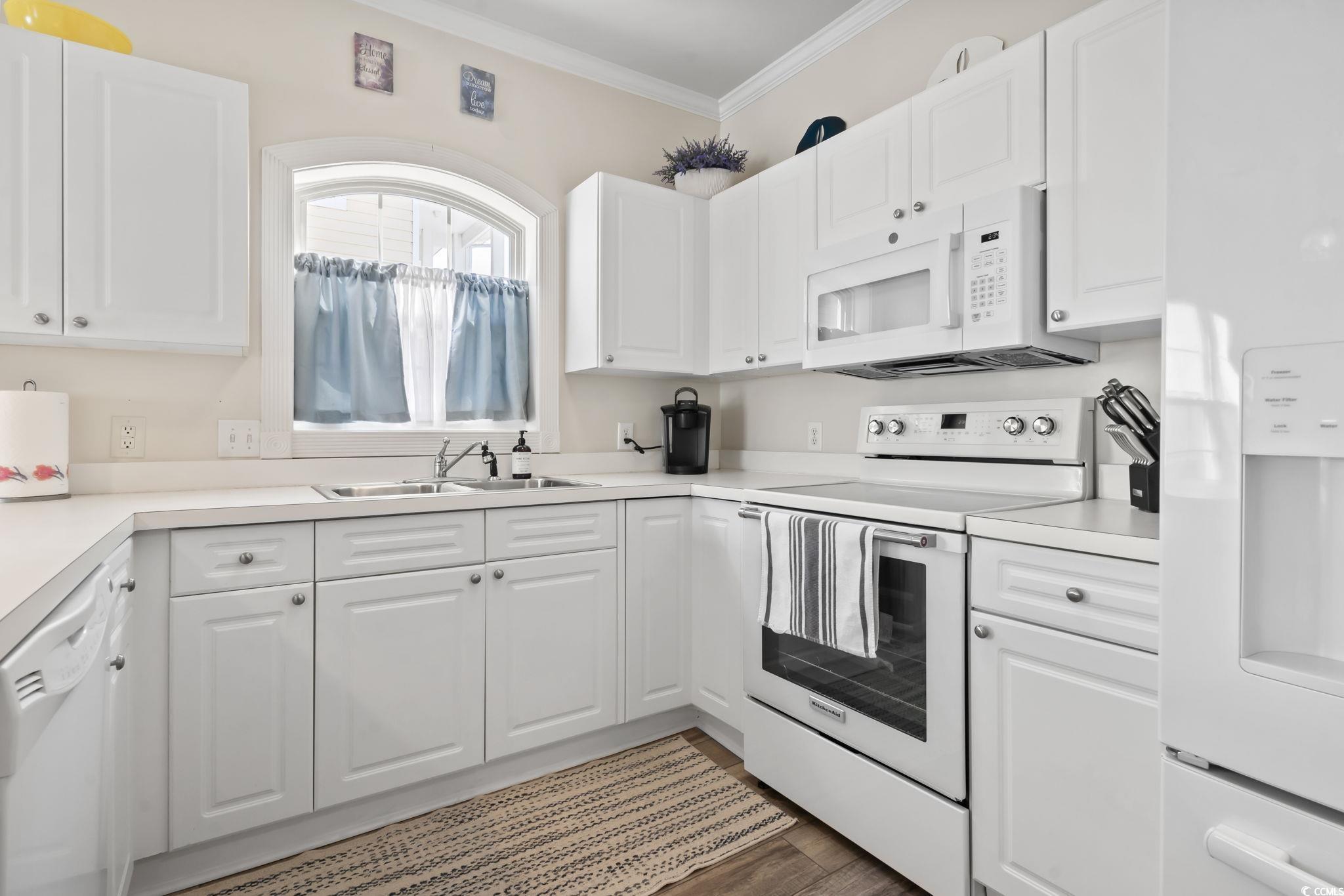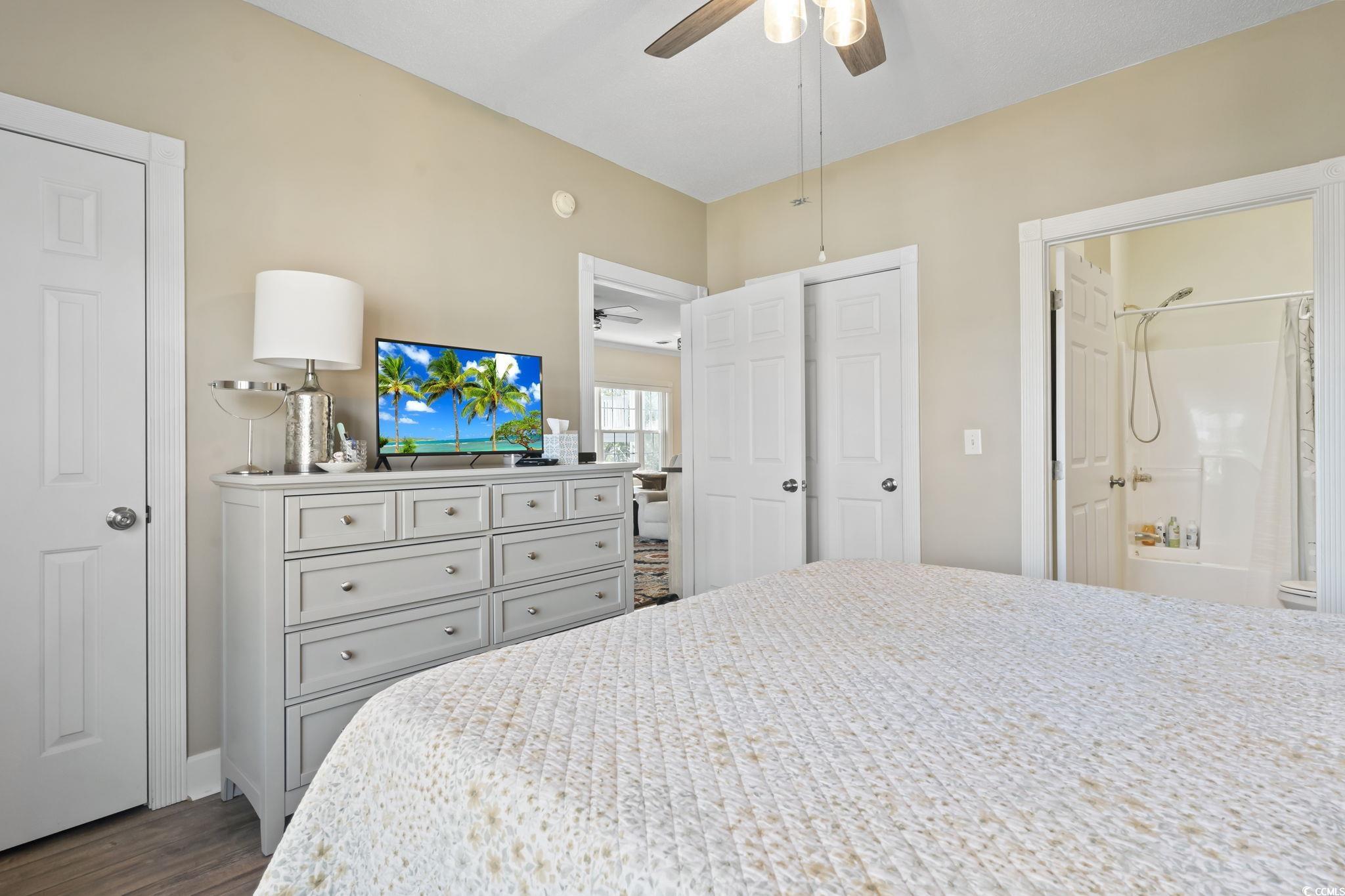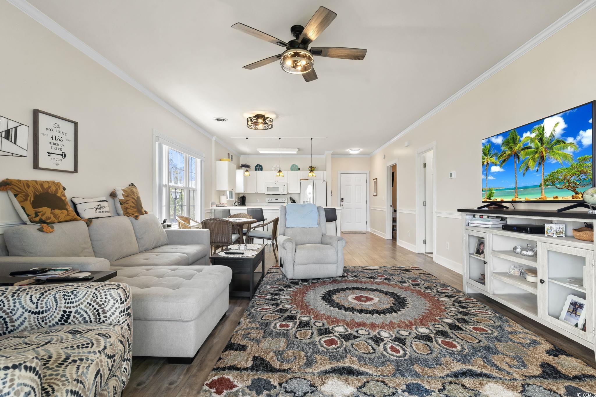 Nestled in the sought-after community of The Gardens at Cypress Bay in Little River, SC, this exceptional 2-bedroom, 2-bathroom condo offers the perfect blend of comfort, convenience, and coastal charm. Situated on the second floor, this bright and airy residence welcomes you with an open-concept living space designed for both entertaining and relaxation. The well-appointed kitchen boasts ample white cabinetry, a charming window for natural light, and a breakfast bar that seamlessly connects to the spacious dining and living areas. Sliding glass doors lead to a fabulous covered balcony, where you can unwind with a morning cup of coffee or enjoy the evening breeze. The primary suite is a true retreat, featuring a large walk-in closet and a private en suite with a tub/shower combination and vanity. The guest suite, located opposite the primary for added privacy, also includes an en suite bathroom, making it perfect for guests. Additional highlights include crown molding, chair rail detailing, smooth ceilings, and ceiling fans in every room, adding to the home's elegance and comfort. Enjoy the well-maintained community pool, perfect for soaking up the sun or taking a refreshing dip. Located just minutes from the pristine beaches of North Myrtle Beach, as well as fantastic shopping, dining, and entertainment options, this charming condo offers a carefree and convenient coastal lifestyle. Don't miss the opportunity to make this move-in-ready home your own! Measurements are not guaranteed. Buyer is responsible for verifying. Please ask your agent about lender closing costs incentives for this property.