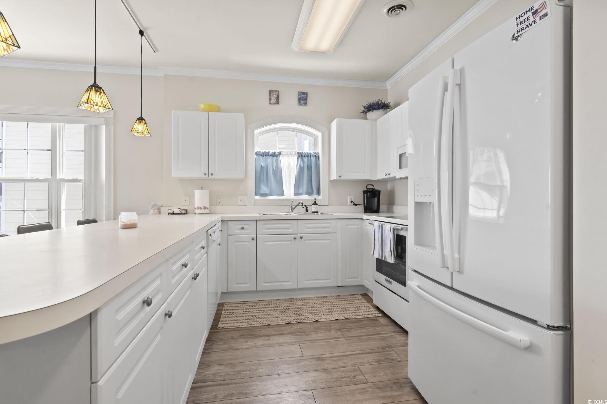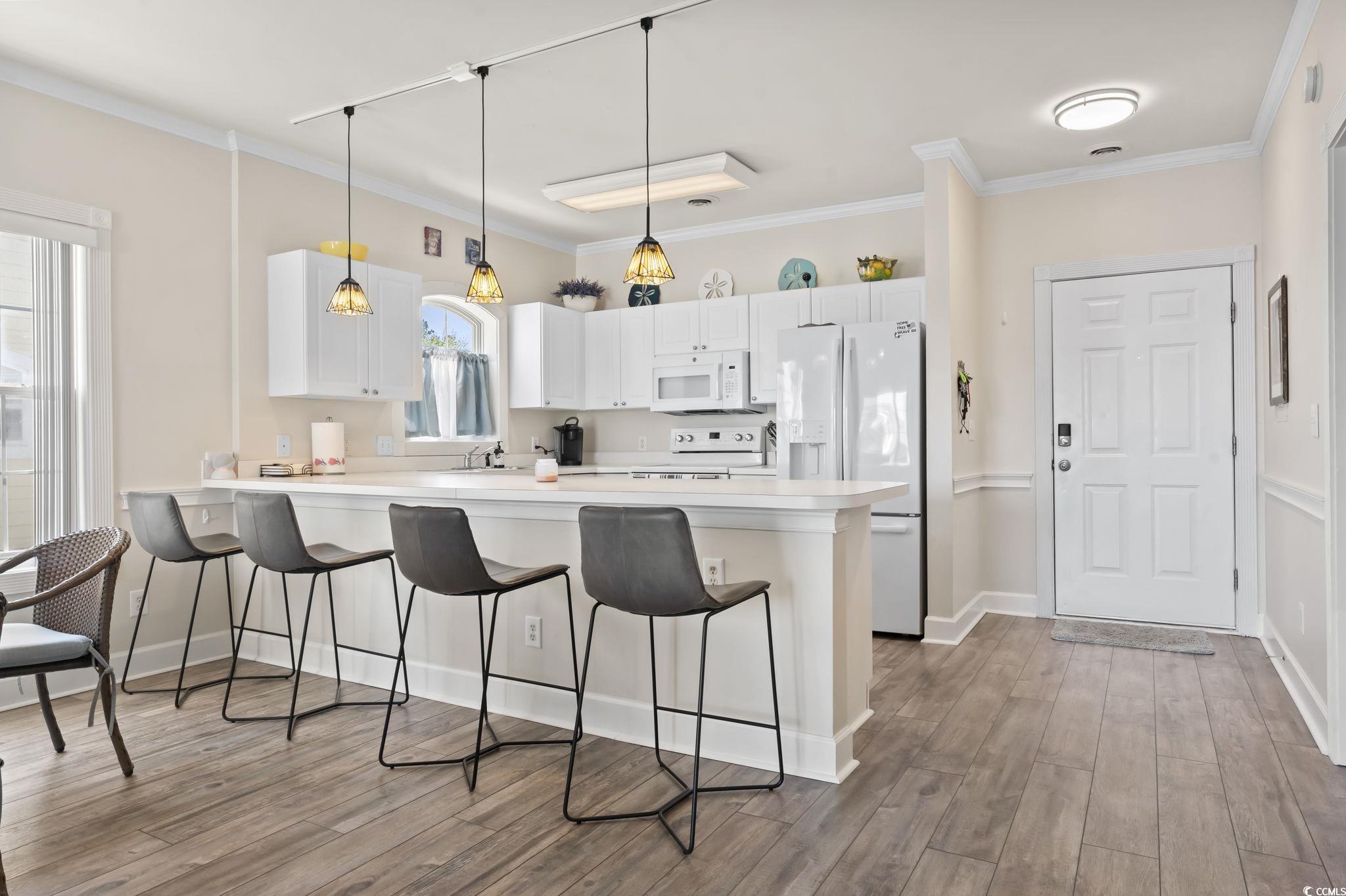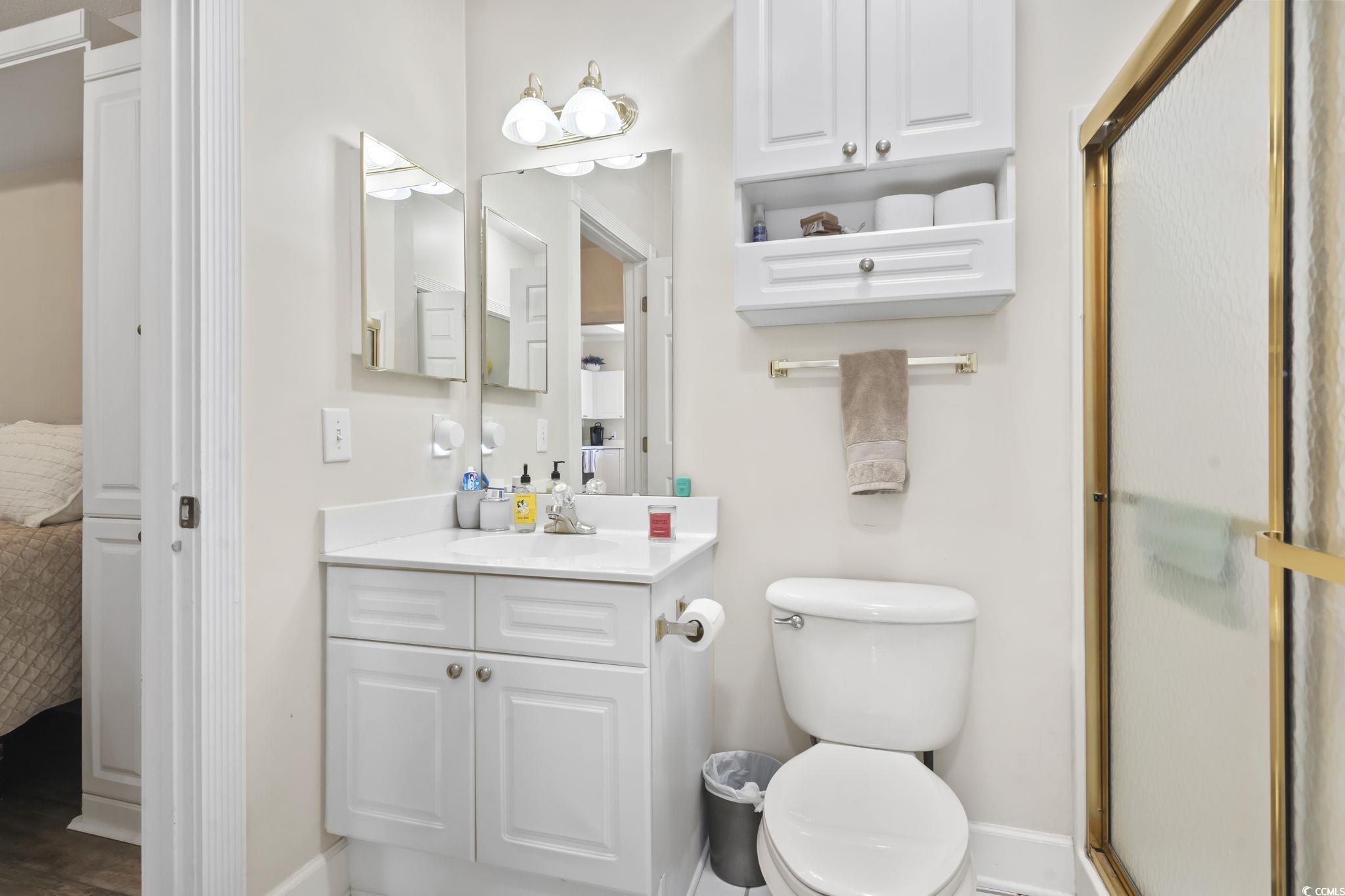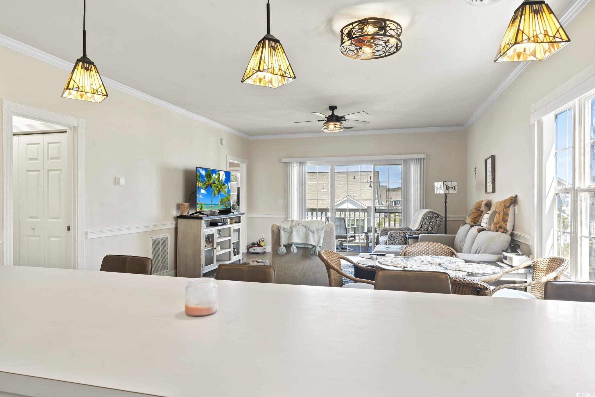 Nestled in the sought-after community of The Gardens at Cypress Bay in Little River, SC, this exceptional 2-bedroom, 2-bathroom condo offers the perfect blend of comfort, convenience, and coastal charm. Situated on the second floor, this bright and airy residence welcomes you with an open-concept living space designed for both entertaining and relaxation. The well-appointed kitchen boasts ample white cabinetry, a charming window for natural light, and a breakfast bar that seamlessly connects to the spacious dining and living areas. Sliding glass doors lead to a fabulous covered balcony, where you can unwind with a morning cup of coffee or enjoy the evening breeze. The primary suite is a true retreat, featuring a large walk-in closet and a private en suite with a tub/shower combination and vanity. The guest suite, located opposite the primary for added privacy, also includes an en suite bathroom, making it perfect for guests. Additional highlights include crown molding, chair rail detailing, smooth ceilings, and ceiling fans in every room, adding to the home's elegance and comfort. Enjoy the well-maintained community pool, perfect for soaking up the sun or taking a refreshing dip. Located just minutes from the pristine beaches of North Myrtle Beach, as well as fantastic shopping, dining, and entertainment options, this charming condo offers a carefree and convenient coastal lifestyle. Don't miss the opportunity to make this move-in-ready home your own! Measurements are not guaranteed. Buyer is responsible for verifying. Please ask your agent about lender closing costs incentives for this property.