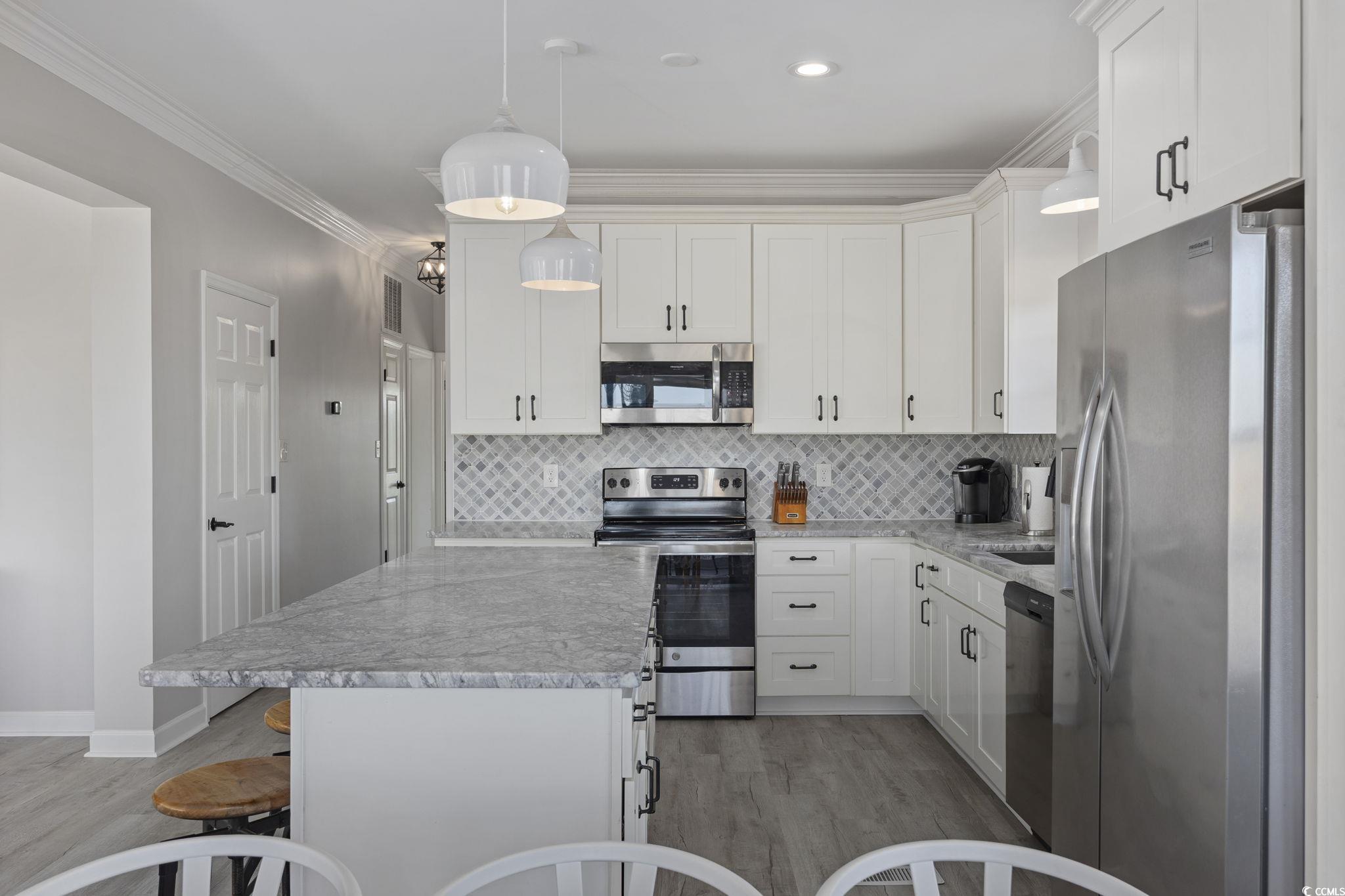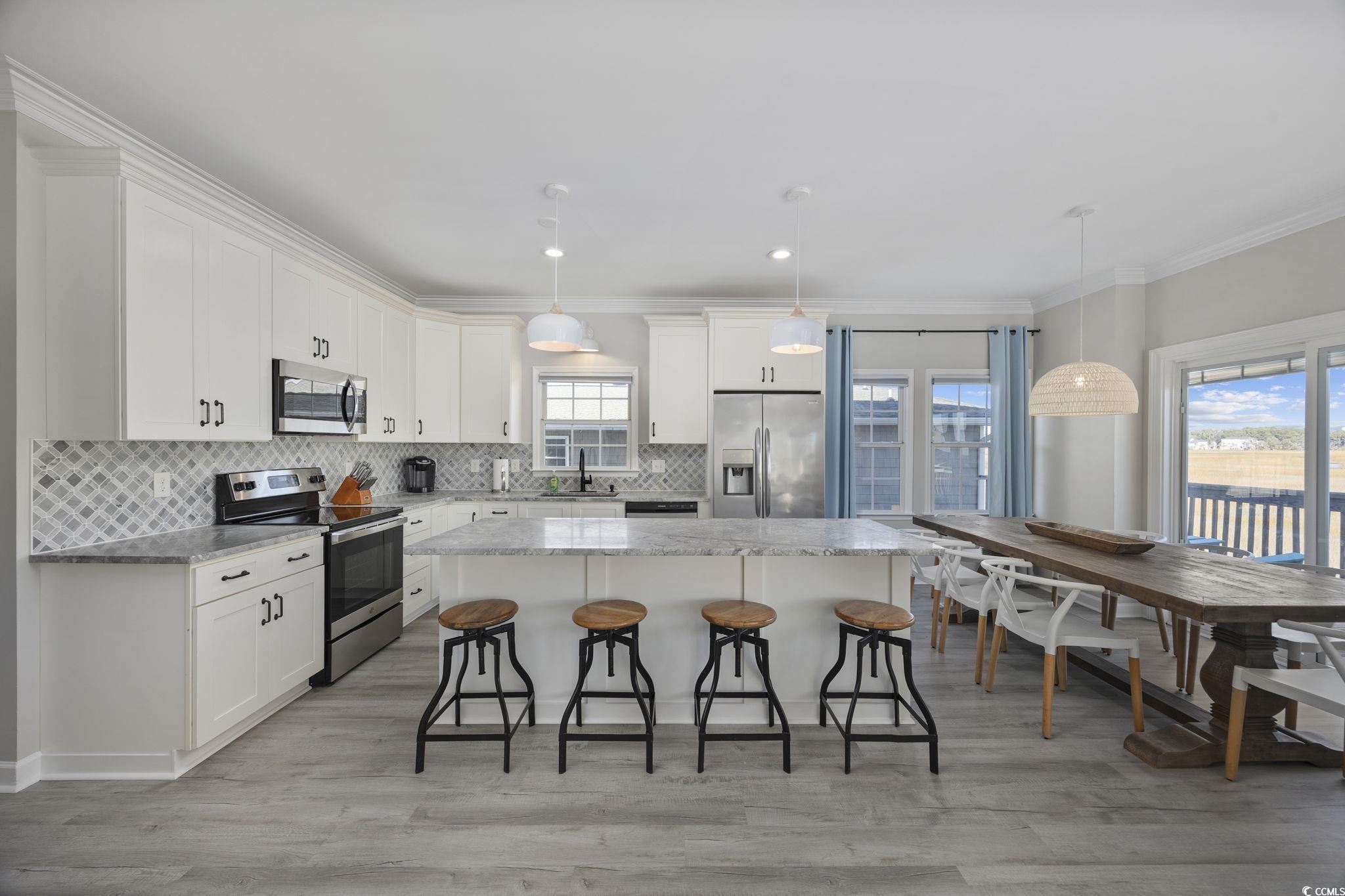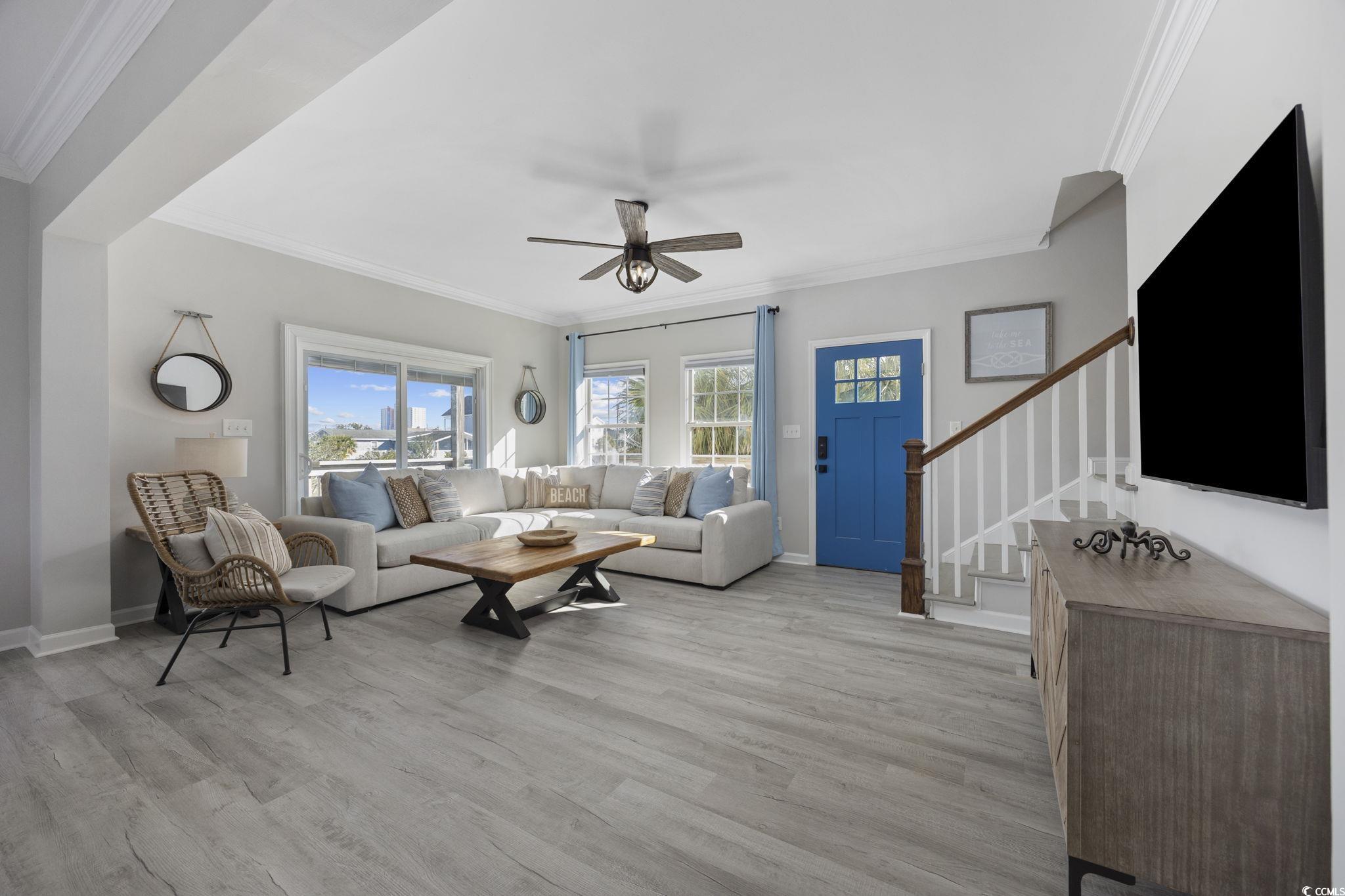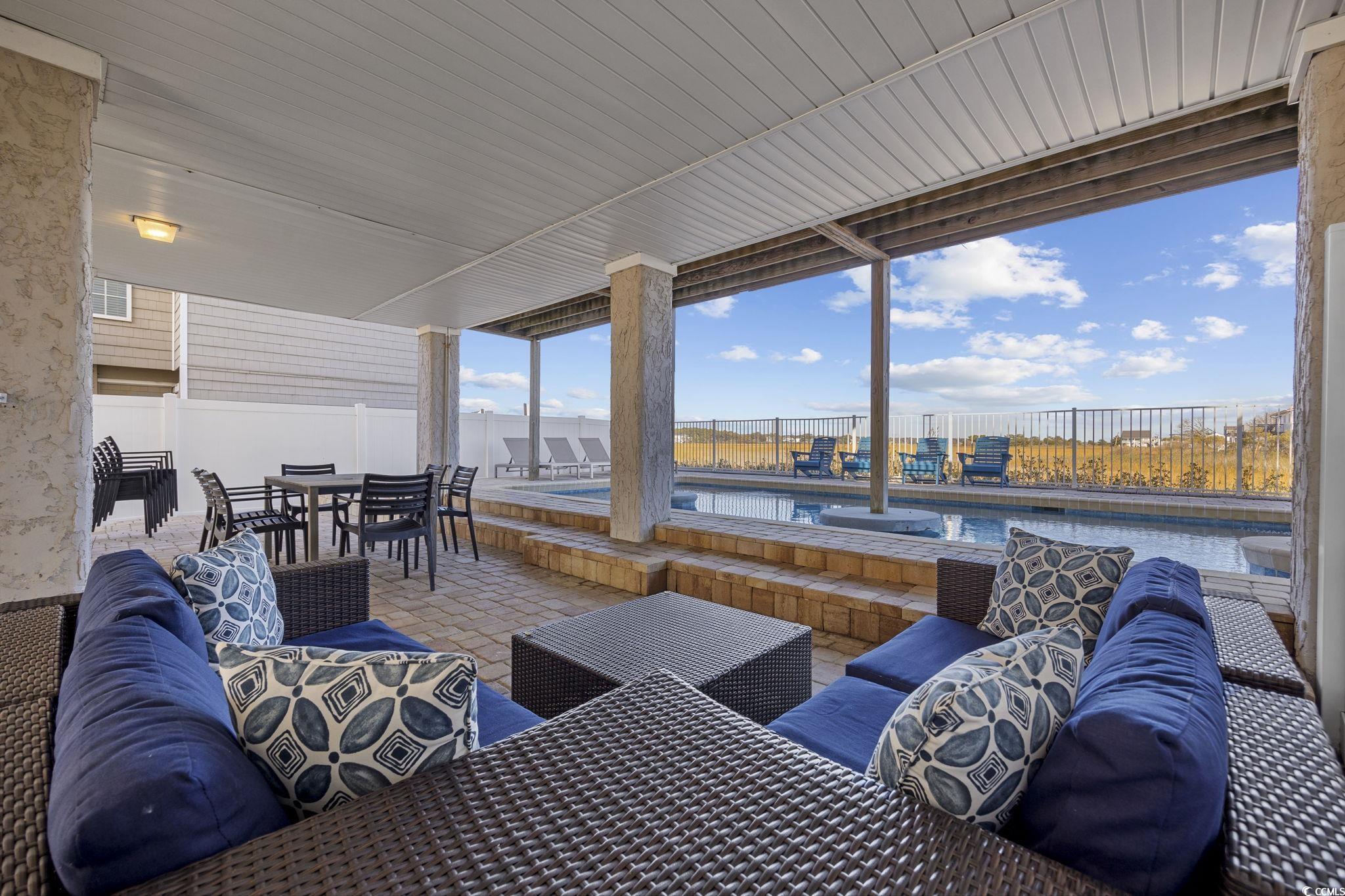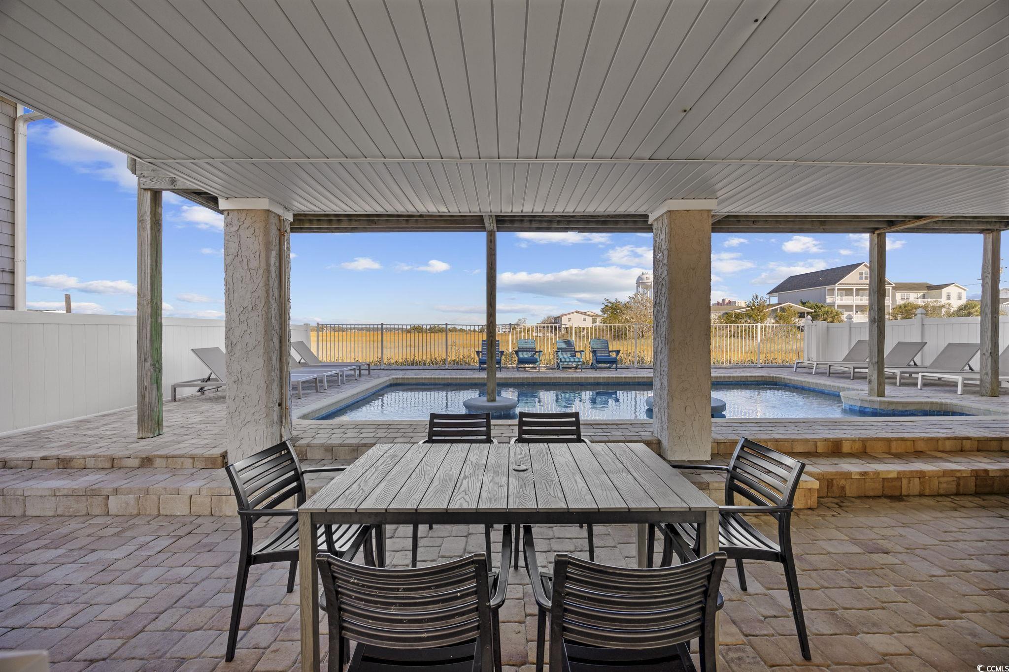 Welcome to the Palmetto Breeze located in the popular Cherry Grove section of North Myrtle Beach! This three story raised beach home overlooks the beautiful marsh and provides extraordinary views. Just a short walk directly to the Atlantic Ocean. Turnkey vacation rental home, this property is sold fully furnished with all contents and is ready to continue as a successful vacation home. Extraordinarily maintained and in excellent condition. The home has a spacious feel with eight bedrooms and five baths and features high ceilings, large bathrooms and tons of natural light. Most recently all new LVP waterproof flooring was installed throughout and the walls have been freshly painted. In 2017 the property was fully renovated with the addition of a new kitchen with fresh white cabinetry, quartzite countetops, stainless appliances and new plumbing fixtures. All bathrooms have new vanities, countertops and plumbing fixtures. All lighting and ceiling fans were replaced as well. The home is set up to sleep 24 guests with three king beds, 4 queen beds and five fulls. Blackout cellular shades have been installed for guest comfort in most rooms. A new roof was installed in 2023, water heater new 2024 all four HVAC systems were replaced within the past five years. Smart features include WiFi door locks, two Ring cameras and all Sensi WiFi thermostats. Outside, the 2017 renovation included the following, the pool was re-plastered, new fencing was added along with a new bulkhead on the marsh. A paver patio and new pool coping was installed. All new pool equipment was added as well. Low maintenance landscaping includes all hardscaping with white river rock and very little grass. This home is fully raised and is supported by all concrete/stucco pilings (no wood). The Palmetto Breeze is a popular rental with impressive rental income. The home offers guests a luxury rental experience with plenty of space to enjoy a beach vacation. Don't miss this great opportunity and schedule your showing today! All information is deemed reliable, buyer is responsible for all verification.
