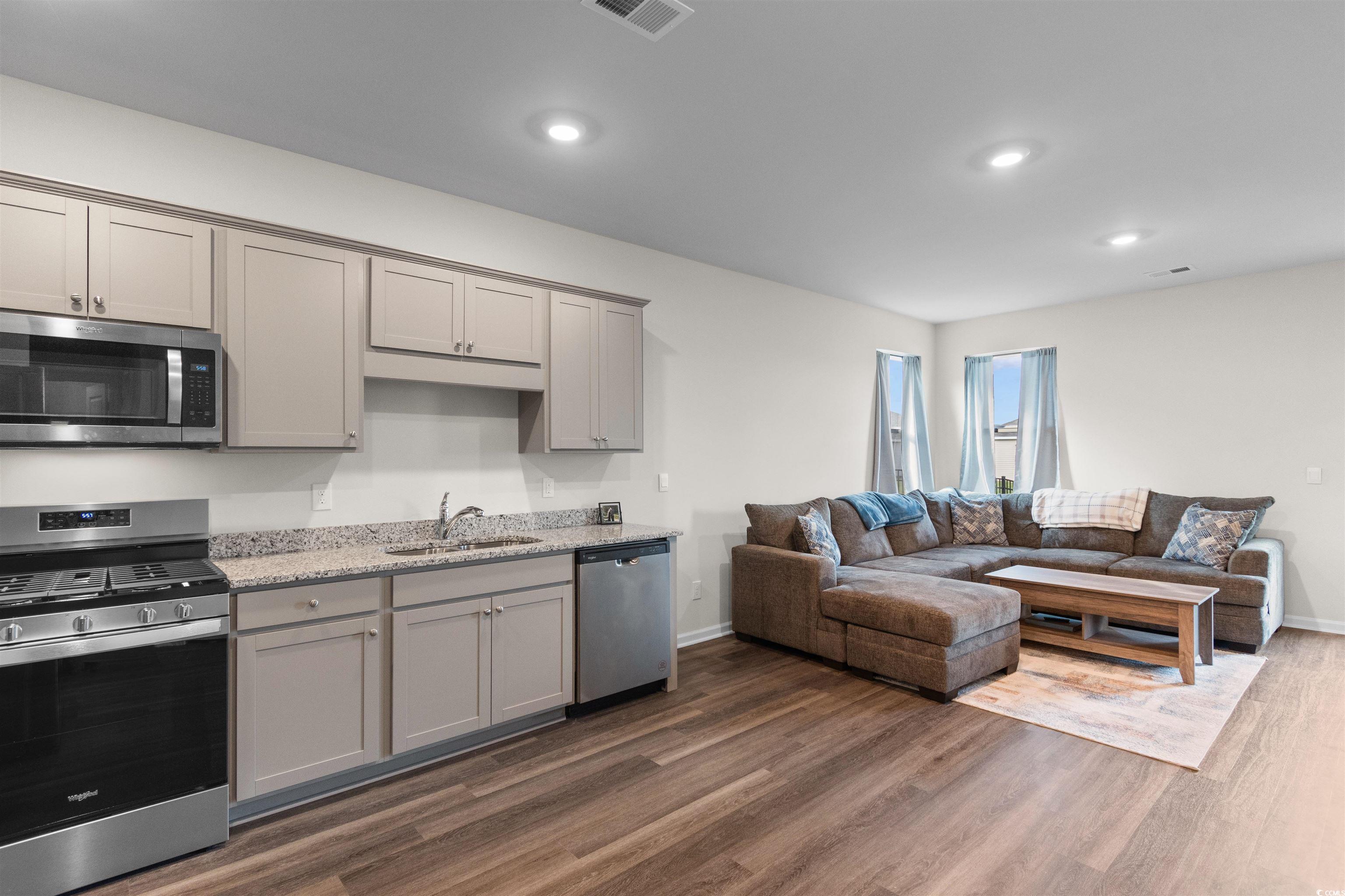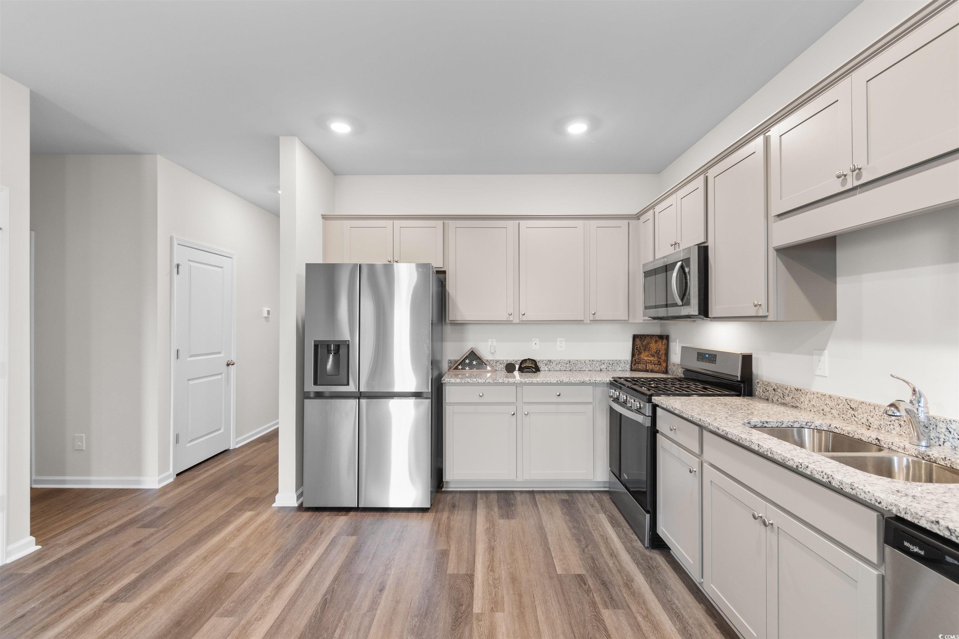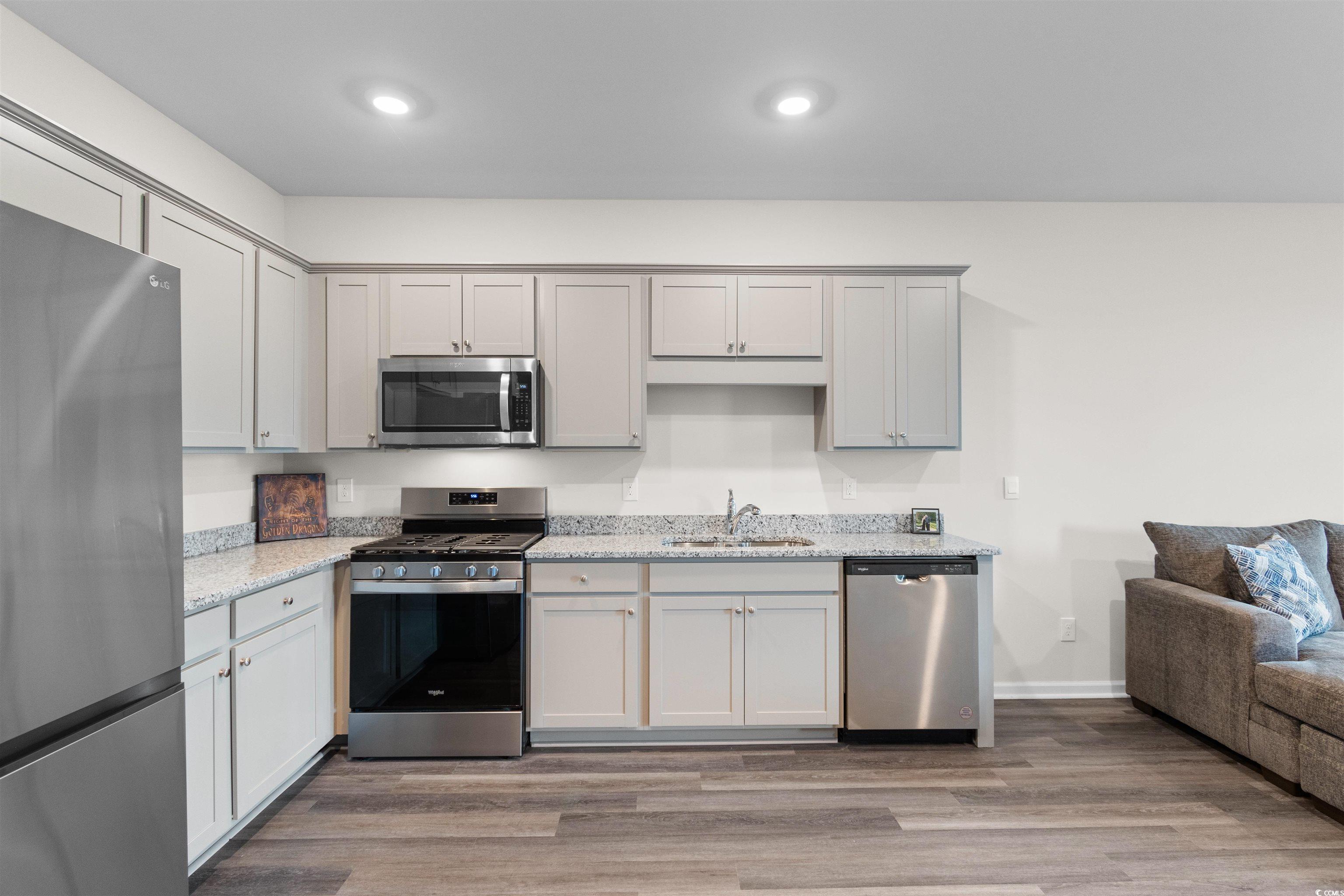 Welcome to this light, bright, and airy 3-bedroom, 2-bathroom home located in the desirable Forest at Blackbear community in Longs, SC. Impeccably maintained and showing like new, this home offers modern comfort in a peaceful, scenic setting. Step inside to find an inviting open-concept layout with gorgeous LVP flooring flowing throughout the main living area. The kitchen overlooks the living room, creating the perfect space for entertaining and everyday living. You'll love the stainless steel appliances, granite countertops, and ample cabinet space. Each of the three bedrooms is generously sized and offers plenty of closet space for storage and convenience. The primary suite includes its own en suite bath for added privacy and comfort. Step out back to enjoy lake views from your fully fenced backyard—perfect for relaxing, entertaining, or letting pets and kids play safely. An added bonus is the smart whole-home security system, offering both peace of mind and modern functionality. Even better, brand-new community amenities are on the way, including an onsite pool and clubhouse—perfect for enjoying sunny days and connecting with neighbors. To top it off, the location is prime—just a short drive to the beach and close to great restaurants, shops, and entertainment options, making it the perfect spot to enjoy both convenience and coastal living. Don’t miss your chance to own this move-in-ready gem—schedule your showing today!