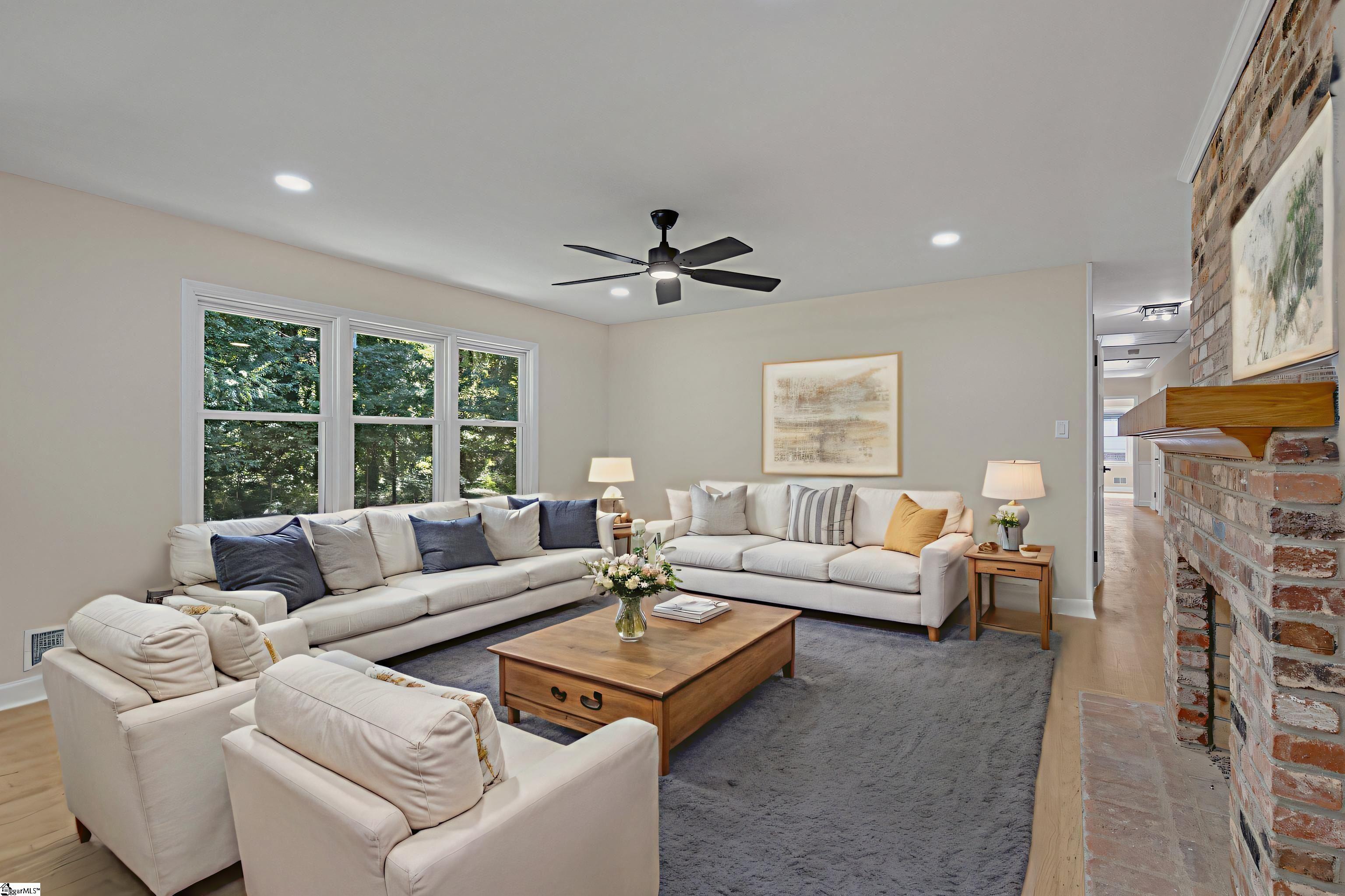 Practically a NEW HOME with new roof, updated electrical panel, 4/2 Ranch ALL Brick on finished basement, possible mother-in-law suite downstairs, rental, or VRBO. Upstairs offers refinished hardwood floors, and new appliances, lighted sink faucet, lighting throughout, granite countertops, new windows, two laundry rooms (up & down). Barn doors open to Walk-In Pantry of the kitchen and the second Laundry room. There are 8 ceiling fans with timers and three light settings throughout. Closets have automatic lights. The basement has potential for a second kitchen and bedroom or huge playroom with workshop and laundry room. Backyard backs to a creek and woods. Walk around the neighborhood pond in the evenings and meet your neighbors. Friendly neighborhood! Prime location to District 7 schools, restaurants, and shopping. NO CITY TAXES!!! NO HOA!!! Please make sure you measure to ensure correct measurements if sq ft is important to you.