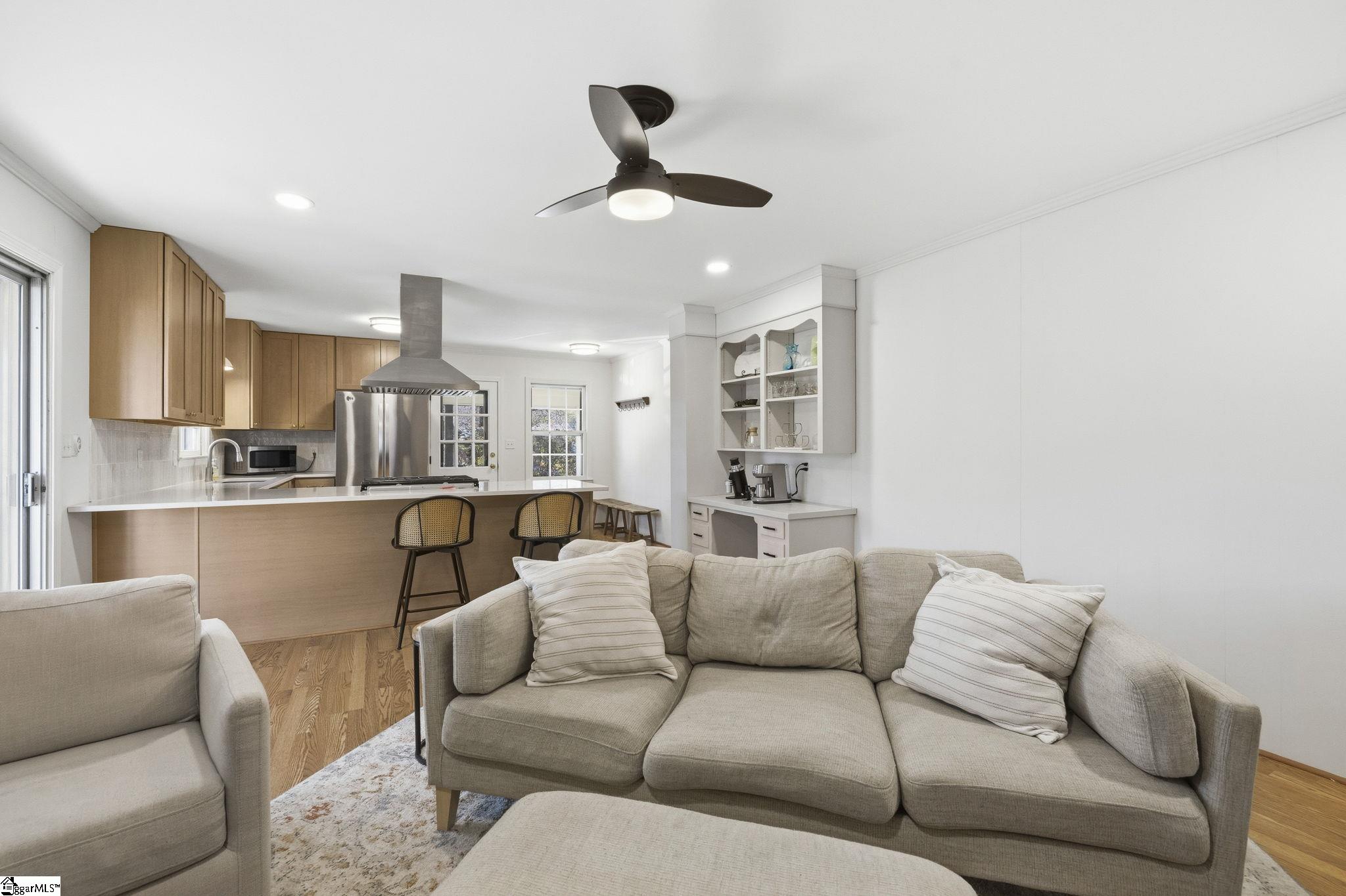 Fully renovated all-brick ranch with no HOA—the perfect blend of timeless charm and modern updates! A spacious front porch sets the scene for rocking chairs, sweet tea, and easy conversations. Inside, the living and dining rooms flow seamlessly together, while the open-concept den and kitchen create a warm, welcoming space where you can truly relax and spend time with family and friends. The spacious kitchen features quartz countertops, tile backsplash, peninsula seating, a built-in desk/coffee bar, and stainless-steel appliances including a gas range, hood vent, and refrigerator. The den is filled with natural light and anchored by a classic masonry gas log fireplace. Just off the kitchen, you’ll find access to the large carport and an oversized laundry room for added convenience. Down the hall, two secondary bedrooms share a generous hall bath with tub/shower combo and linen closet, while the primary suite offers two closets and a private bath complete with a furniture-grade vanity and tiled shower. Multiple closets throughout the home provide that much needed storage everyone needs and a new roof in 2025 gives you peace of mind! Love outdoor living? The screened-in porch opens to a grilling deck—perfect for entertaining. The driveway wraps around to the rear carport, offering ample parking plus space to create your very own backyard basketball court. The large backyard is ready for pets, play, gardening, or simply enjoying the outdoors. Ideally located within walking distance to Brook Glenn Elementary School, zoned for award-winning Riverside High School, and just minutes from shopping, dining, and entertainment—this move-in ready home is the one you’ve been looking for!