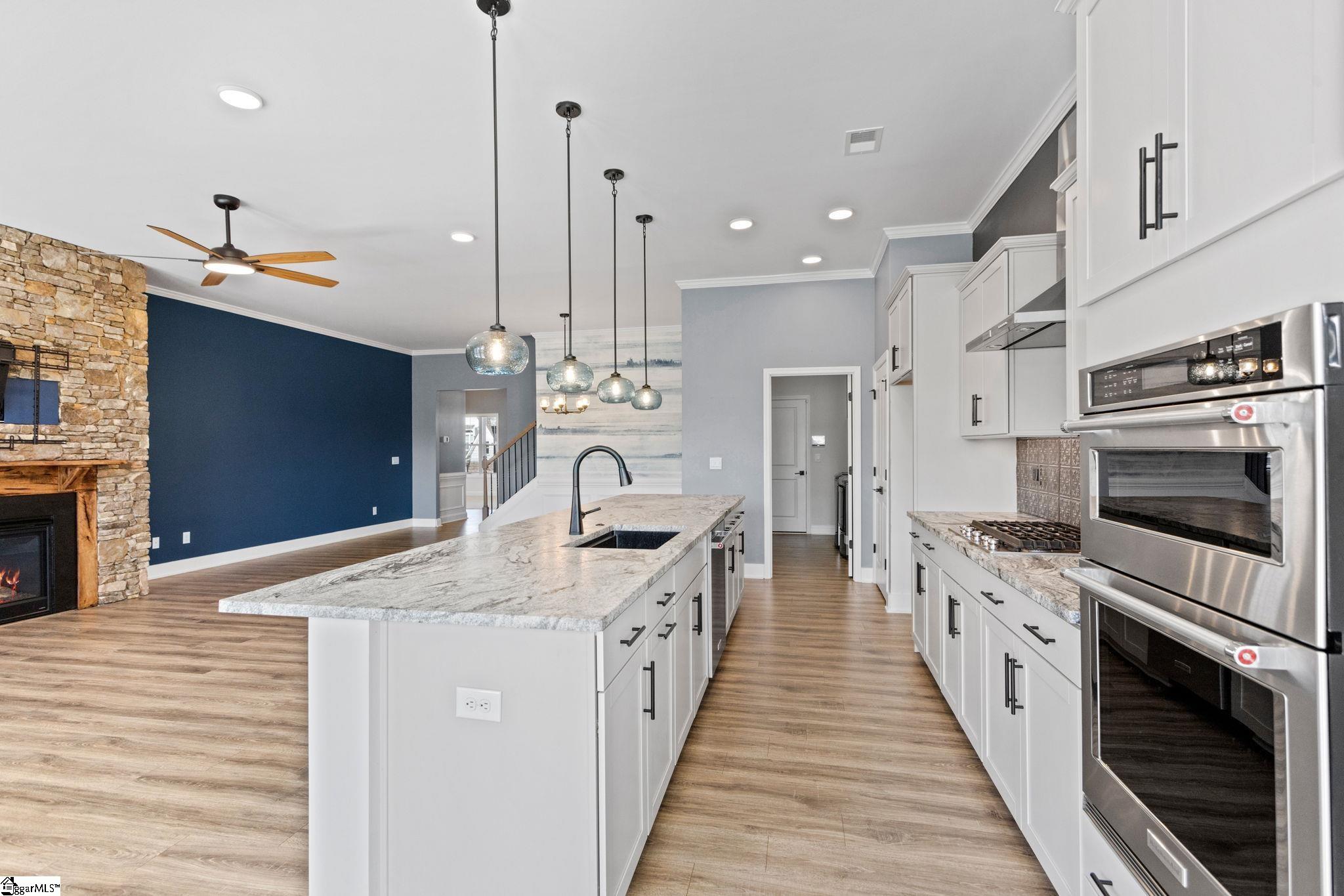 Welcome to 417 Jack Hunter Place! This beautiful and professionally landscaped front yard home is conveniently located and tucked into Reidville’s Chumley Estates subdivision! Great access to both Greenville and Spartanburg, this home built in 2023, is loaded with upgrades and improvements galore! This spacious and open floor plan with 10’ ceilings, first floor master suite and upstairs private suite is a must see! Upgraded dimmable LED ceiling lights and fixtures throughout this home enhance the beautiful wainscoting entryway which greets you as you move into this luscious open space that brings together the living, dining and kitchen area surrounded by windows with a view! Hugh 13’ kitchen island with beautiful granite countertops, upgraded KitchenAid stainless steel appliances are a must have for anybody that loves to cook. Beautiful natural Tennessee stone surrounds the custom built Hickory gas fireplace mantle and door frame with attached adjustable built in tv mount only adds to the warmth of this space. Moving into the master suite with trey ceilings and a master bath complete with double vanity, private toilet closet and a large custom, no step open shower with a bench and spa like fixtures, are sure to reinvigorate you! Master closet is large and has ample space to organize your wardrobes! Two additional main level bedrooms share a full bath. Laundry room with added cabinetry, sink and mudroom, sits off the kitchen with access to the 2 car garage. Second level features a 4th bedroom, a third full bath and large living space for anyone that has guests!! Outside you’ll find a covered patio which opens up to a larger, beautifully stamped concrete space with stone wall great for barbecues!!! DON’T MISS YOUR CHANCE TO SEE THIS UPGRADED HOME TODAY!