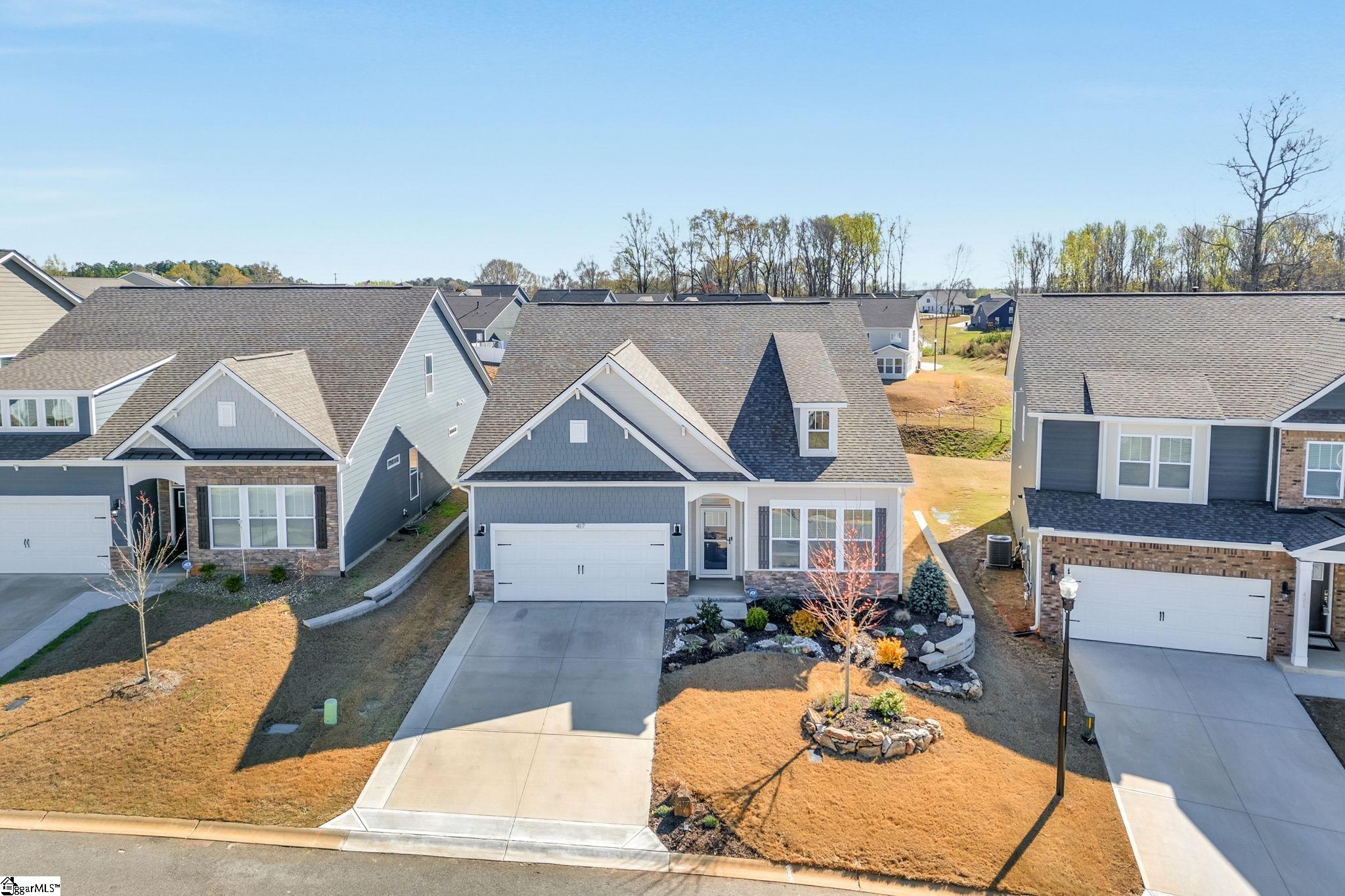 Stunning Custom-Enhanced Home Blending Luxury, Comfort & Country Charm! Welcome to this beautifully upgraded home offering over 2,400 sq. ft. of thoughtfully designed living space. With 4 bedrooms, 3 full baths, and a highly functional layout, this home perfectly balances everyday comfort with standout custom features. The main level features 3 spacious bedrooms and 2 full baths, while the second level offers incredible flexibility with a large bedroom, full bath, and a versatile rec/media room, office, or flex space—plus a convenient 10x10 floored attic for additional storage. Step into the heart of the home and experience the open floor plan designed for both entertaining and everyday living. The living room is anchored by a striking Tennessee stone surround wall with gas log fireplace enhanced by a custom hickory mantel and trim, creating a warm and inviting focal point. The kitchen is a true showstopper—perfect for the home chef—with a large eat-at island, high-end finishes, Corian countertops, custom backsplash, under-cabinet lighting, and a Delta touchless faucet. The kitchen flows seamlessly into the dining area, living room, and a separate breakfast space overlooking the covered back patio and extended outdoor living area—complete with flagstone overlay patio, built-in stone seating, and grill pad. The owner’s suite is a luxurious retreat featuring extensive upgrades, including: Heated ceramic tile floors Oversized custom tile shower with granite seat & niche shelving Rain shower head + handheld system LED lighted makeup mirror (10x magnification) Double vanity with designer fixtures Custom closet organization with shelving and racks Additional highlights include: Huge laundry room with extra cabinetry, sink, tile backsplash & dual storage closets Oversized 23’ x 19’ garage with upgraded lighting Added 6” baseboards, shiplap accent wall in master bedroom, and enhanced trim throughout LED dimmable lighting across main living areas High-end remote ceiling fans throughout home & patio Black stainless single-bowl sink with built-in shelf in kitchen island Gas line for dryer Step outside to a beautifully enhanced yard featuring professional landscaping, stonework, and a custom bird-friendly backyard setting—perfect for enjoying peaceful mornings or evening gatherings. The level lot adds both usability and appeal. Located in the highly sought-after Spartanburg District 5 schools, this home offers the perfect blend of convenience and tranquility—just 20 minutes to GSP International Airport, close to shopping, dining, and interstate access, yet surrounded by the beauty of farmland, wildlife, and open space. This is more than a home—it’s a lifestyle. Come experience it for yourself!