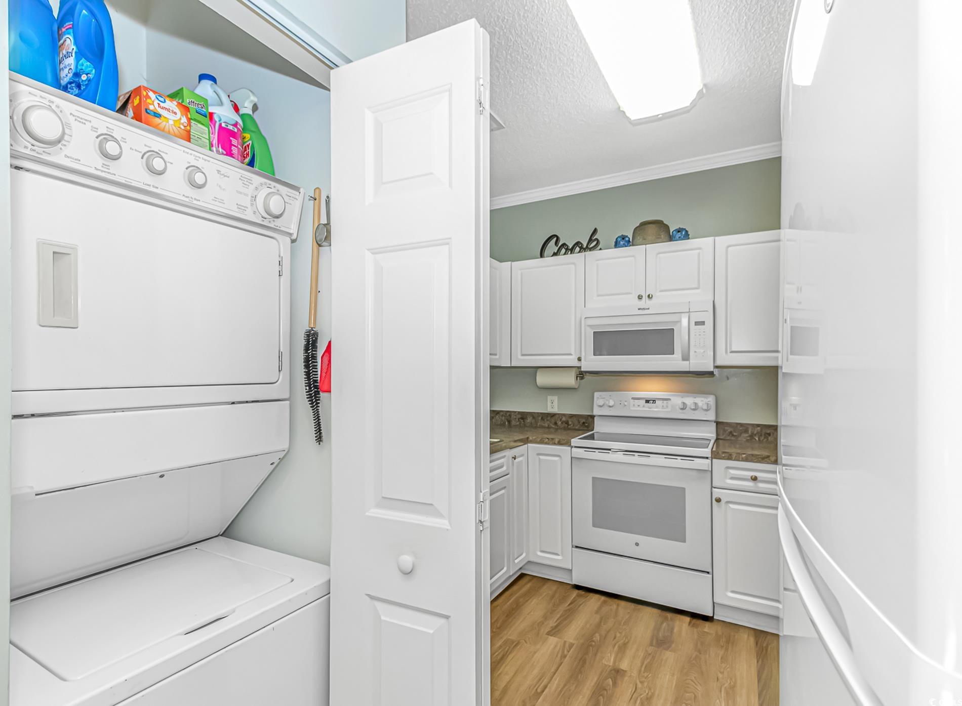 Welcome to your very own oasis at The Gardens at Cypress Bay, nestled in the charming Little River. This delightful 2-bedroom, 2-bath condo offers the perfect blend of comfort and coastal living! Just a mere 5 miles from the sun-kissed shores of Cherry Grove Beach, you can easily dive into a world of relaxation. Imagine the convenience of a short jaunt to thrilling Casino Boats and waterfront dining, where mouthwatering dishes await. Start your day with a warm cup of coffee or unwind in the evening with a cocktail on your private covered patio—outfitted with clear vinyl panels for year-round comfort, rain or shine. The community welcomes you with swaying palms, a tranquil ambiance, and a glistening pool perfect for relaxing or playfully escaping the heat. Step inside to discover the elegance of LVP flooring, complemented by tasteful plantation shutters that let in just the right amount of light. With the added perks of included appliances like a refrigerator, washer, and dryer, plus an HOA that effortlessly covers water, exterior maintenance, landscaping, insurance, cable, internet and pest control all in one tidy package, your dream lifestyle is just a step away!