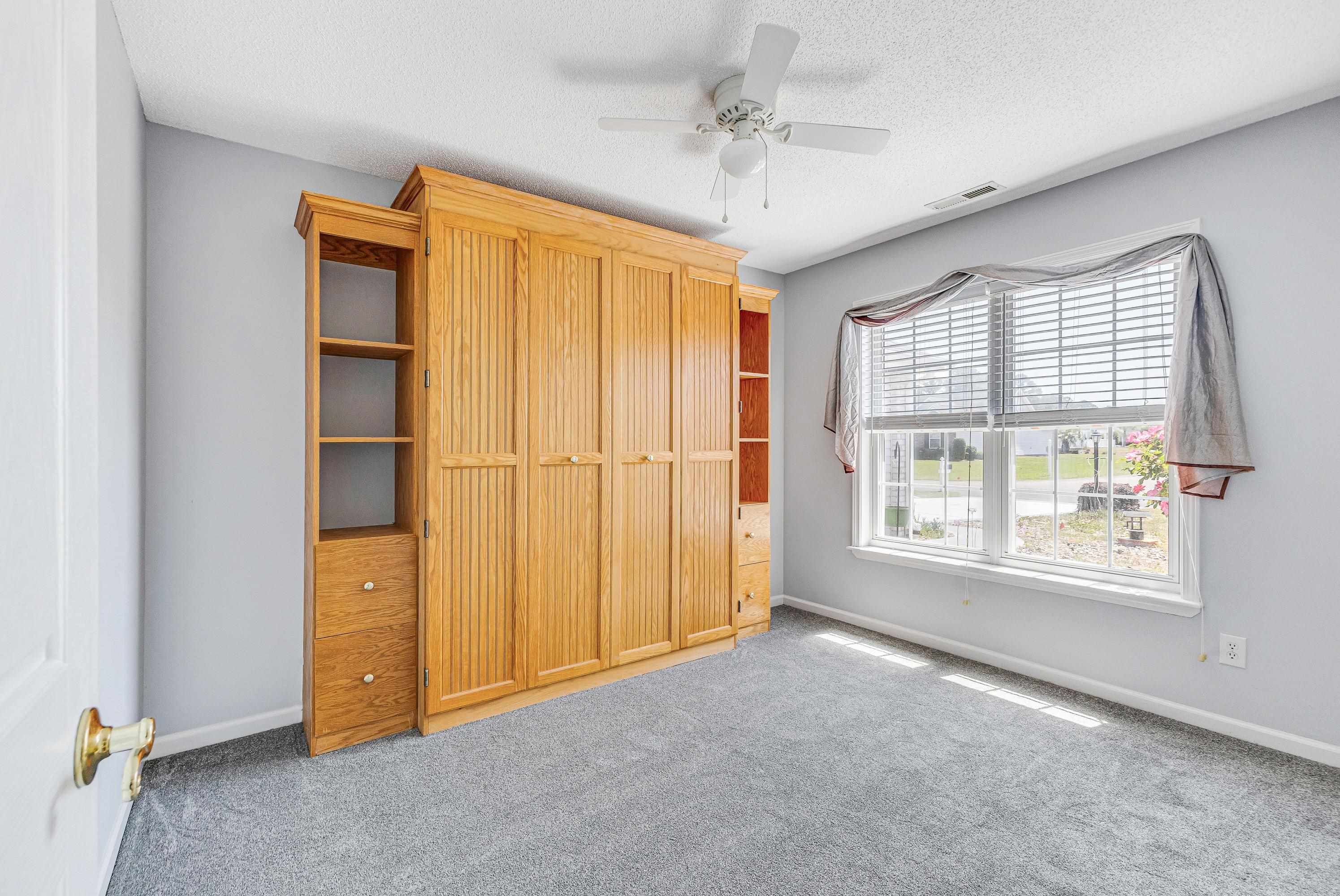 Come and check out this darling 3 bedroom, 2 bath, 2 car garage home in Ocean Side Place, a much sought after community located in Calabash, North Carolina. This home, which has been well taken care of by its original owner, has many upgrades throughout. The lead glass front door opens way to a spacious tiled foyer, with front closet. Straight ahead, is the large living room, with vaulted ceiling and built in shelving. Open to the living room, is a sizeable formal dining area for a complete dining room set, adorned with wains coating and crown molding. The tiled hallway takes you into the kitchen, where you will find armchair railing, solid countertops with breakfast bar, tiled backsplash, double sink basin with garbage disposal, staggered upper cabinets trimmed with crown molding and under cabinet lighting, decorative glass doors on several cabinets, all the kitchen appliances, range/stovetop, dishwasher, under cabinet microwave, and three door refrigerator, and a sky tube, along with can lights. This is an eat-in-kitchen with room for a family table. There is a built-in matching cabinet buffet with solid countertop and backsplash, draws, two side country pantry cabinets, staggered upper cabinets, again with a glass trimmed door. Off the eat-in-kitchen, is a cute and cozy ''Carolina Room'', with wood flooring, wains coating, crown molding, ceiling fan, and sliding doors to the outside screened porch. The master bedroom is carpeted, has a tray ceiling, ceiling fan, walk in closet, and large master bath. The master bath contains a double sink vanity with plenty of draws, handicap commode, with safety arm railing, large shower with safety handrails. The laundry closet, with cabinet and shelving, houses a full-size washer and dryer, is also located in the master bathroom. The tiled hall bath has a one sink vanity, with a shower/tub combo and skylight. Both guest bedrooms come with built in shelving cabinet that conceals a queen size Murphy bed.