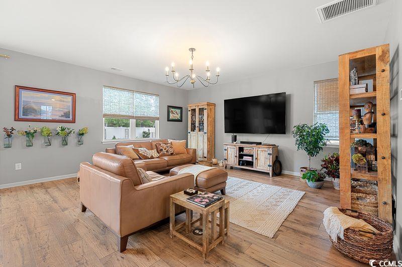 This Surfside Beach Home has been completely renovated. Major renovations include all new kitchen with quartz countertops and backsplash. All new appliances with built-in wall oven and microwave. Farmhouse sink with touch on faucet. Glass cabinet doors, custom slide outs which include spice rack, utensil rack, many custom storage drawers. Kitchen also includes a new pantry with glass see through door, custom tile floor, new cabinets, quartz countertop and new shelving with multiple brass accents. The kitchen also includes a new wine room with see through door, custom tile floor, new cabinets and quartz countertops, and ample wine storage. The downstairs includes all new light fixtures, LVP flooring, custom tiled entry and new downstairs bath. The entire home has all new window blinds. The renovations continue with new LVP stairs blending into the all new LVP loft/library upstairs. The upstairs renovations include LVP flooring, all new closets, all new light fixtures, tongue and groove trey ceiling in the master bedroom/home theater. All rooms have been newly painted. All bathrooms have been updated with brass hardware and accent mirrors and vanities. The renovations don't stop with the house. The yard has been entirely professionally landscaped boosting the view of the pond from the oversized cement patio. Fenced back yard. Golf Cart to the beach. This home truly stands out as the only one of its kind in the neighborhood. With modern upgrades and unbeatable location, it's ready for you to move in and enjoy the best of coastal living.